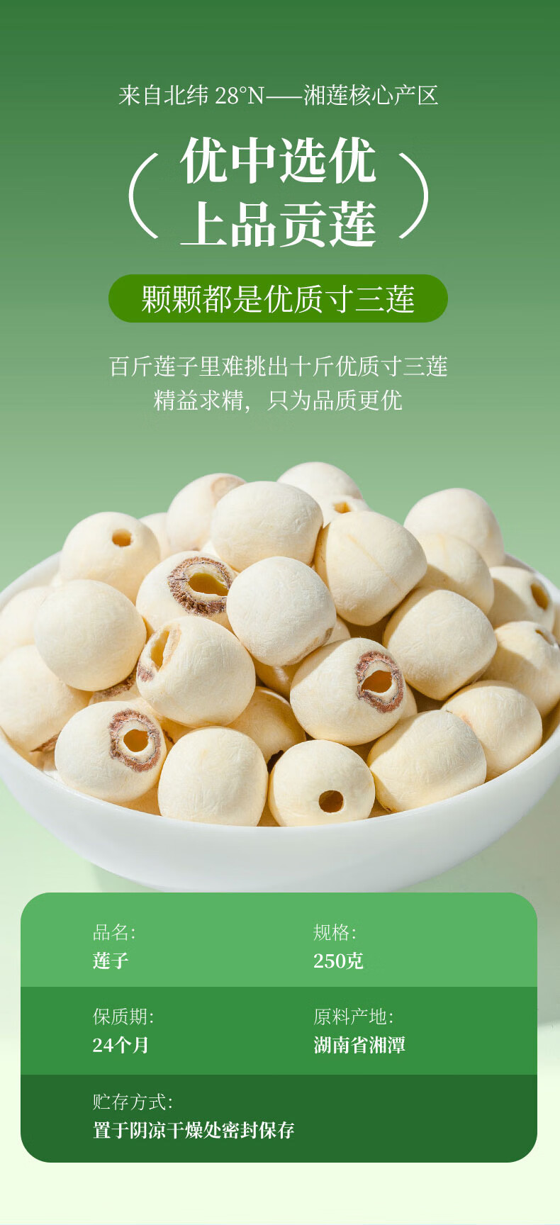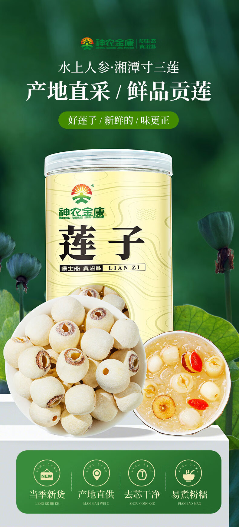 神农金康 湘莲子250克/罐 通心磨皮干货银耳糯耳羹配料 原生态真滋补 喝护家人健康