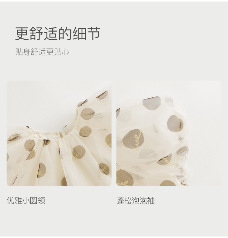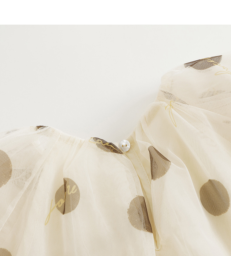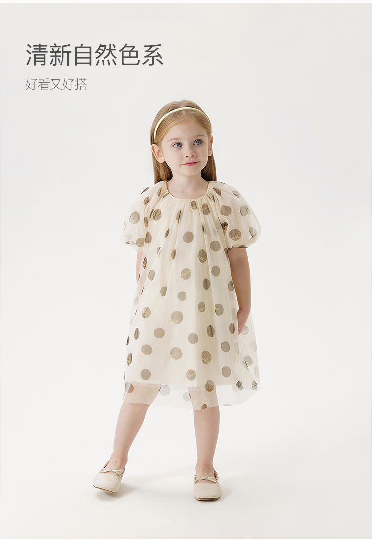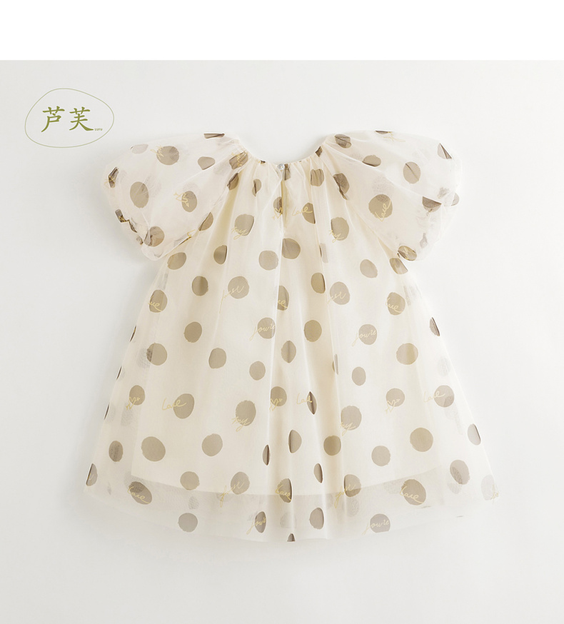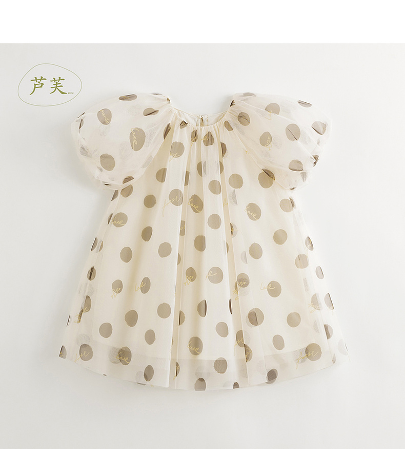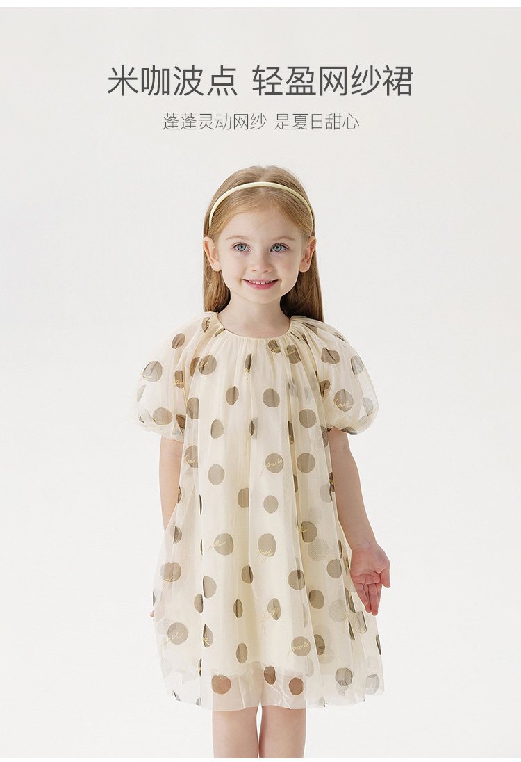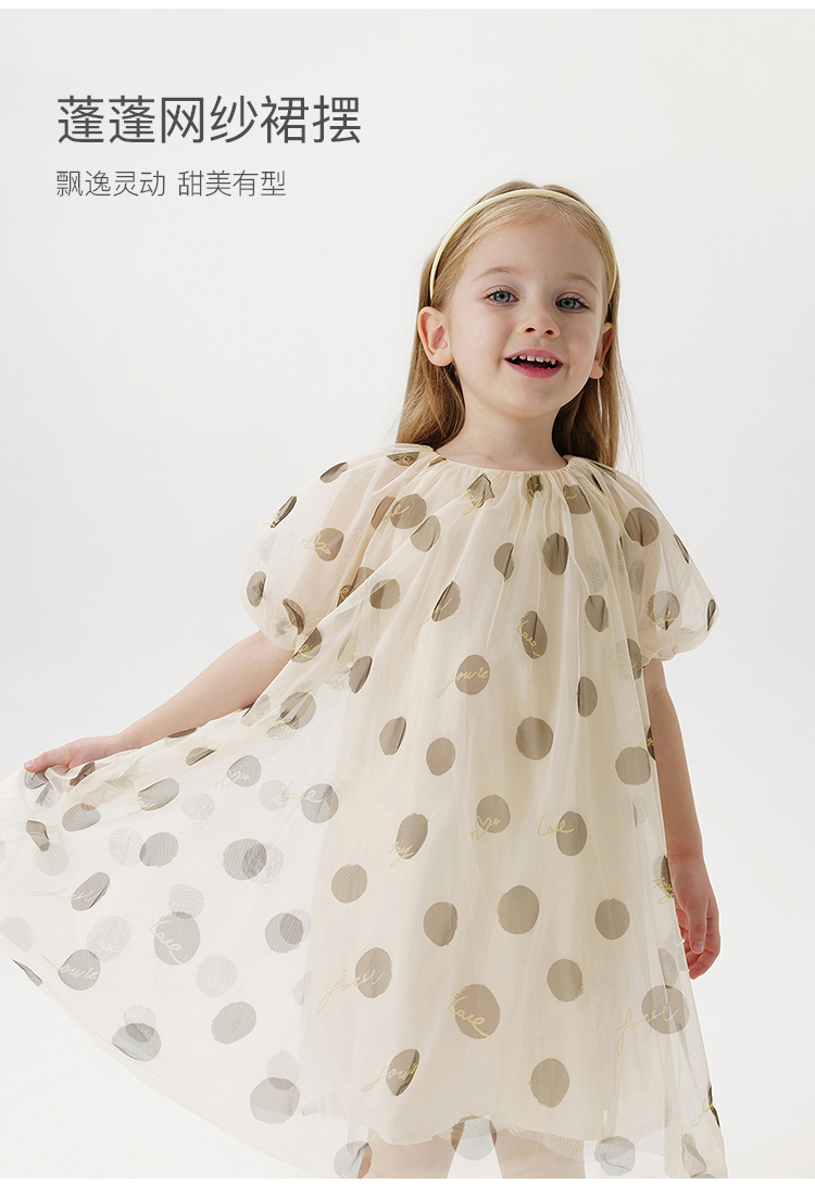 【马克珍妮 芦芙】女童波点网纱泡泡袖连衣裙儿童裙子夏装240729