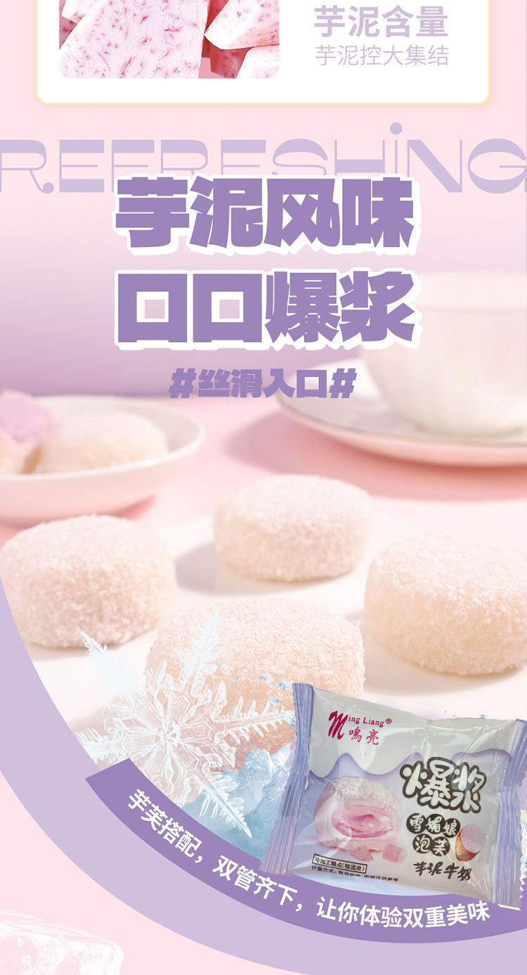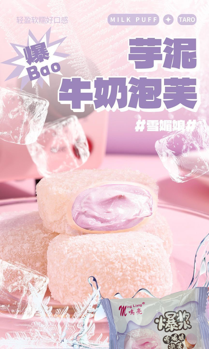 【一口都是芋泥!爆浆芋泥雪媚娘】芋泥内陷和糯叽叽外皮的完美搭配,口感软糯香甜,甜而不腻,办公室休闲零食充饥解馋Y