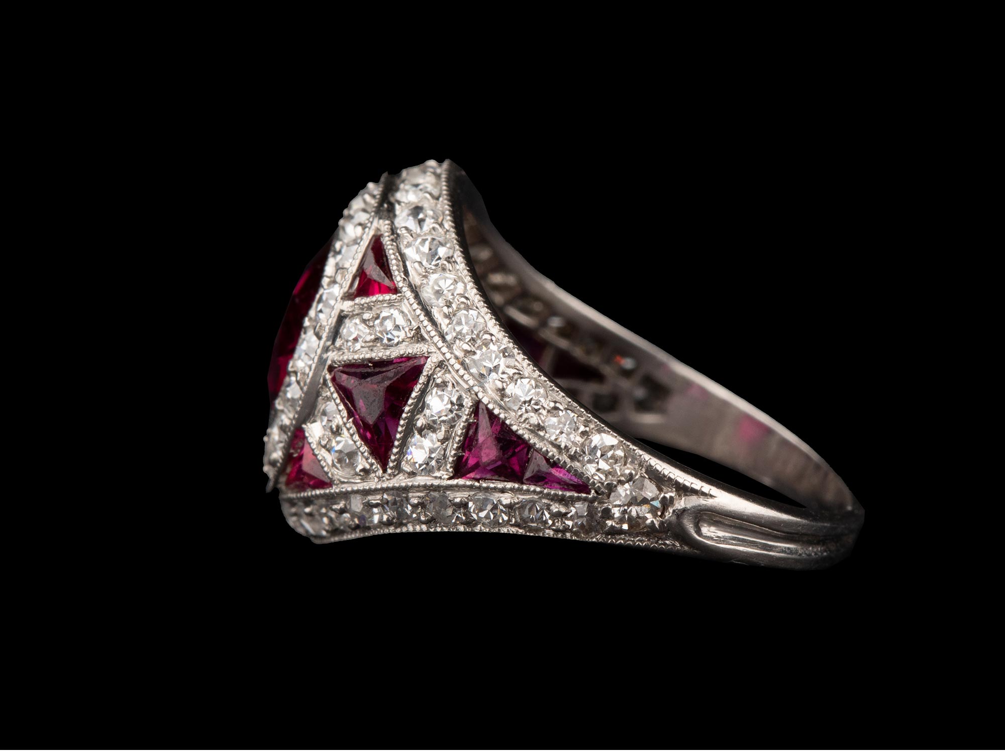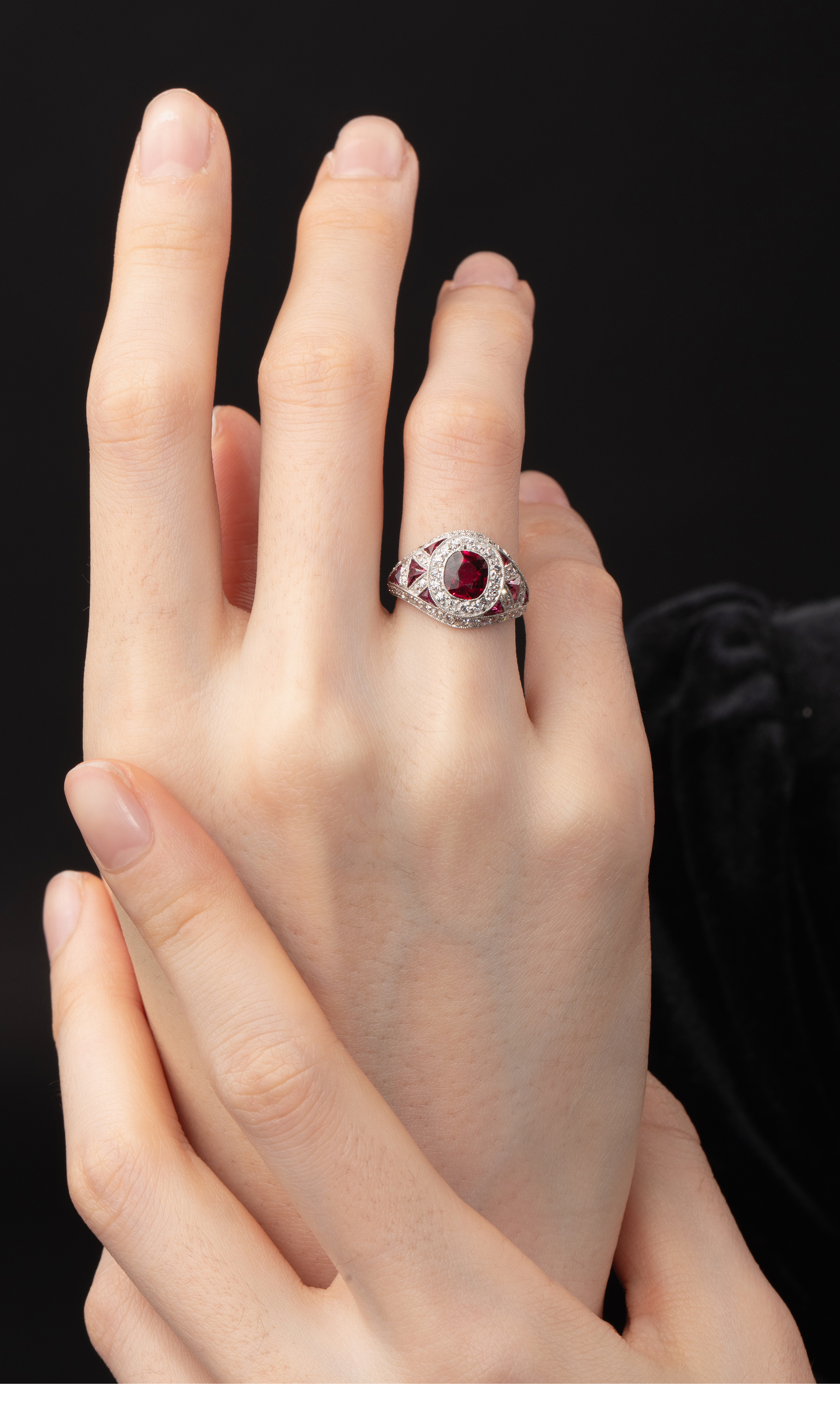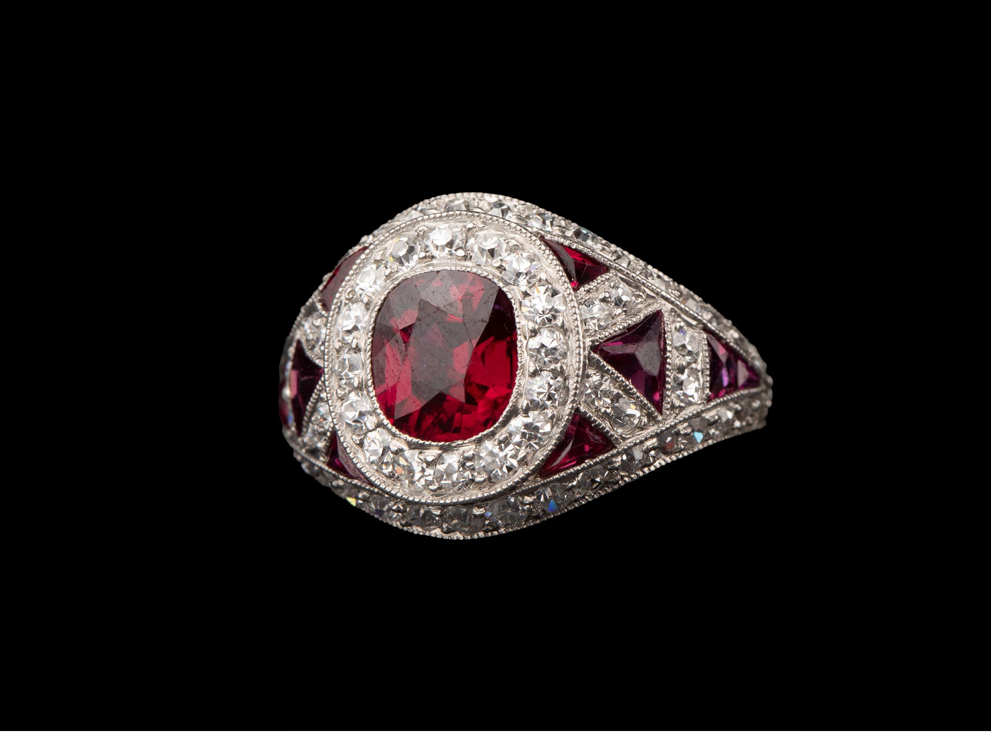 1910年代欧洲出品铂金镶嵌红宝石及钻石戒指