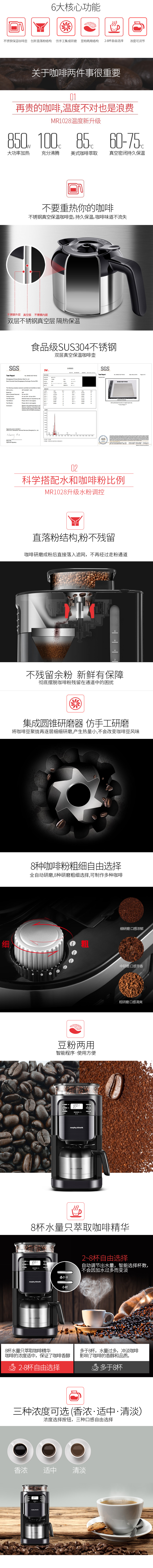 摩飞(13515)(Morphyrichards) 美式咖啡机全自动家用办公研磨一体豆粉两用真空保温壶MR1028