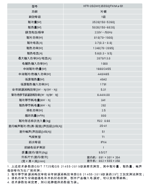 格力·悦省电变频冷暖正1.5匹1级能效挂机空调 KFR-35GW/(35558)FNhAa-B1(皓雪白)