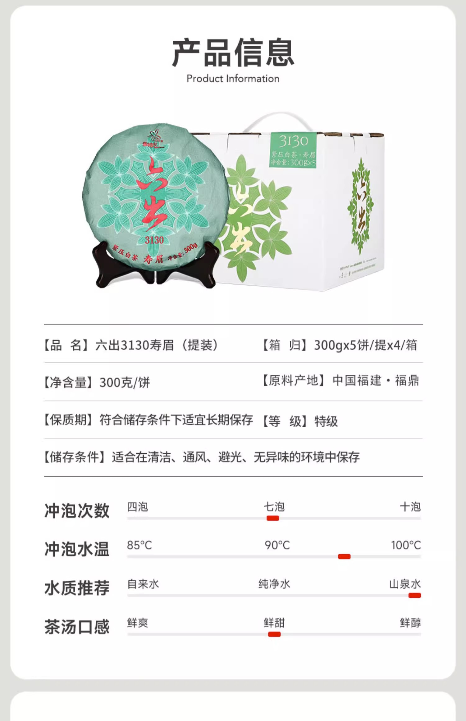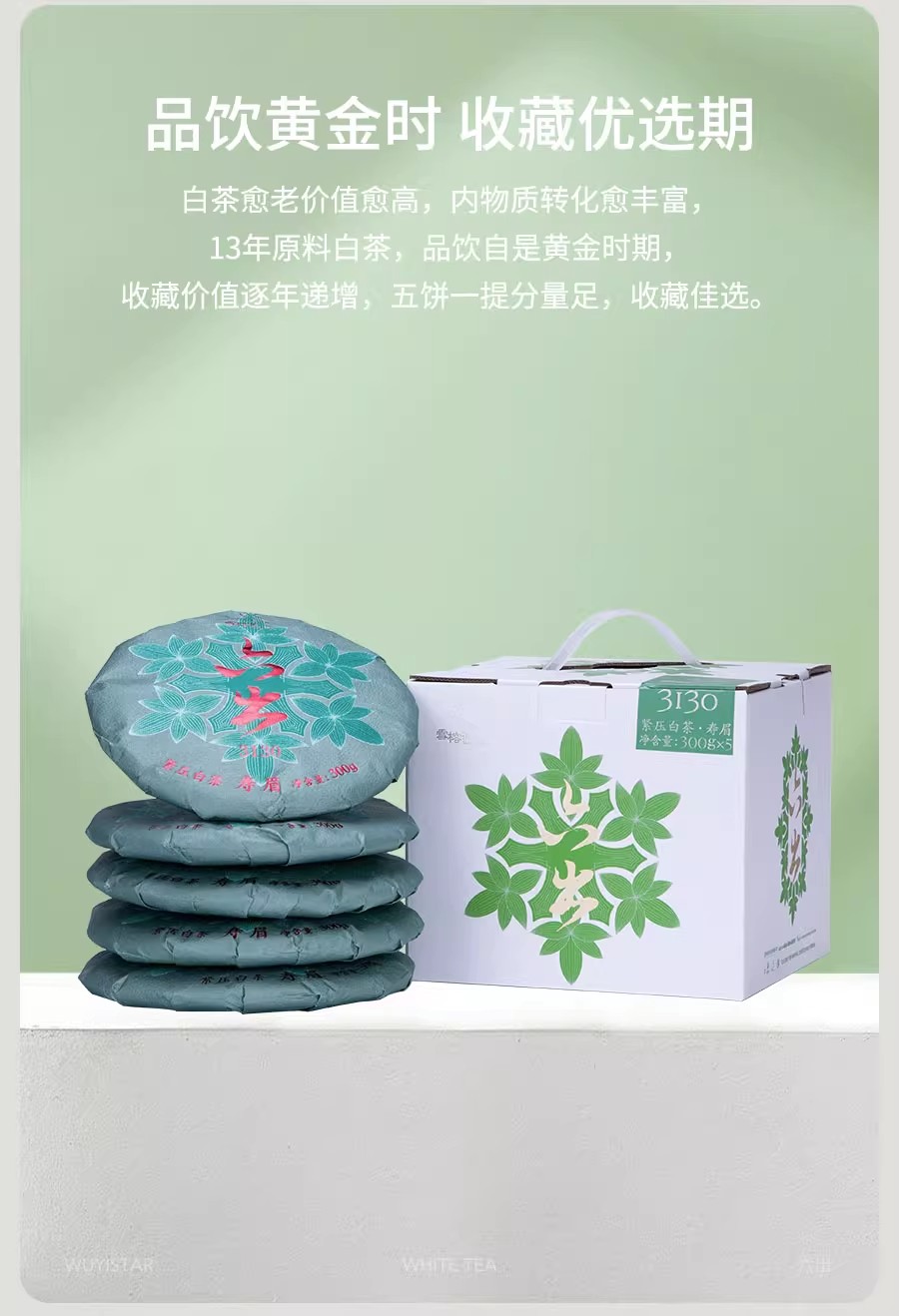 武夷星雪榕花六出3130寿眉白茶福鼎原料老白茶5饼1提白茶饼
