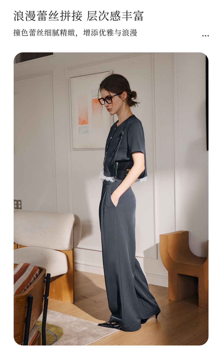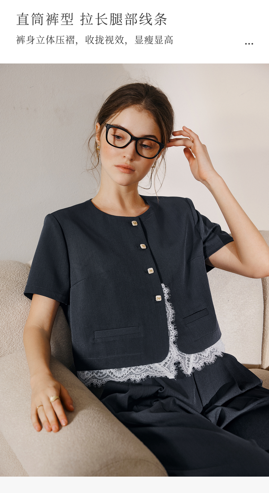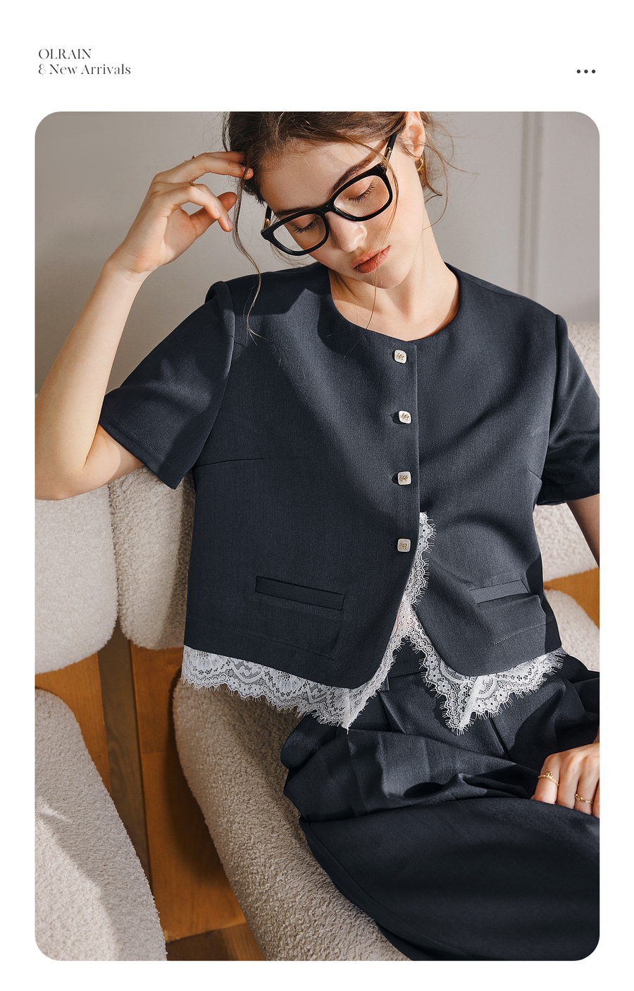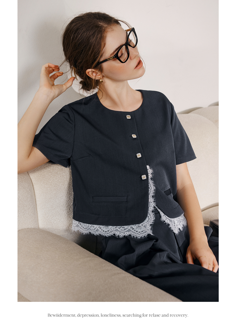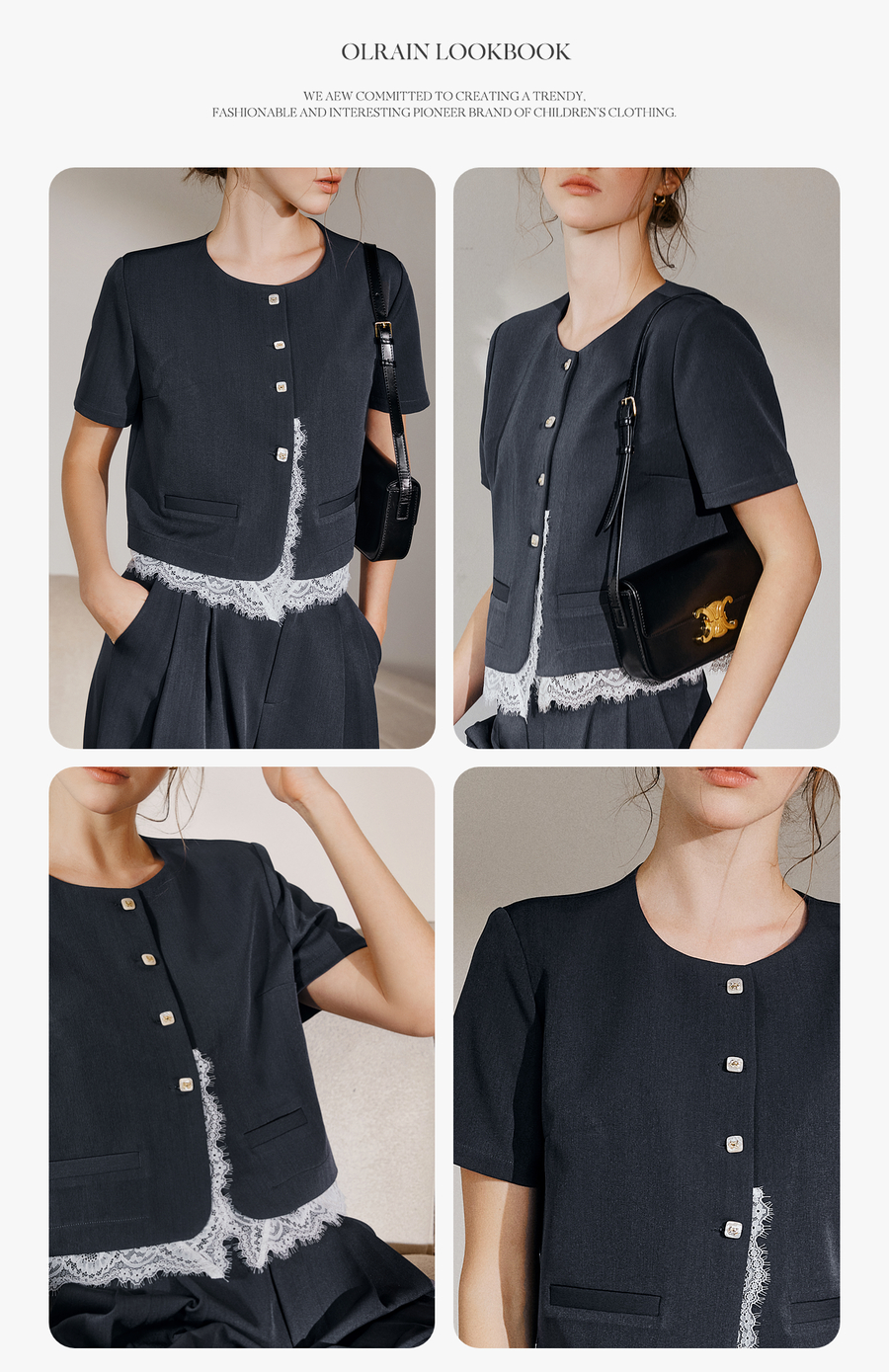 OLrain欧芮儿时尚套装女夏季2025年新款通勤拼接蕾丝两件套