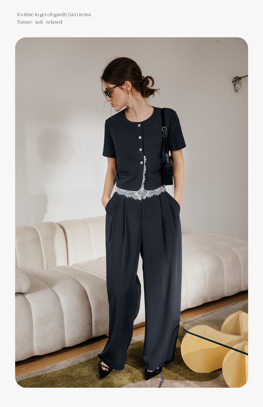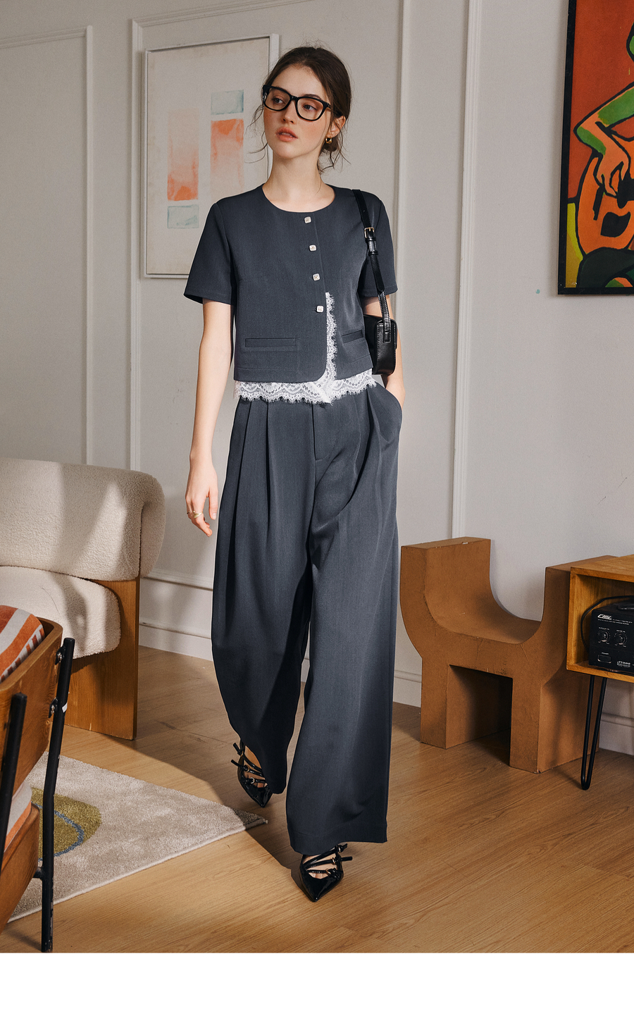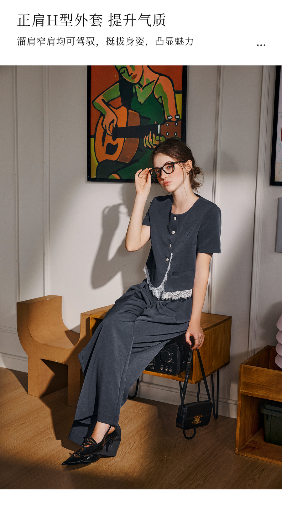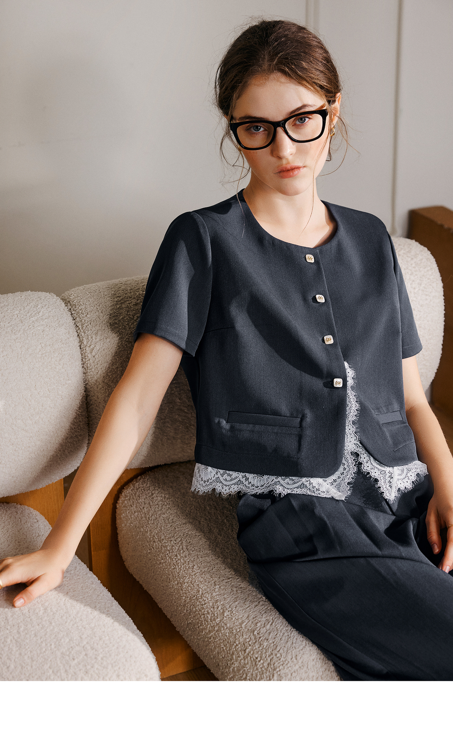 OLrain欧芮儿时尚套装女夏季2025年新款通勤拼接蕾丝两件套