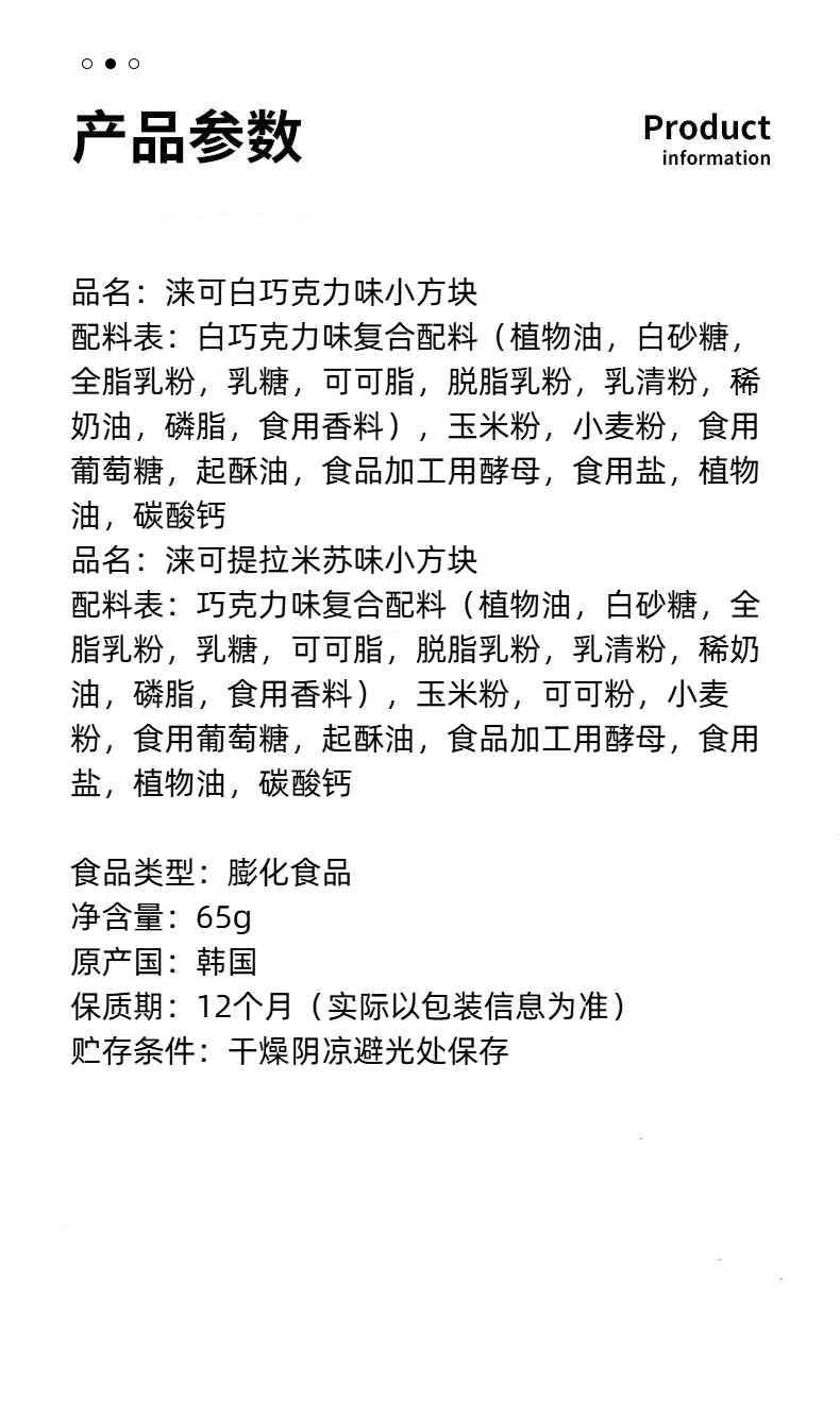 韩国进口涞可白巧克力味|提拉米苏味小方块65g