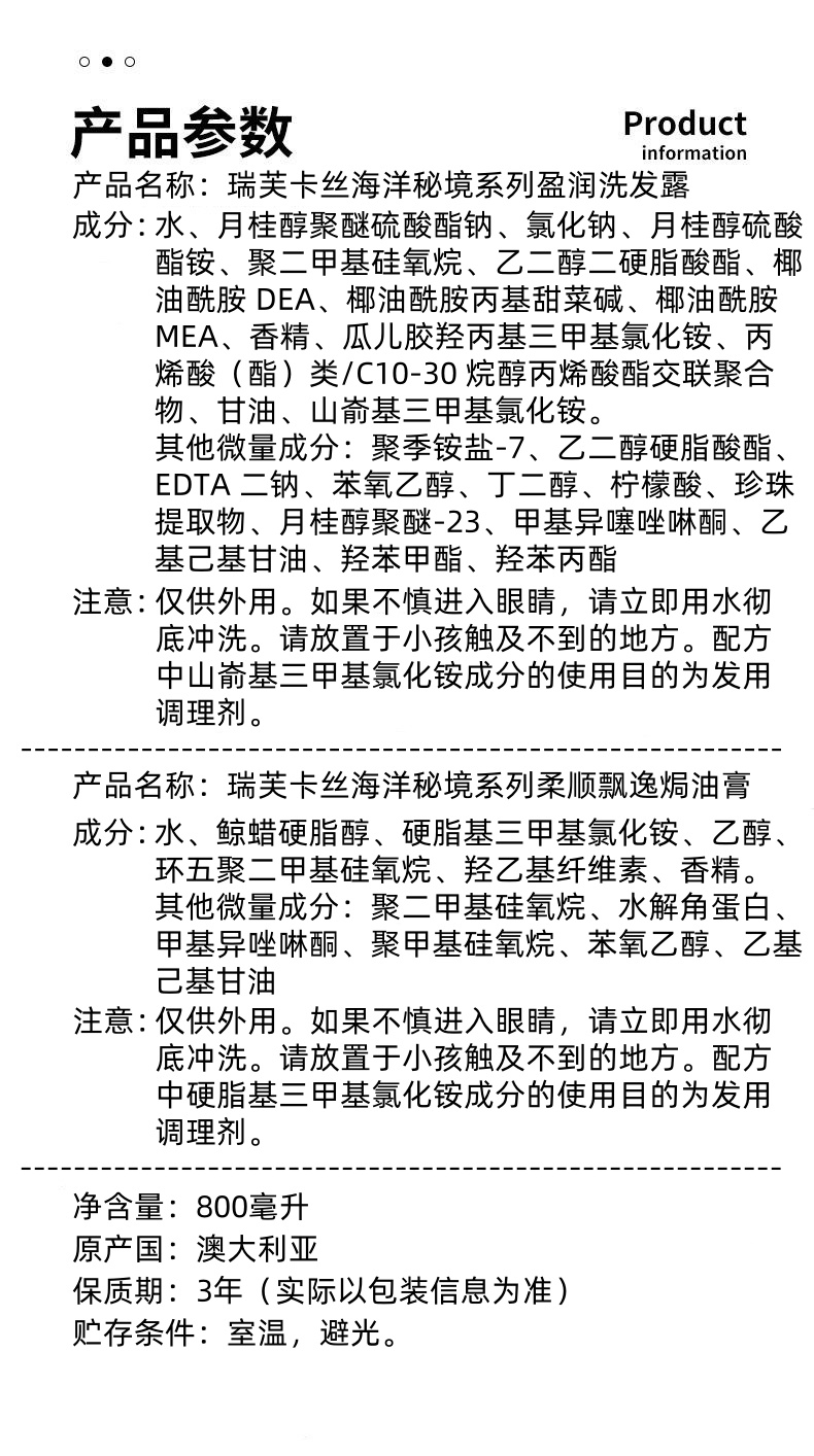 澳大利亚进口瑞芙卡丝海洋秘境盈润洗发露丨柔顺飘逸焗油膏800g