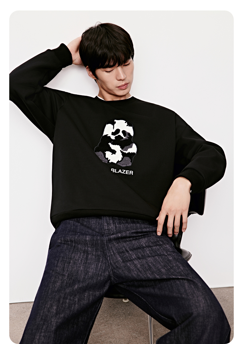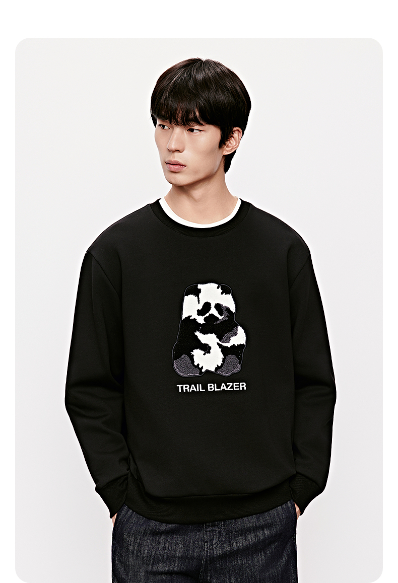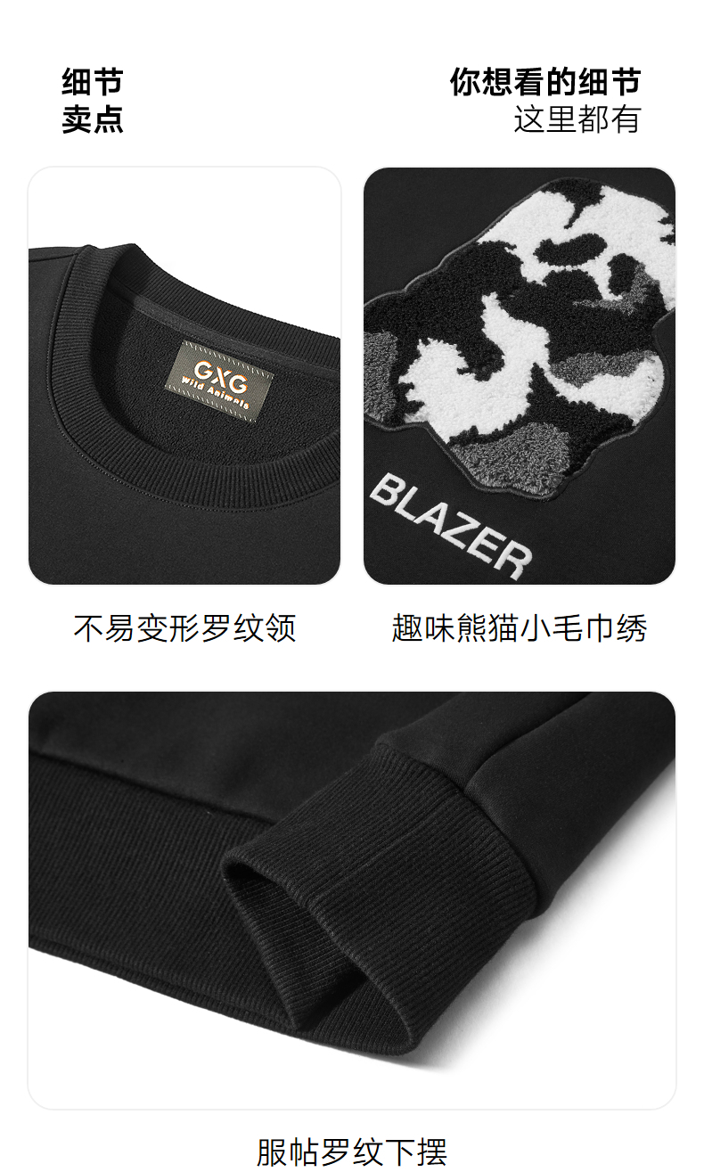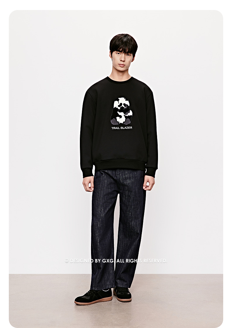 GXG男装 圆领套头卫衣熊猫印花双色上衣长袖卫衣 25冬季热卖