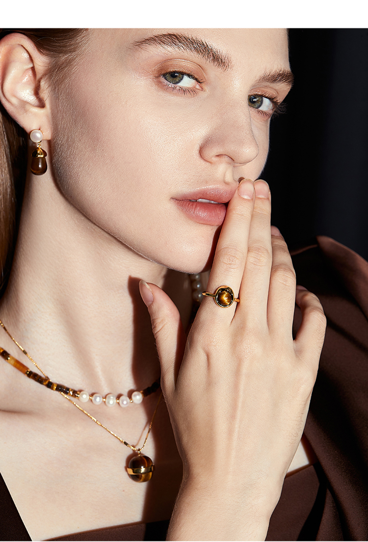 ZEGL法式虎眼石开口戒指女小众设计时尚个性2023年新款指环食指戒