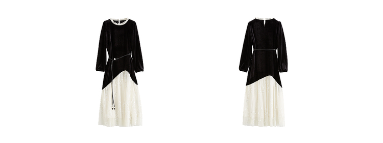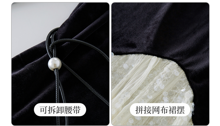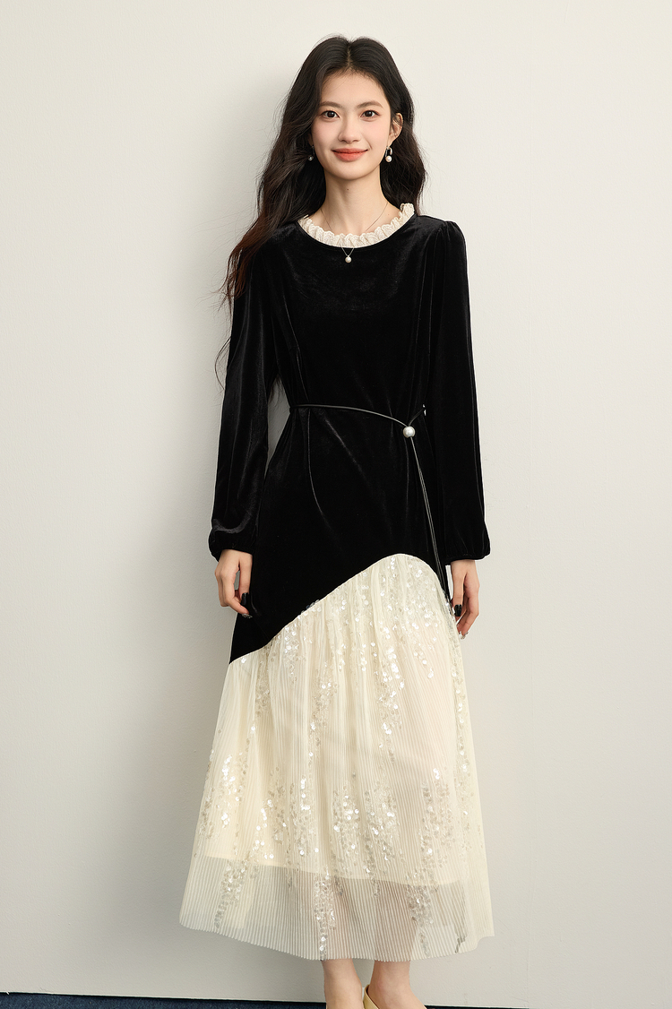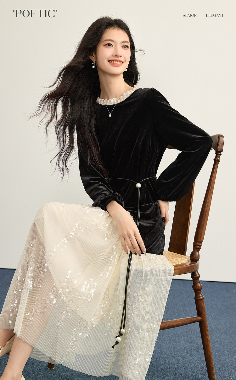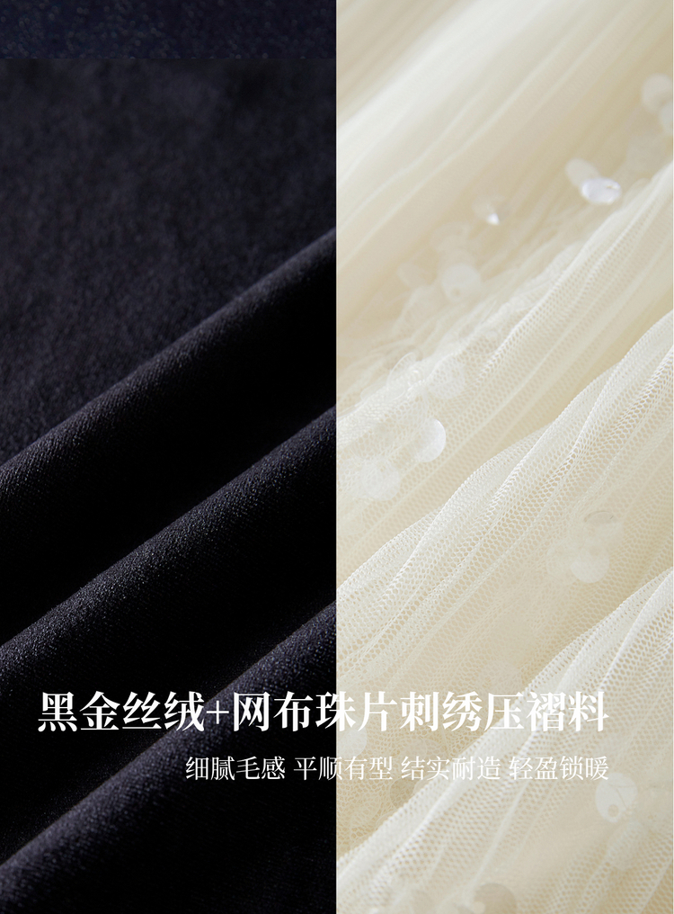 【12/10新品6折】熙世界富家千金赫本风亮片网纱拼接假两件丝绒连衣裙女25秋冬新款