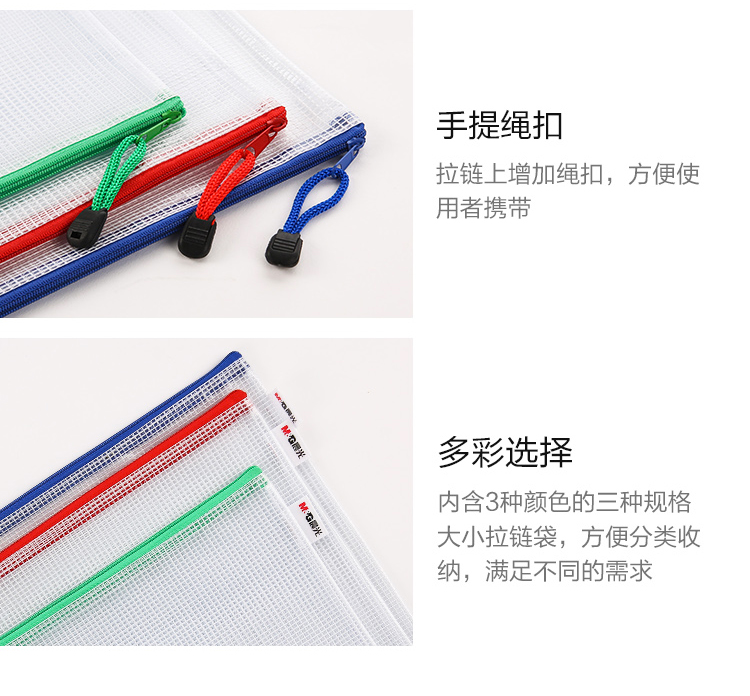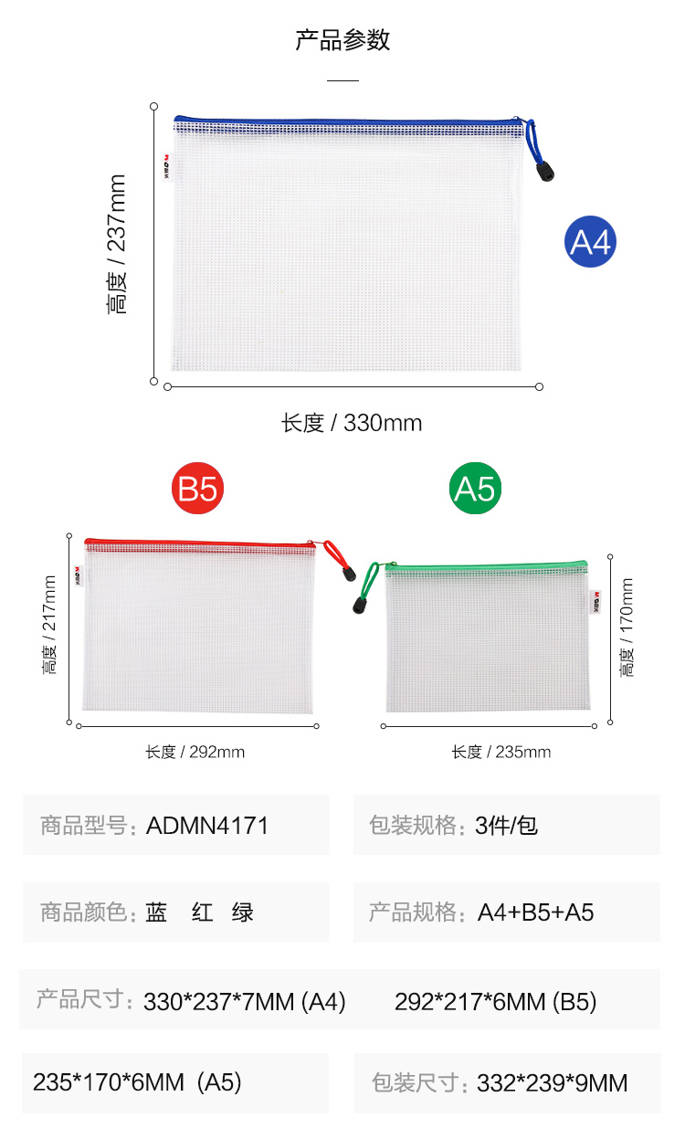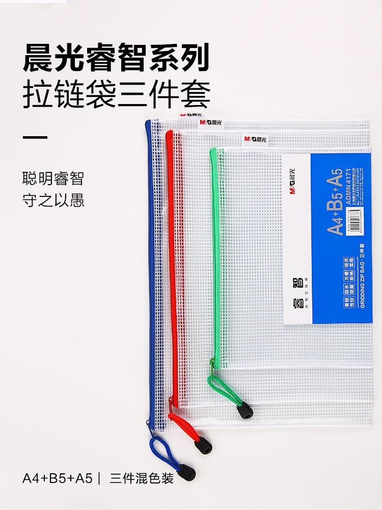 晨光(M&G)文具多规格网格拉链袋 文件袋 睿智系列资料袋文件整理收纳袋 3个装(A4/B5/A5各一个)ADMN4171