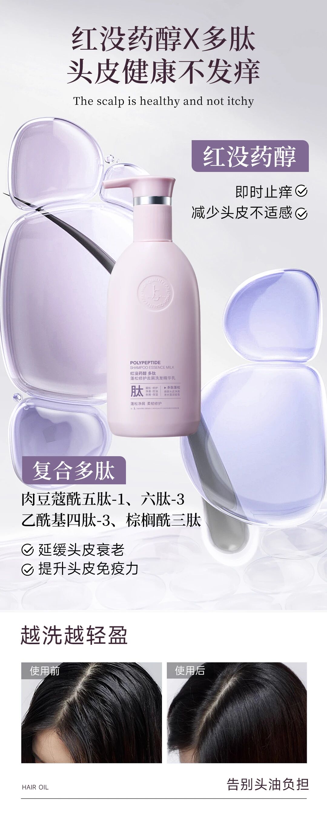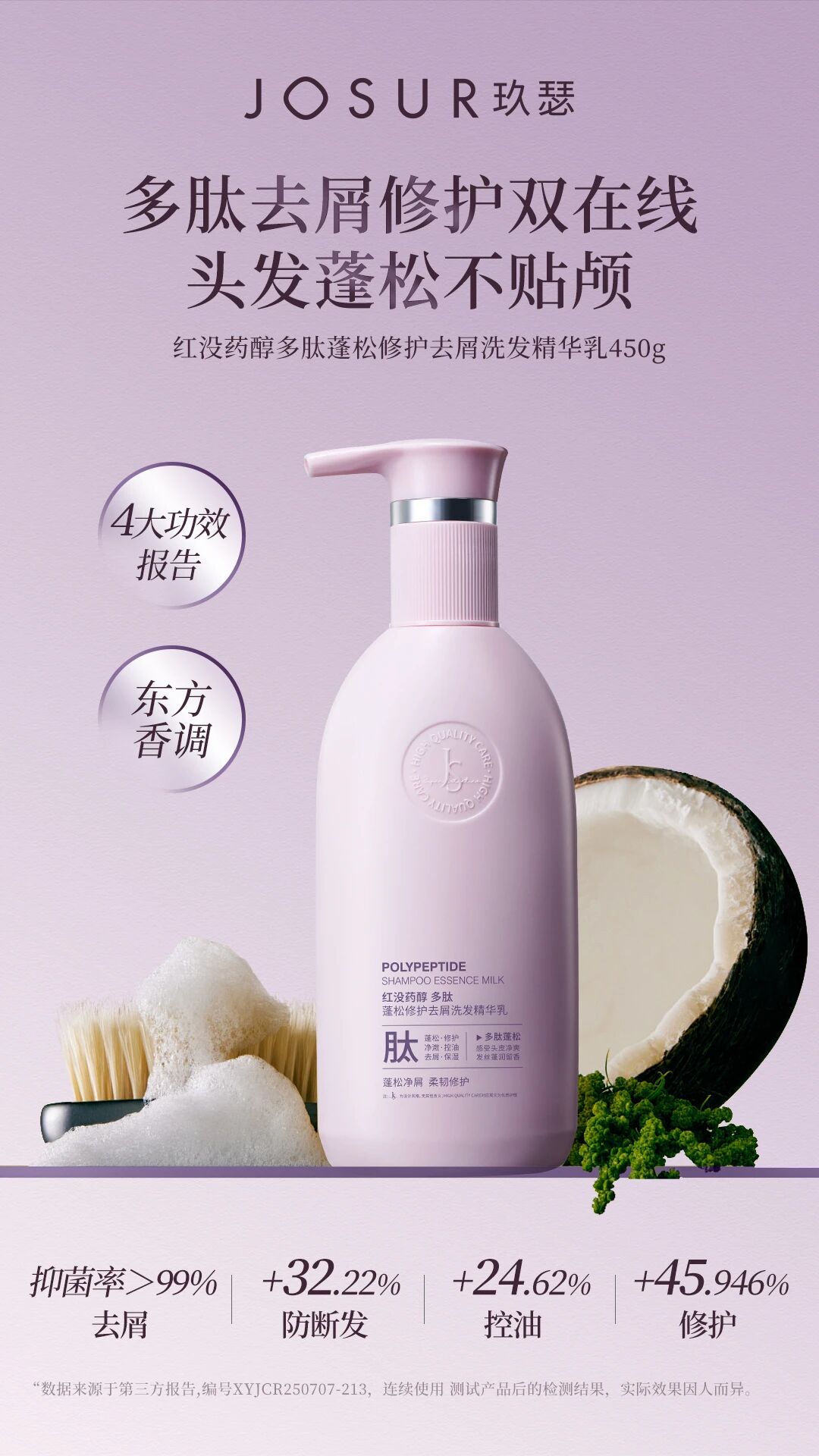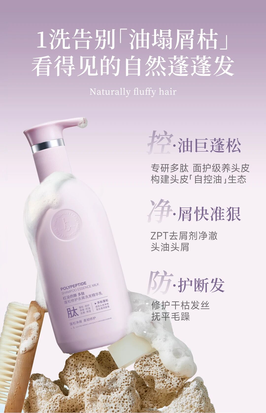 【告别油塌屑枯】玖瑟 红没药醇多肽蓬松修护去屑洗发精华乳 专研多肽面护级养头皮 深层滋养 去油去屑 防断发 修护发丝 蓬松轻盈 450g/瓶