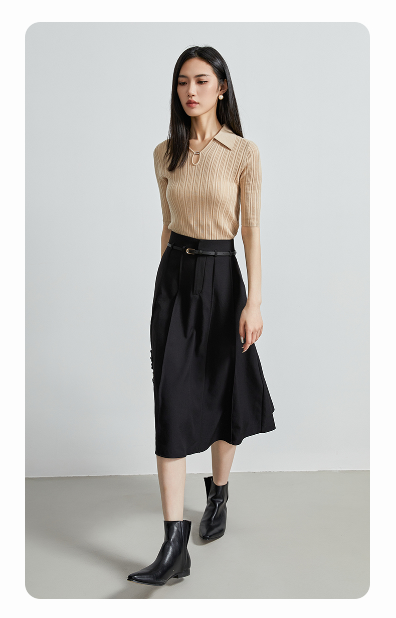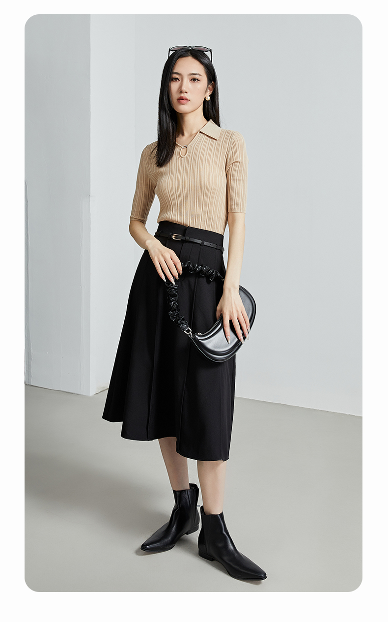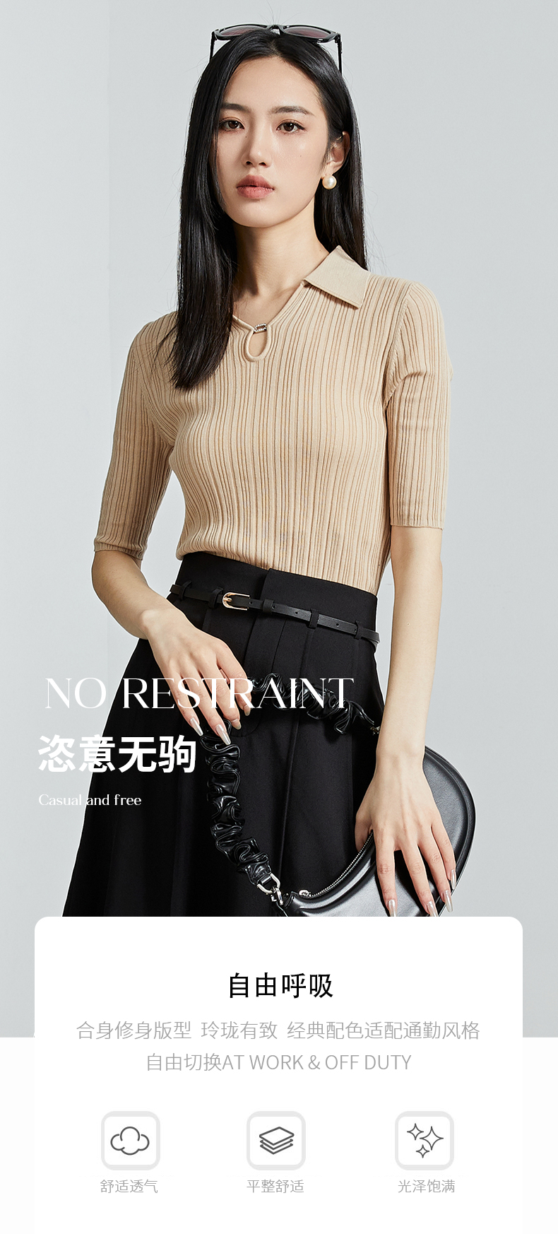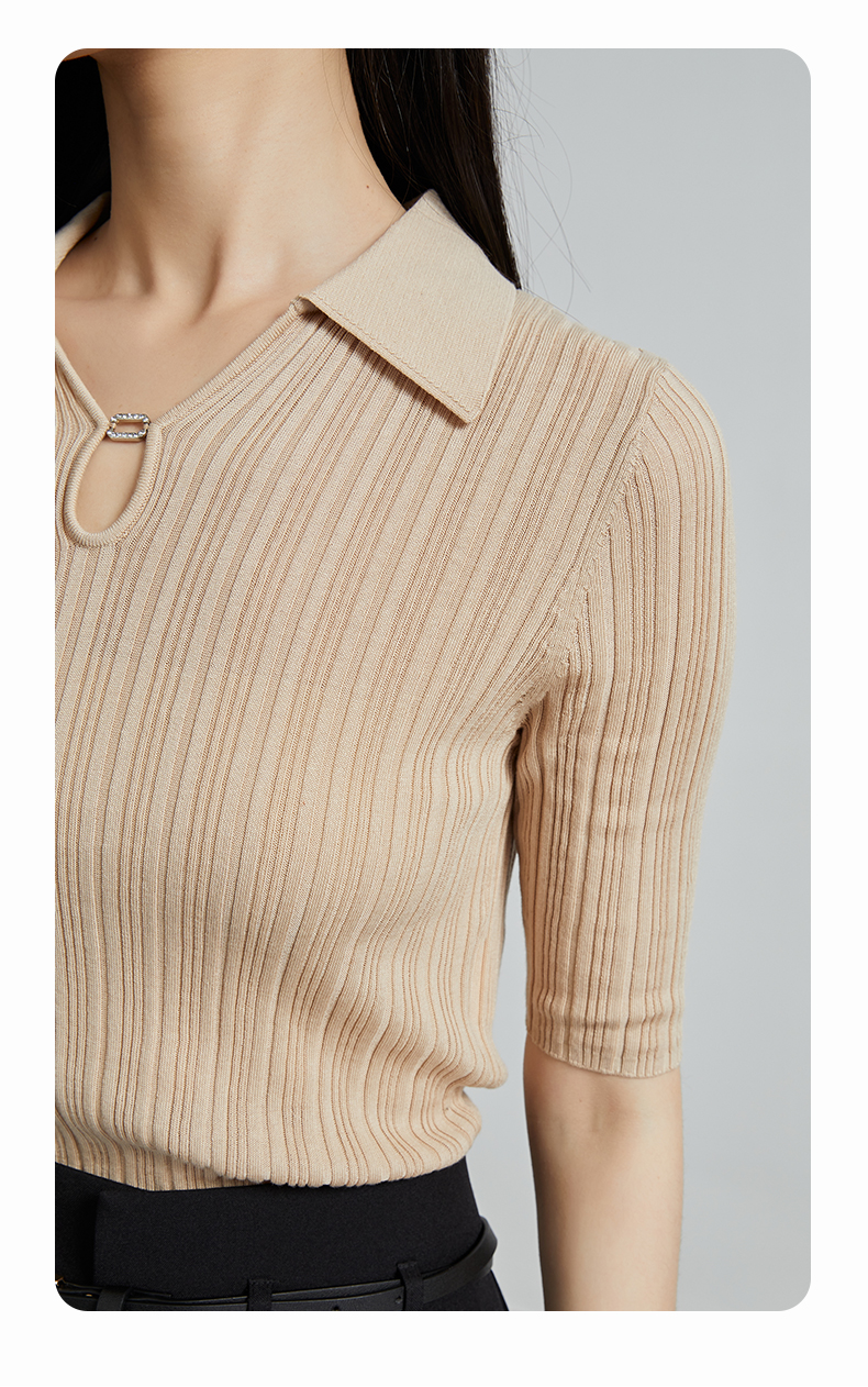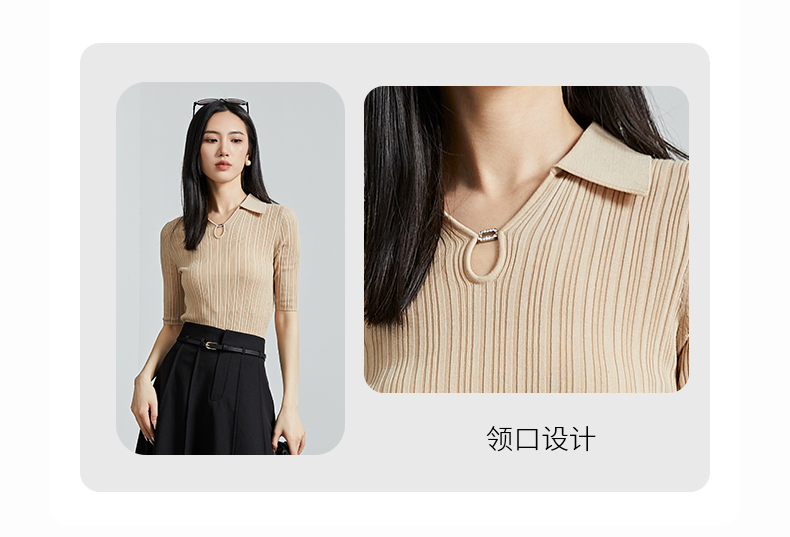 oldcolour春秋季新款时尚复古通勤修身显瘦中袖针织打底衫P310504A1