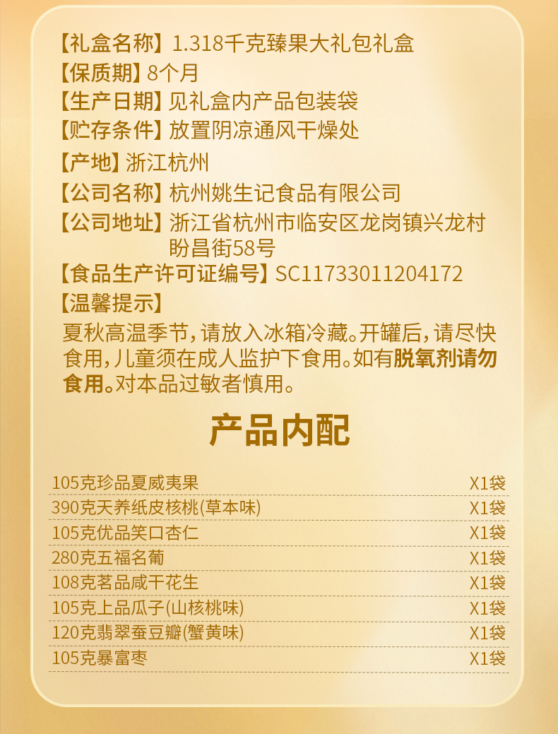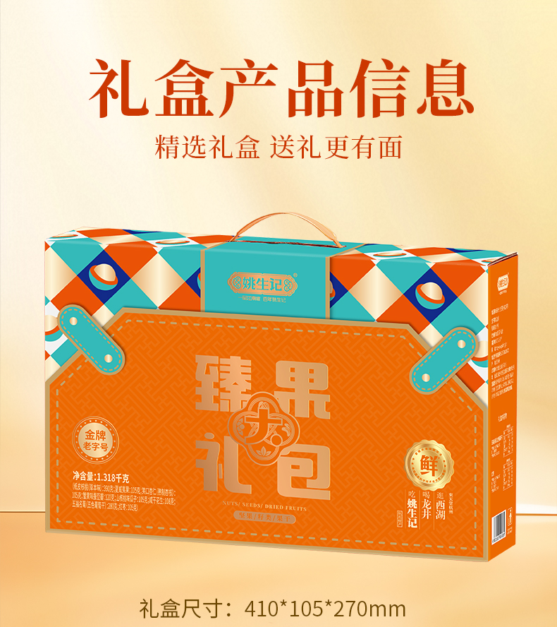 姚生记年节坚果炒货礼盒臻果大礼包1.318千克【臻礼贺岁】