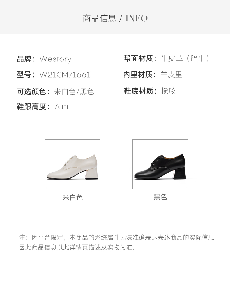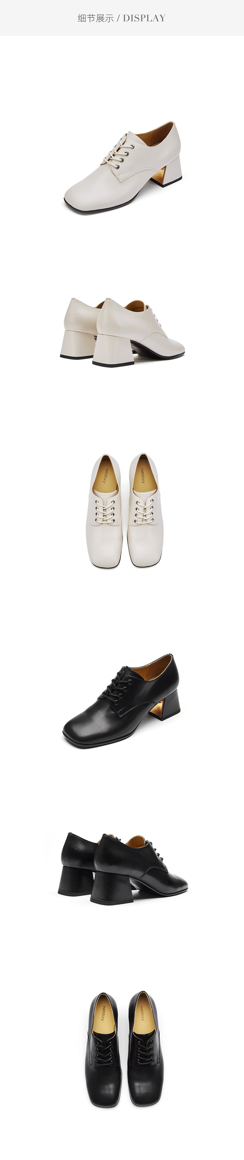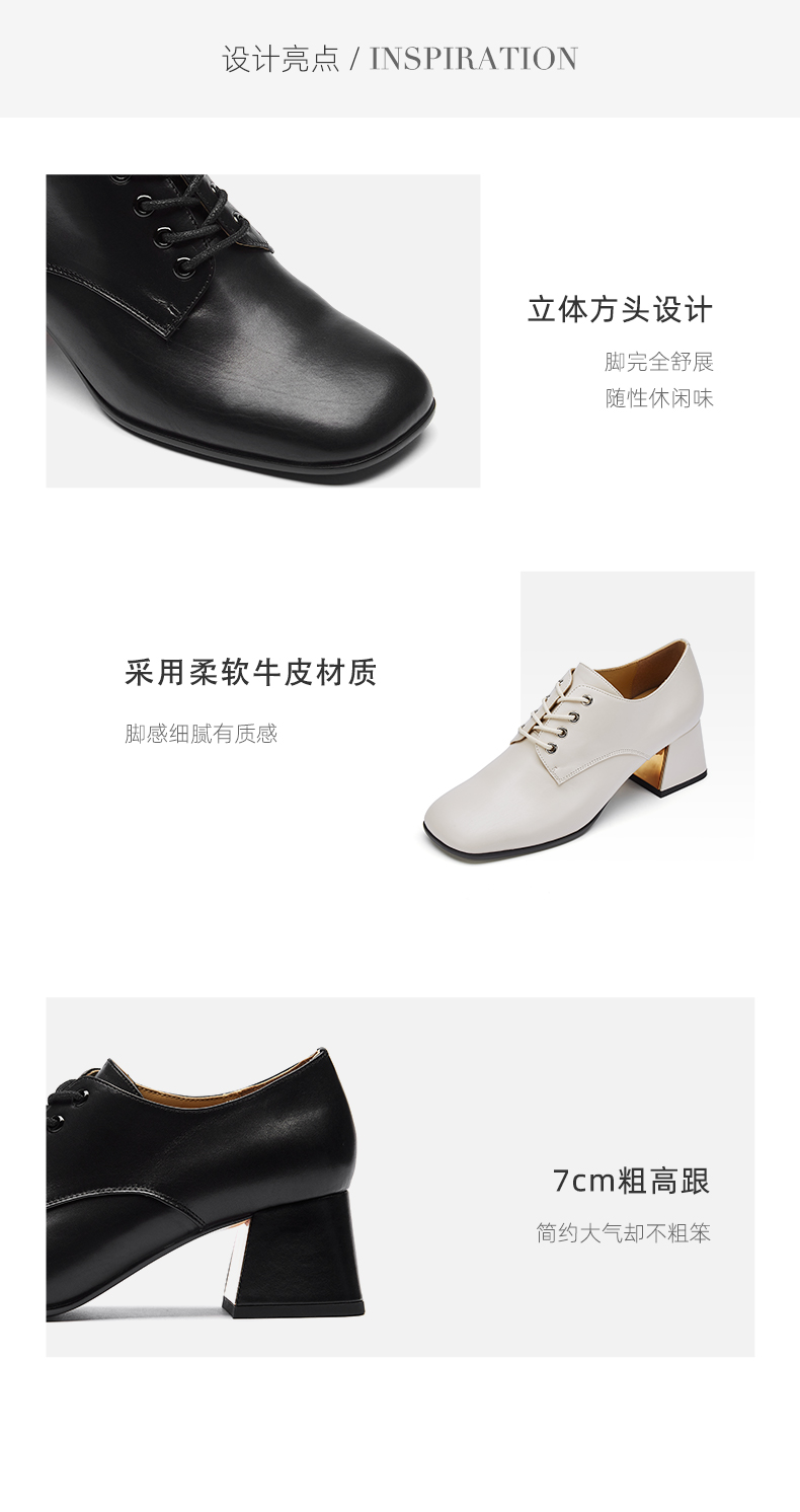 westory2021秋季新品方头粗跟高跟鞋英伦风系带小皮鞋W21CM71661