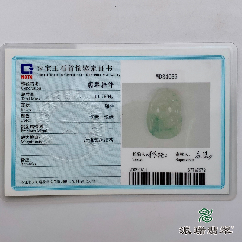 派瑞翡翠 翡翠挂件 冰糯种 淡绿色