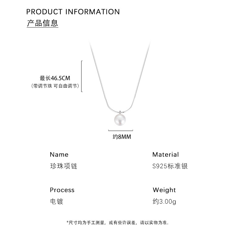 【明珠】子佩集S925银“一颗珍珠”吊坠项链【ZYXS-A2522】镀金2208