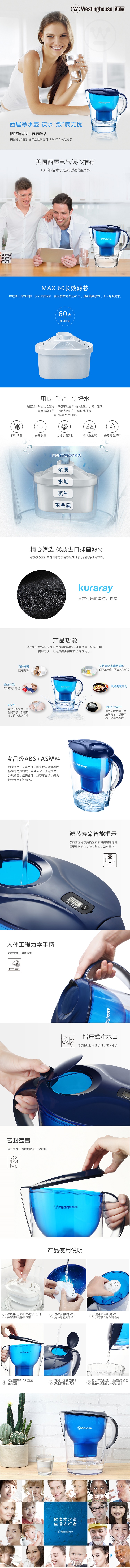 西屋(Westinghouse)净水器滤芯过滤净水器家用厨房滤水壶净水壶3.5L1壶1芯 WT-B02