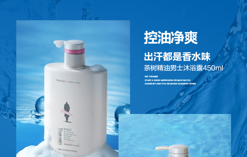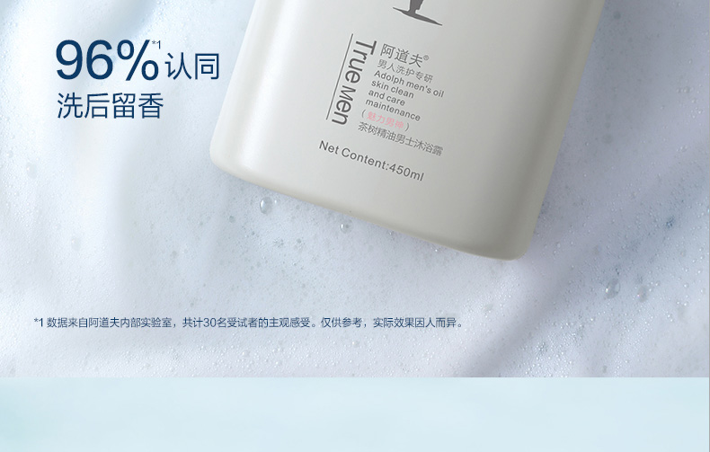 阿道夫 茶树精油男士沐浴露 魅力男神沐浴乳 450ml 温和氨基酸 深层洁净 48小时发货