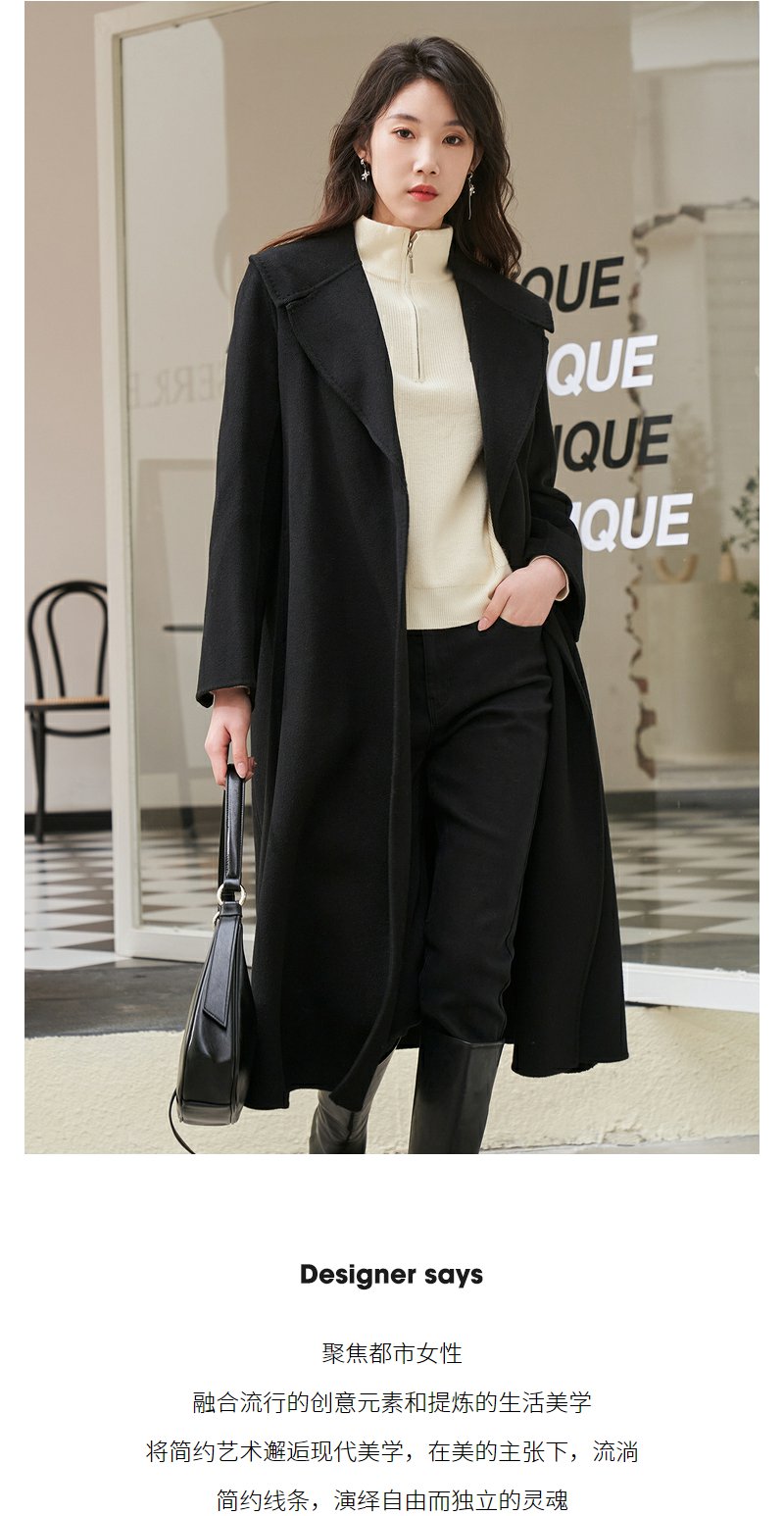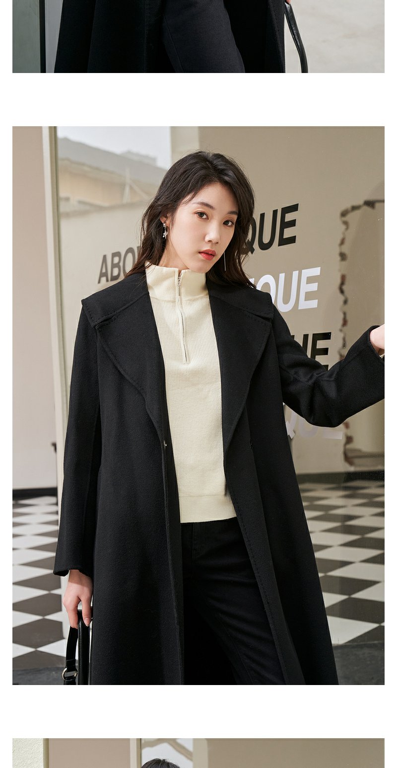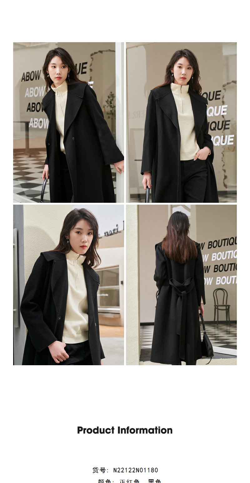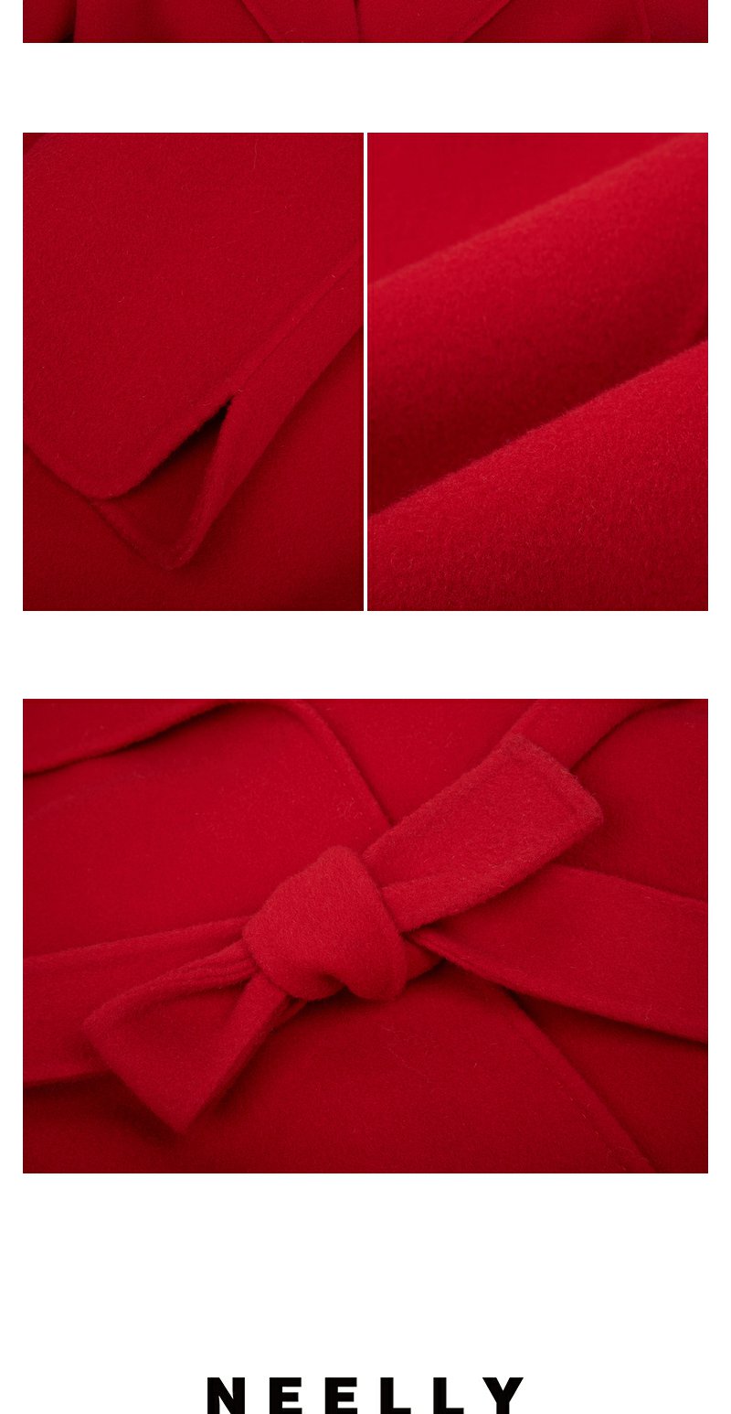 NEELLY纳俪商场同款气质翻领双面呢外套女中长款冬季新款毛呢大衣N22122N01180