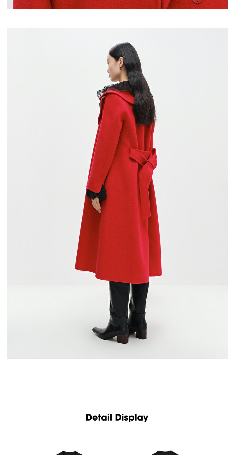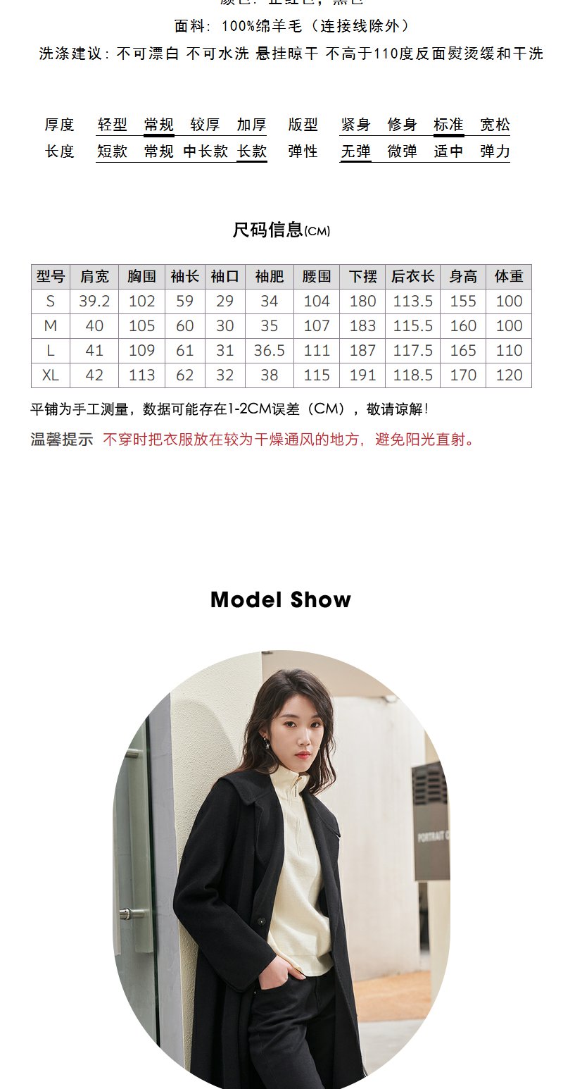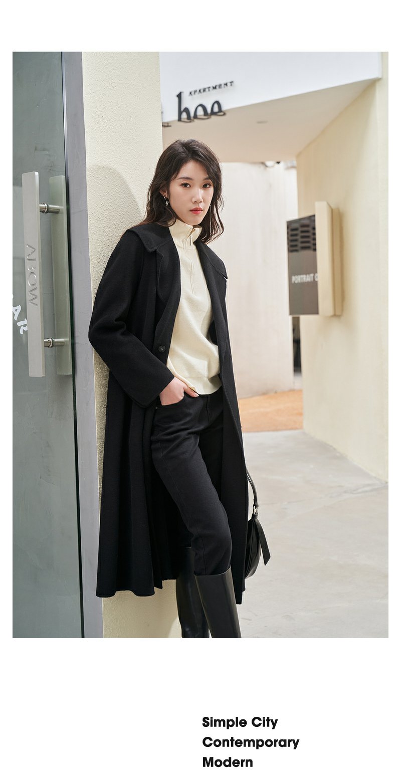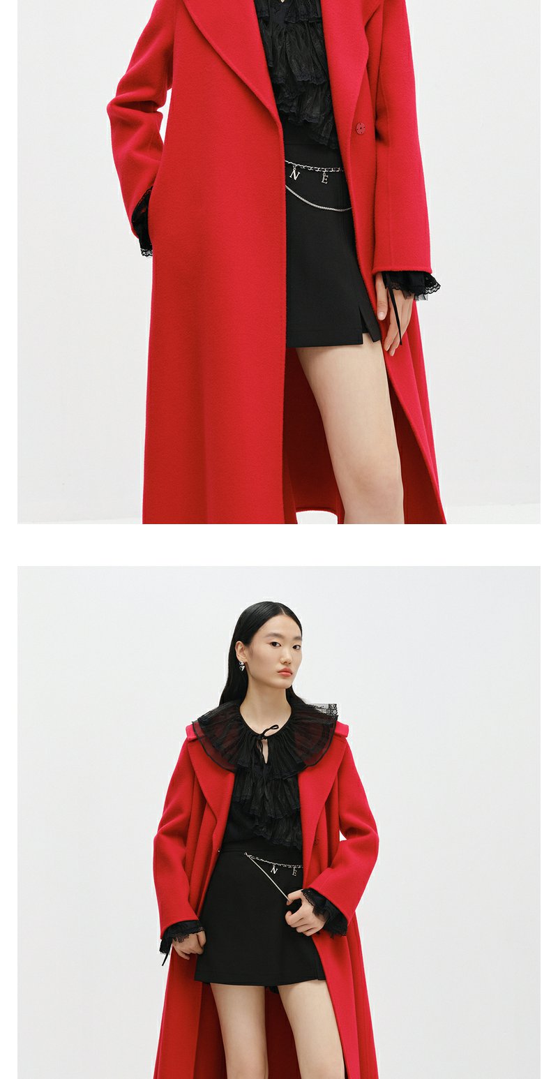 NEELLY纳俪商场同款气质翻领双面呢外套女中长款冬季新款毛呢大衣N22122N01180
