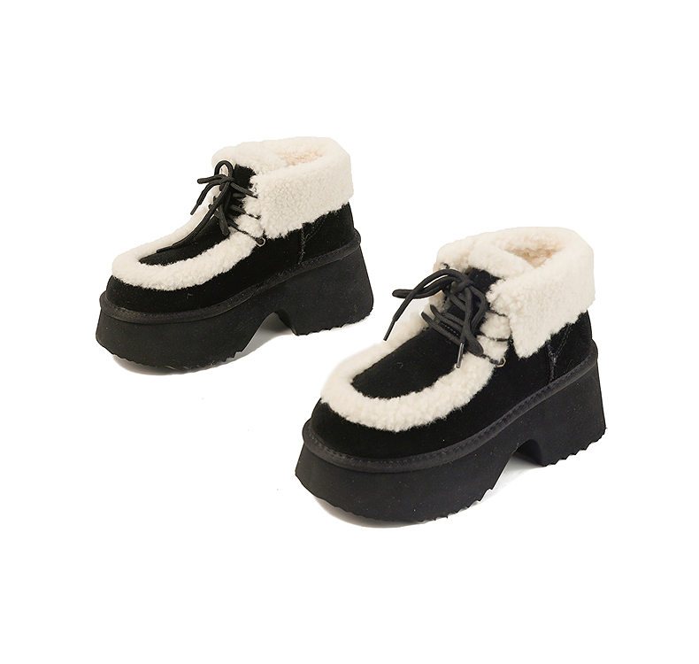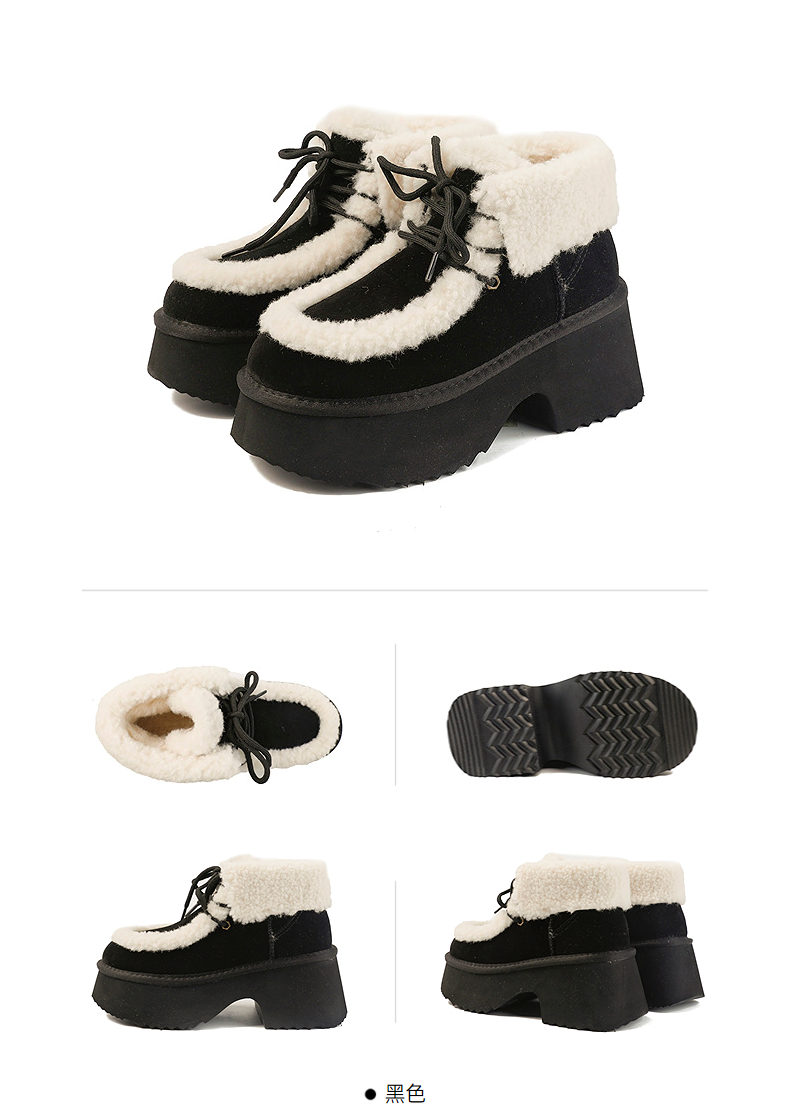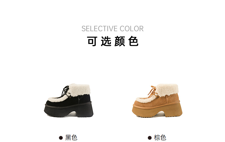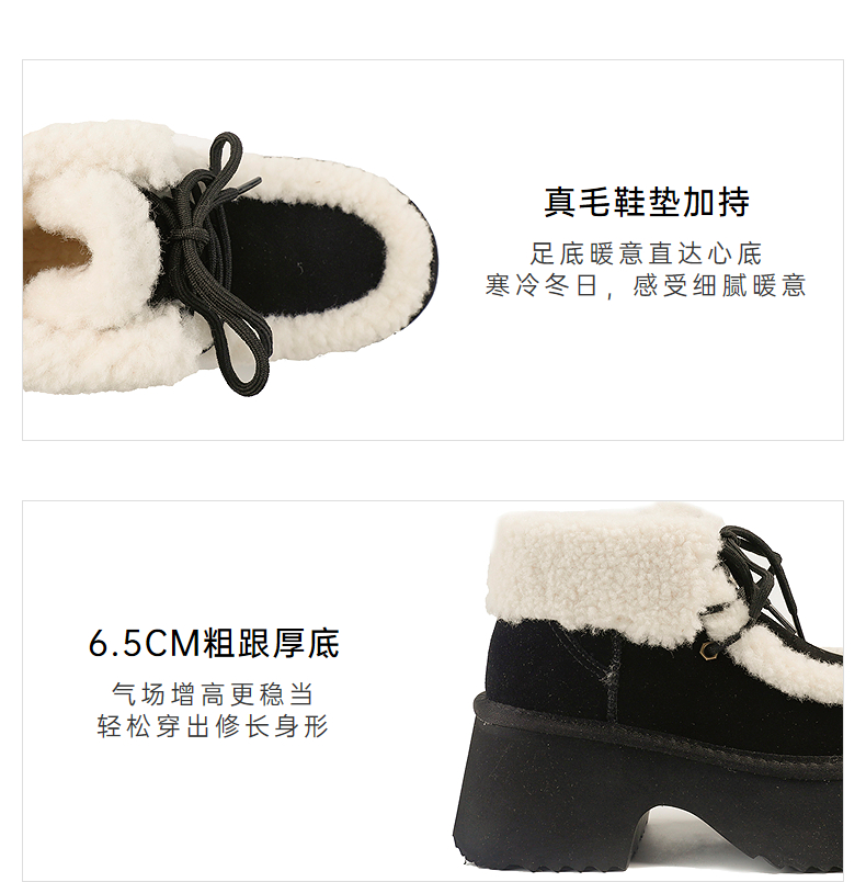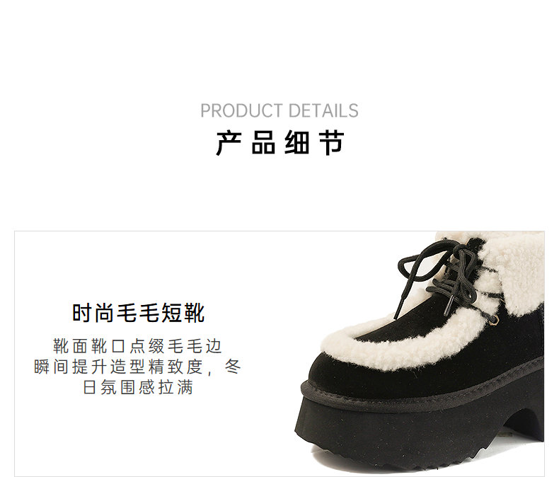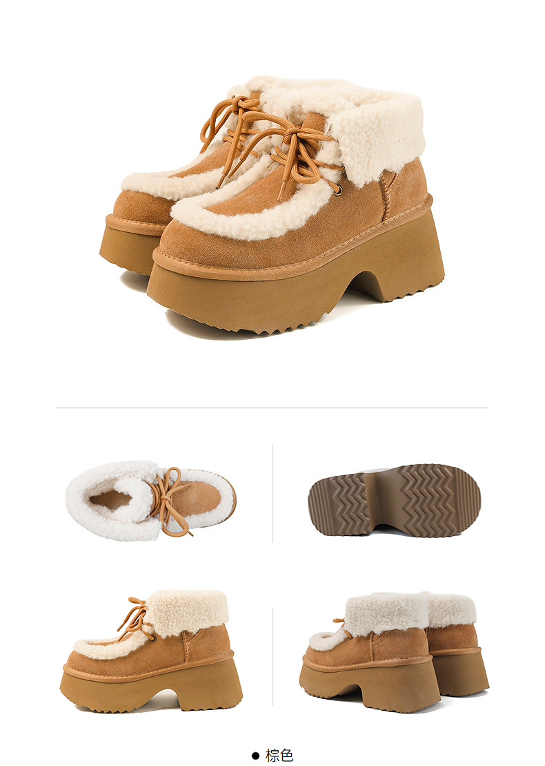 伊伴冬季时尚毛毛短靴雪地靴系带靴粗跟高跟B25726010