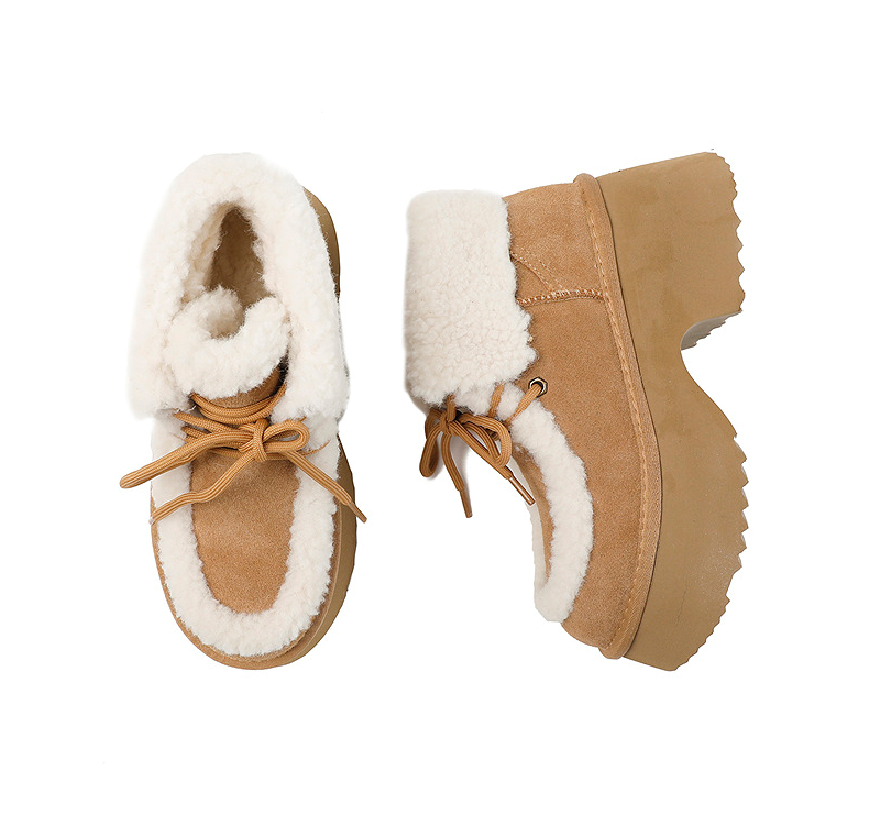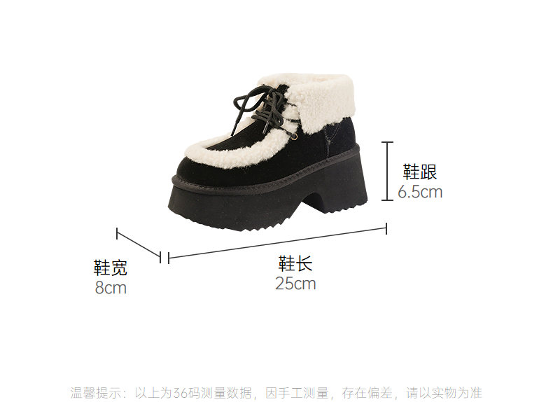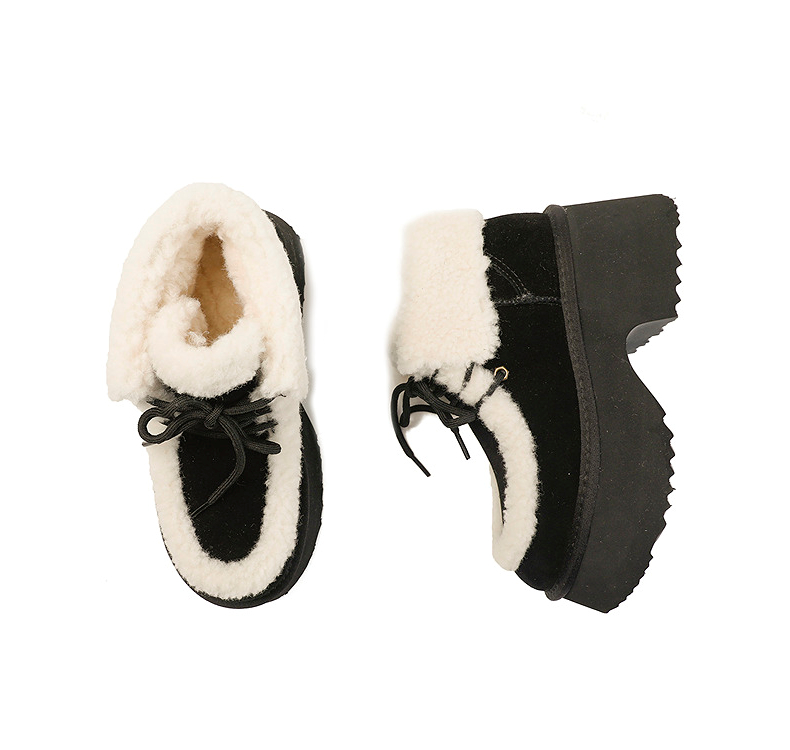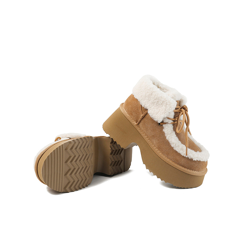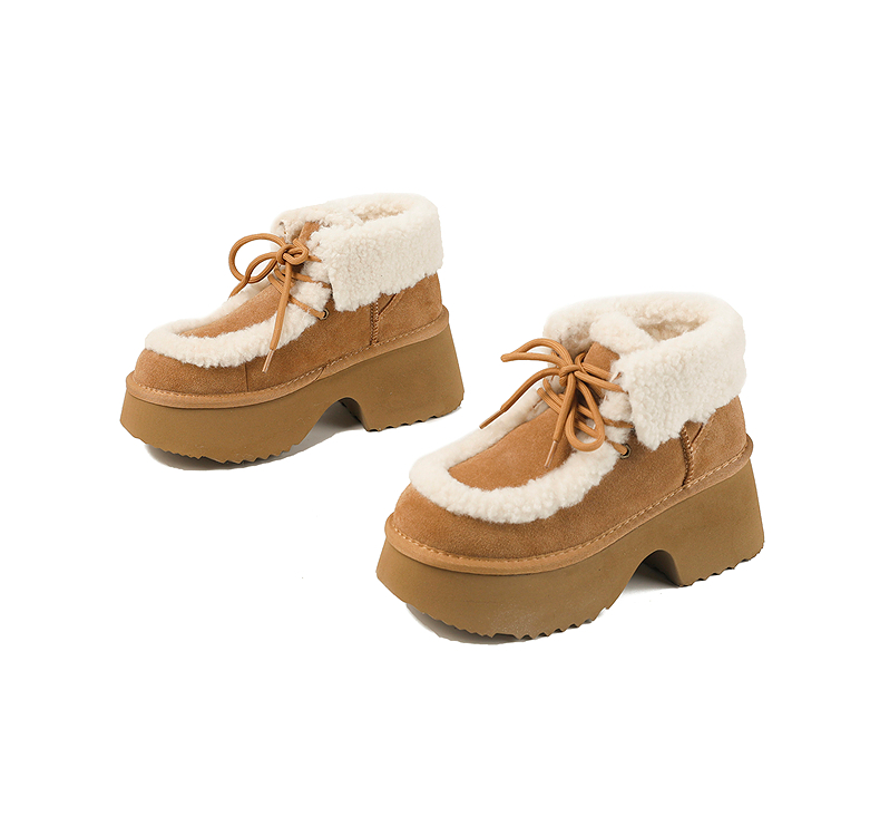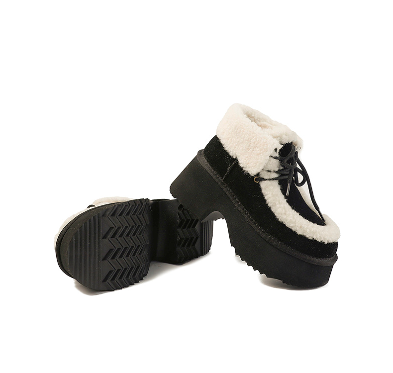 伊伴冬季时尚毛毛短靴雪地靴系带靴粗跟高跟B25726010