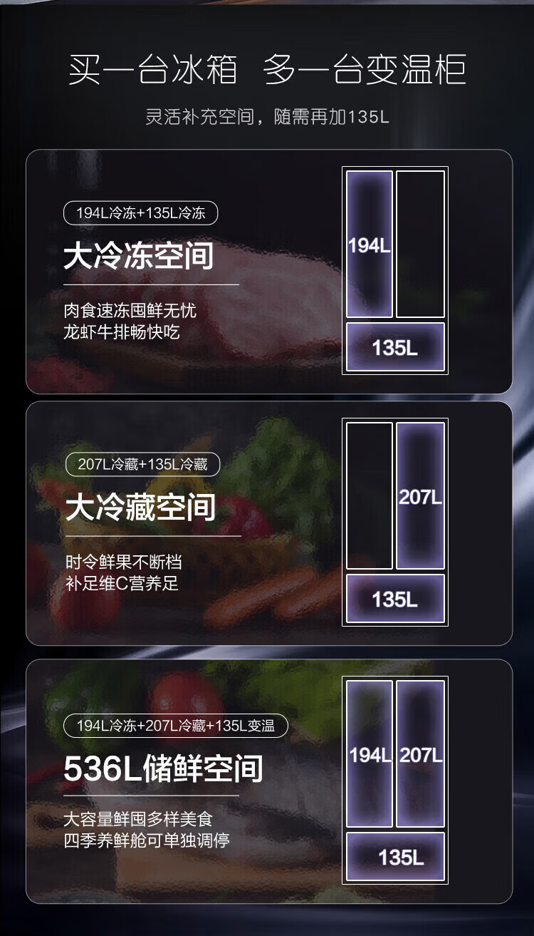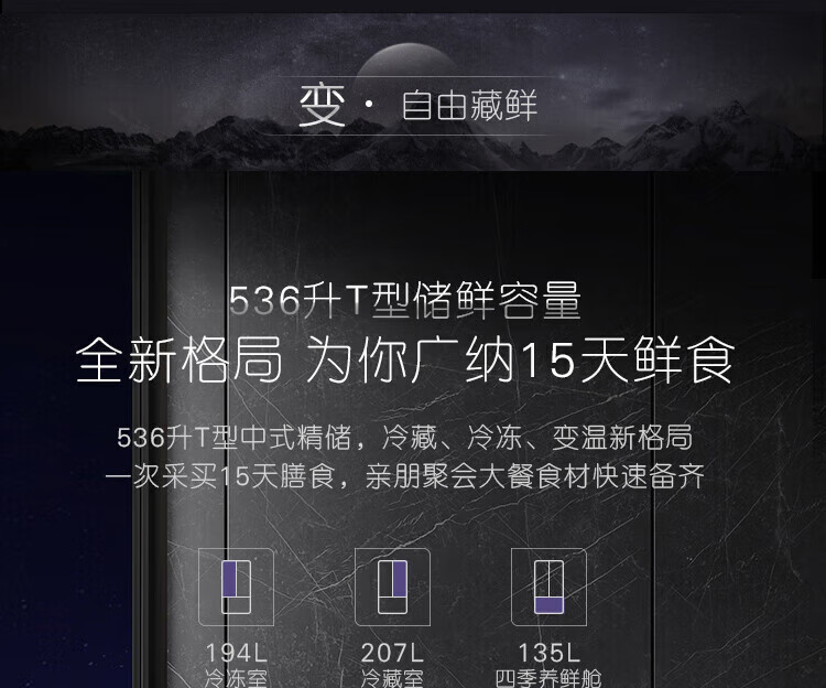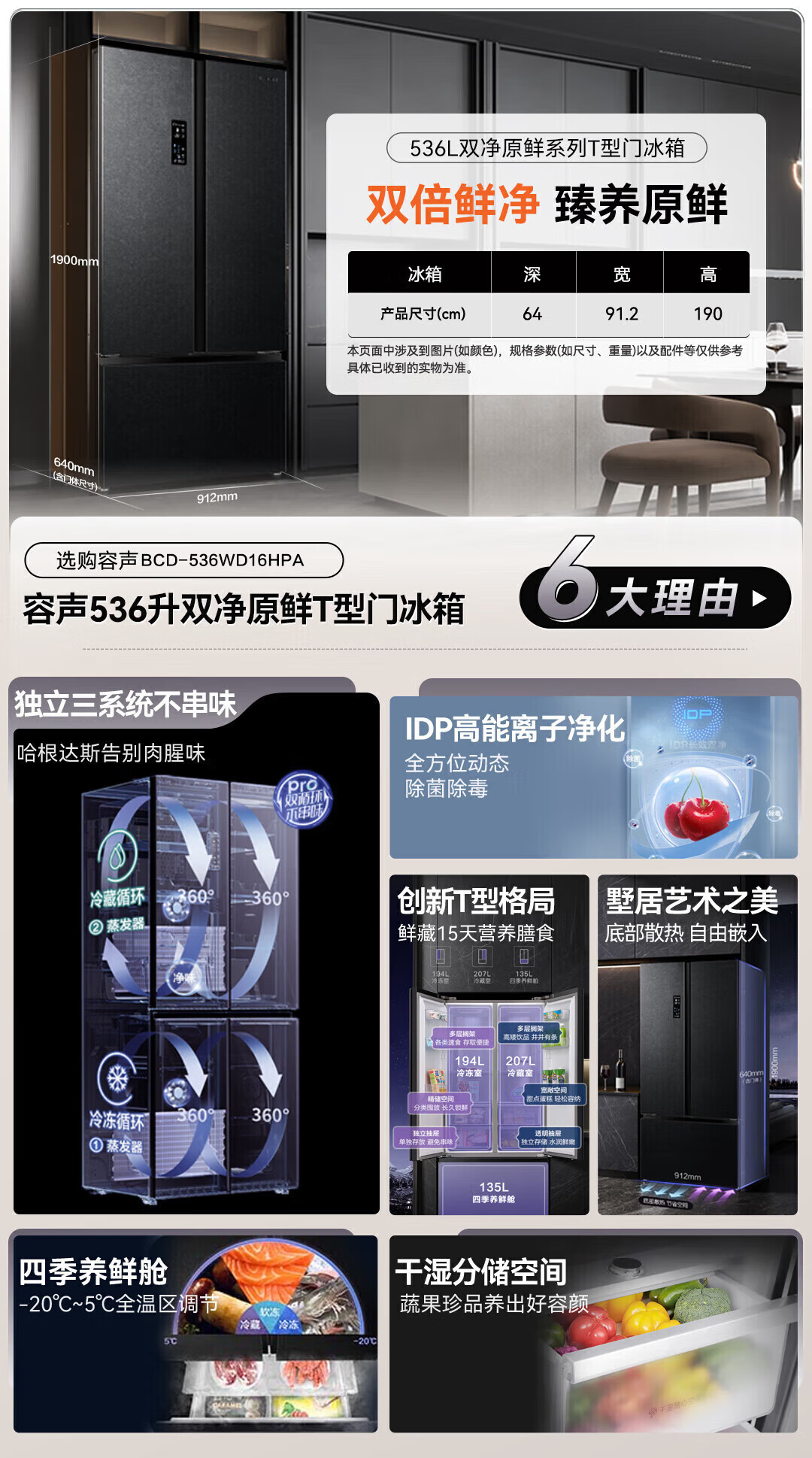 容声冰箱536升三循环冰箱BCD-536WD16HPA