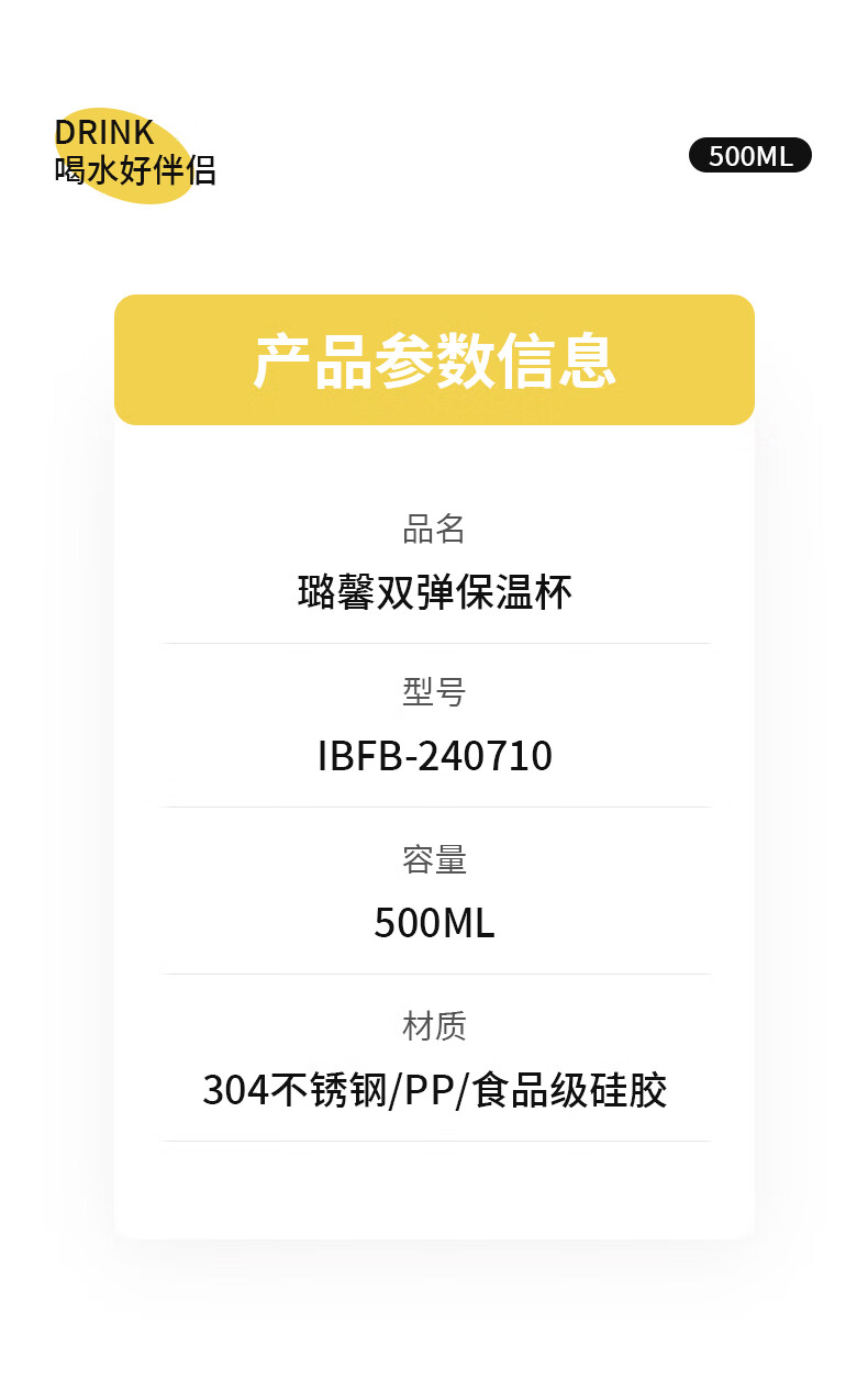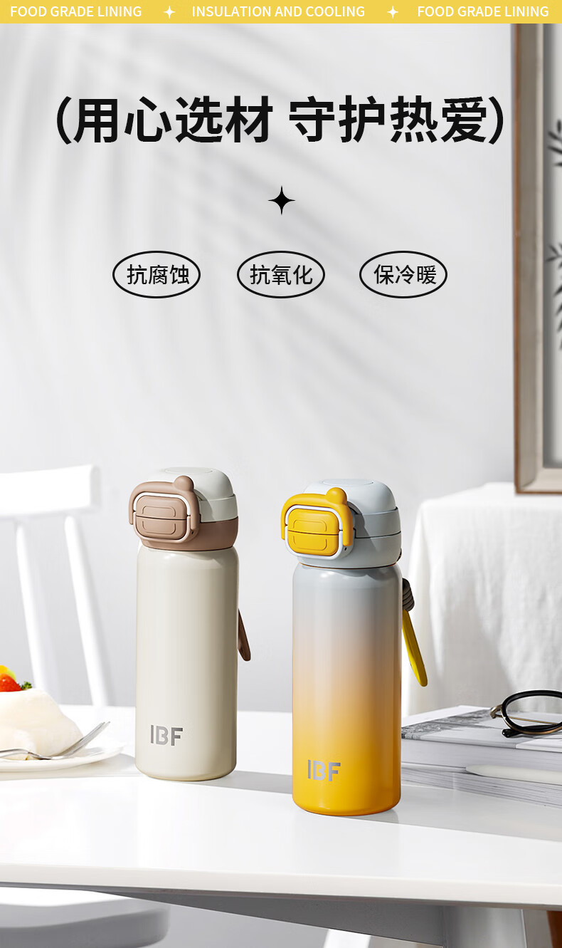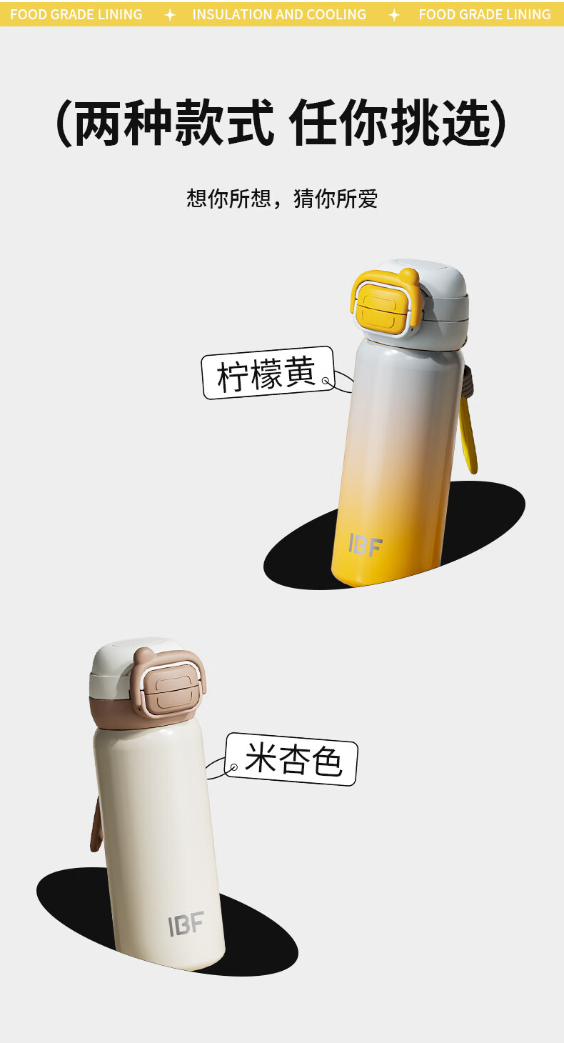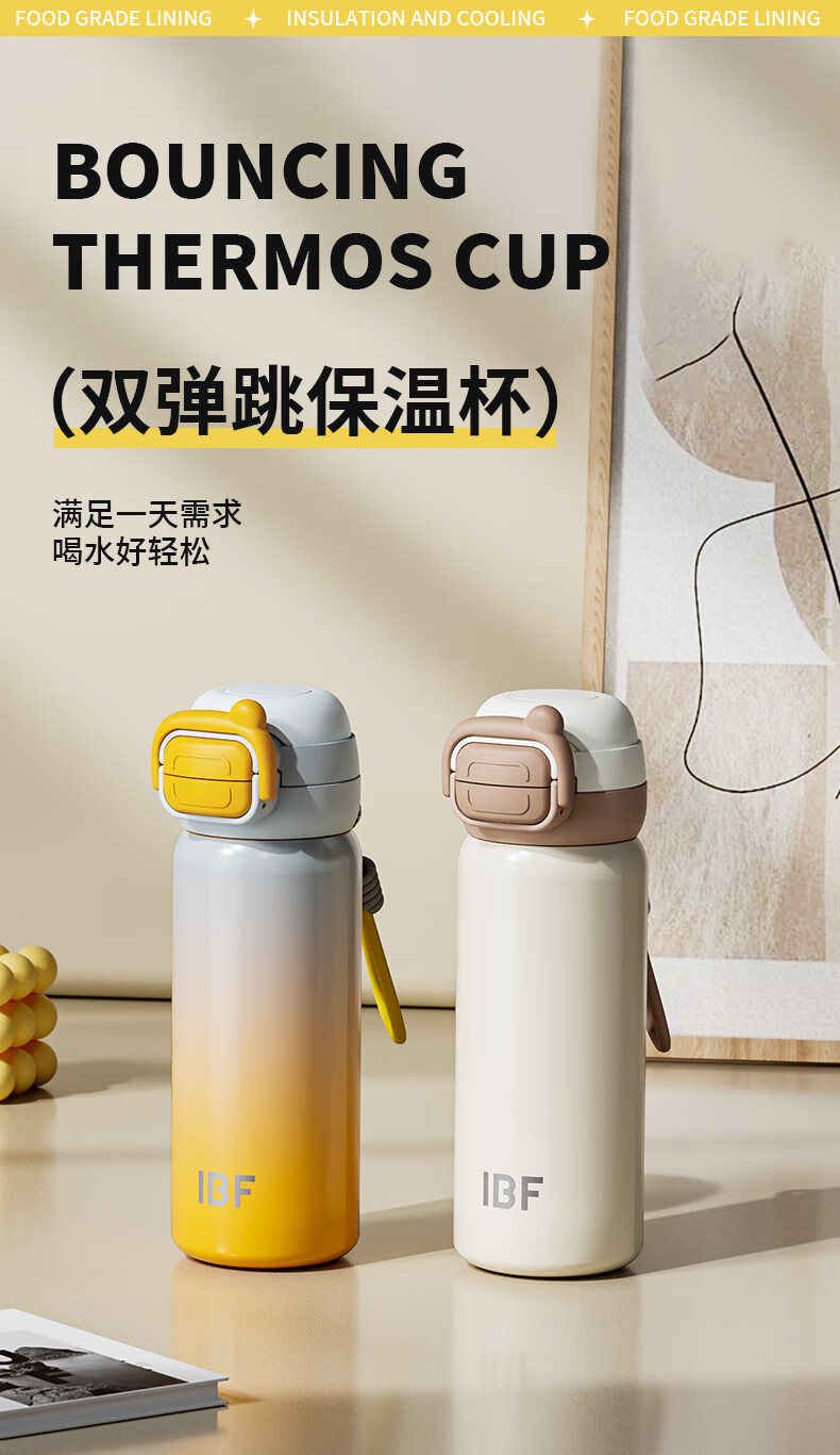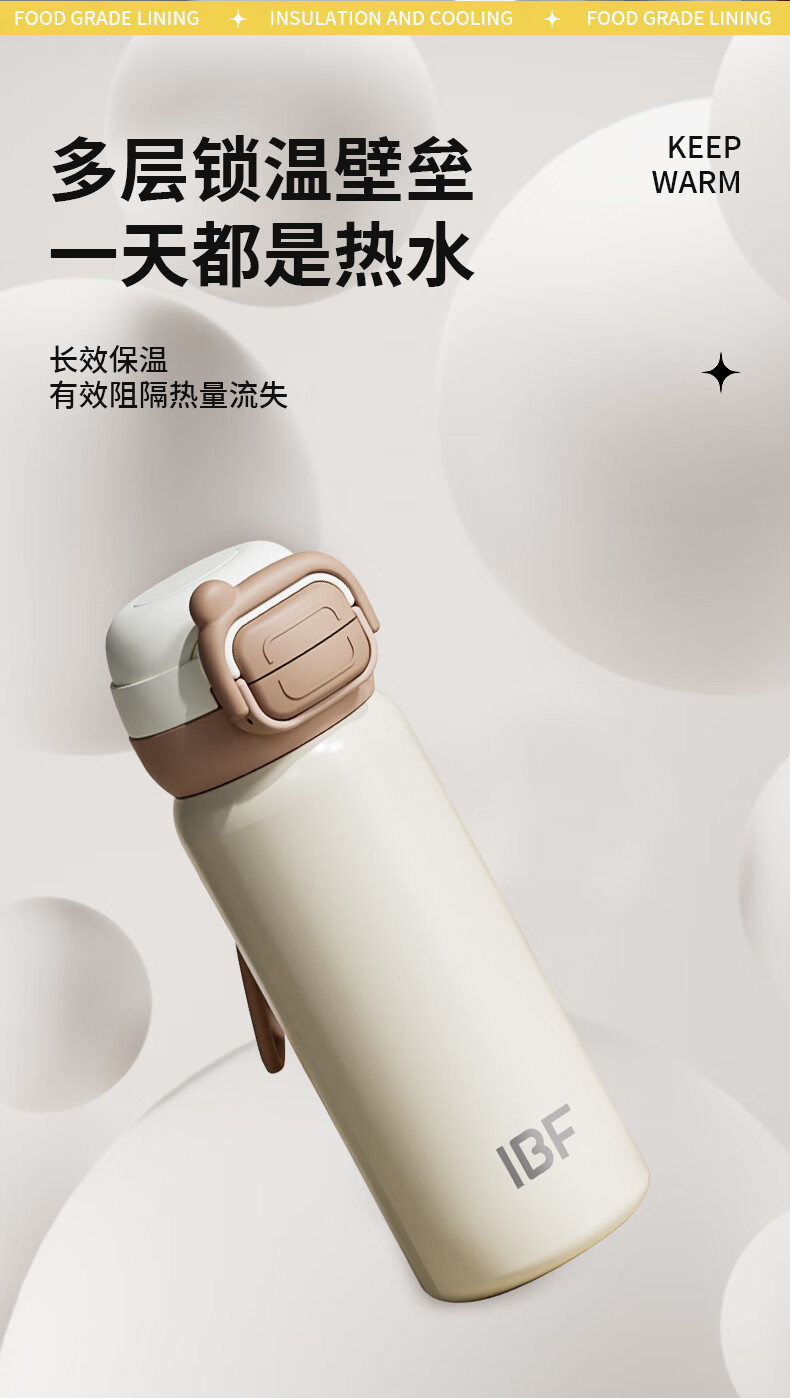 IBF艾博菲艾博菲艾博菲璐馨双弹跳保温杯_米杏色_500ml【K】