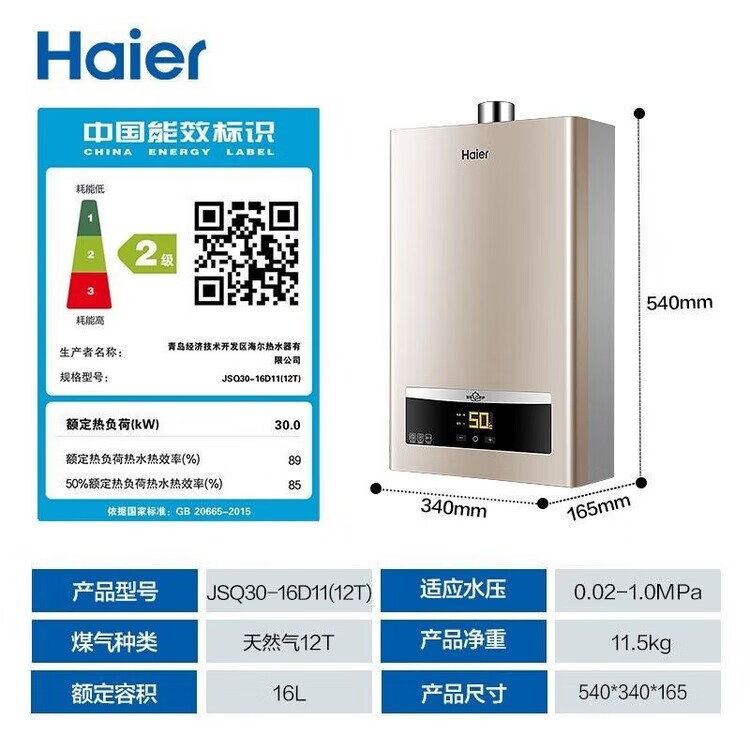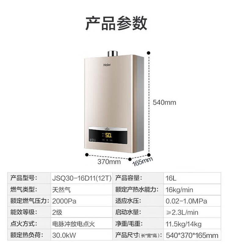 海尔 燃气热水器 JSQ22-12D11(12T) 天然气 恒温D11 二级能效