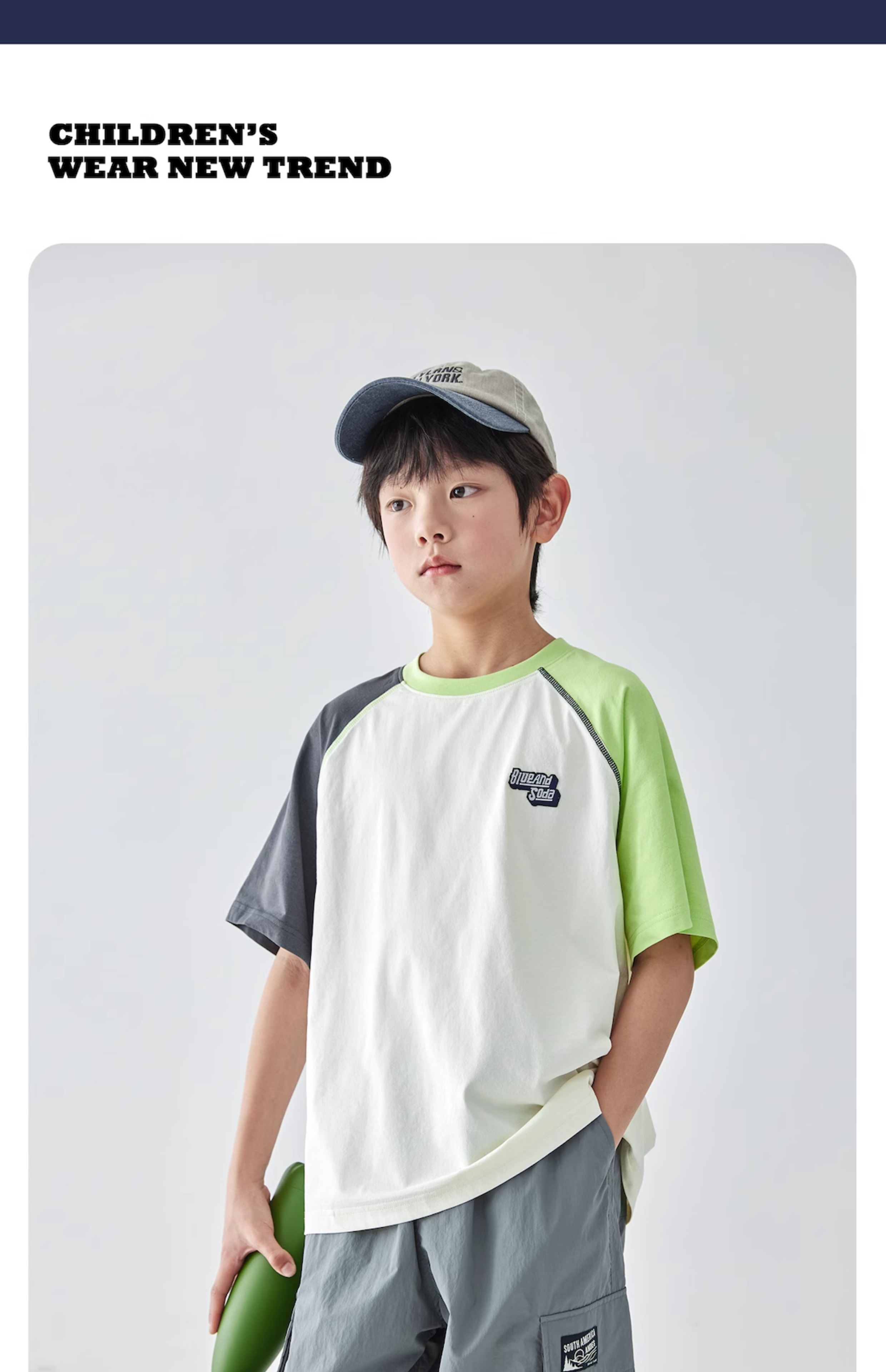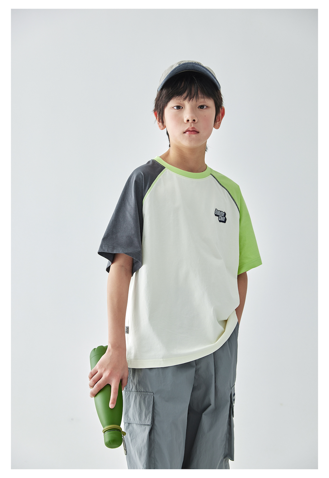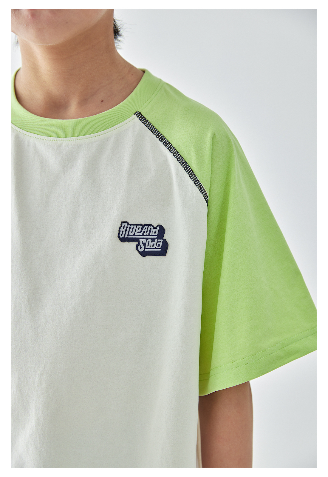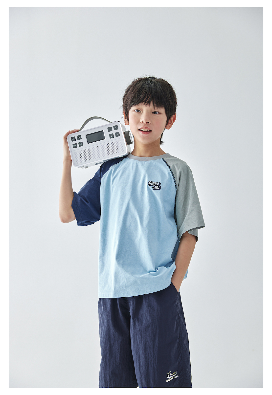 【代发】男童撞色插肩字母短袖T恤 蓝汽水夏款上衣白色/蓝色