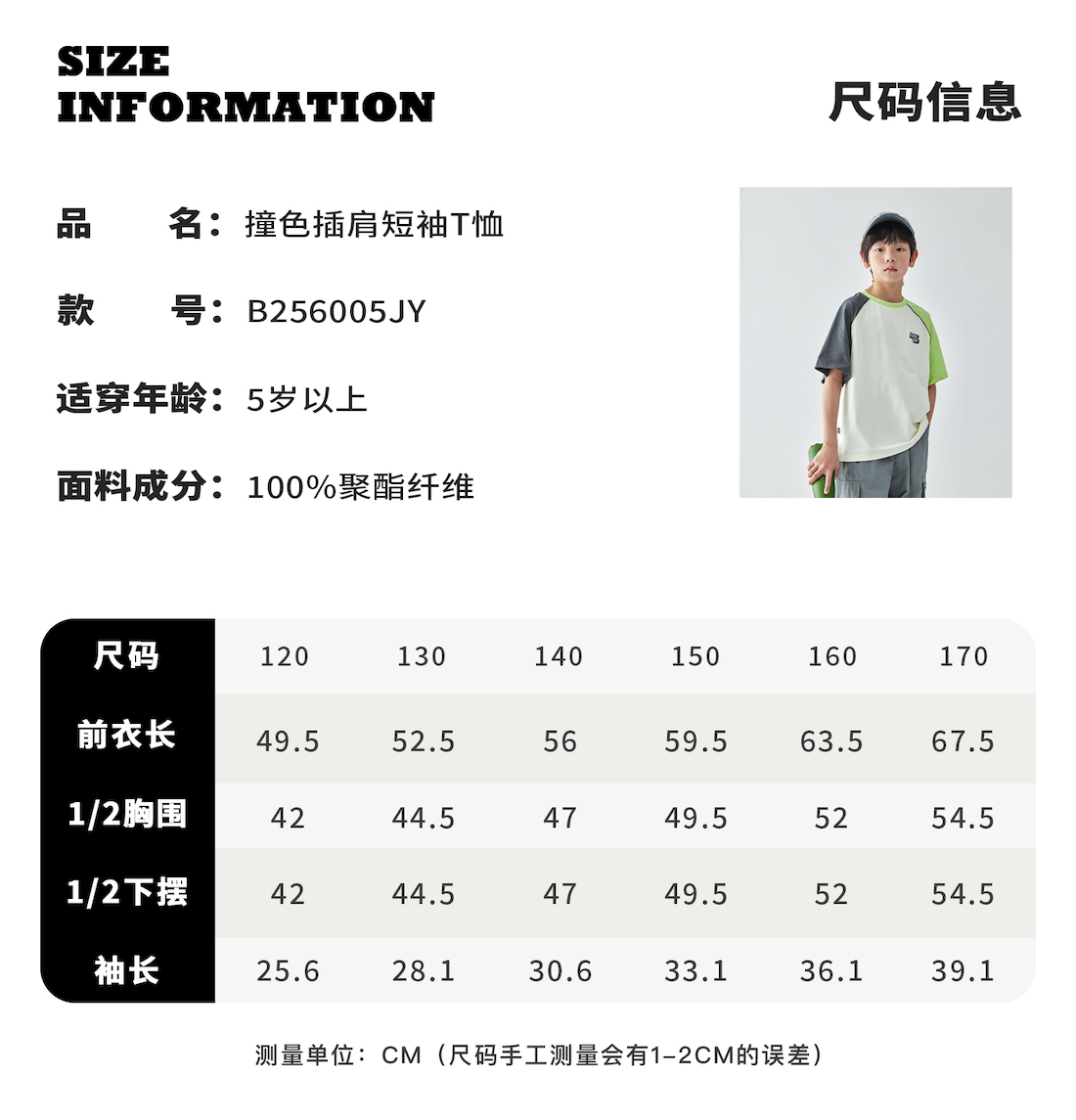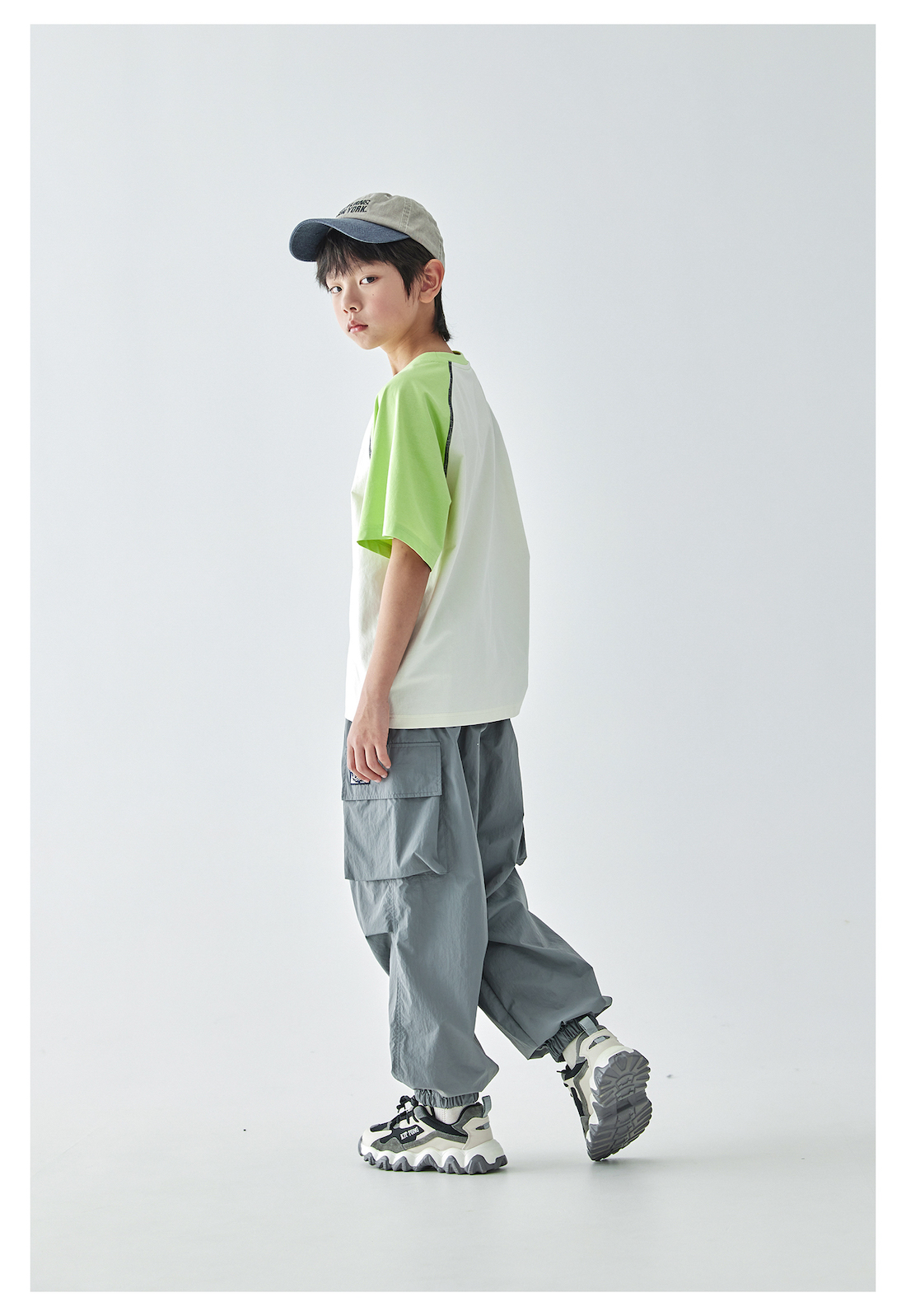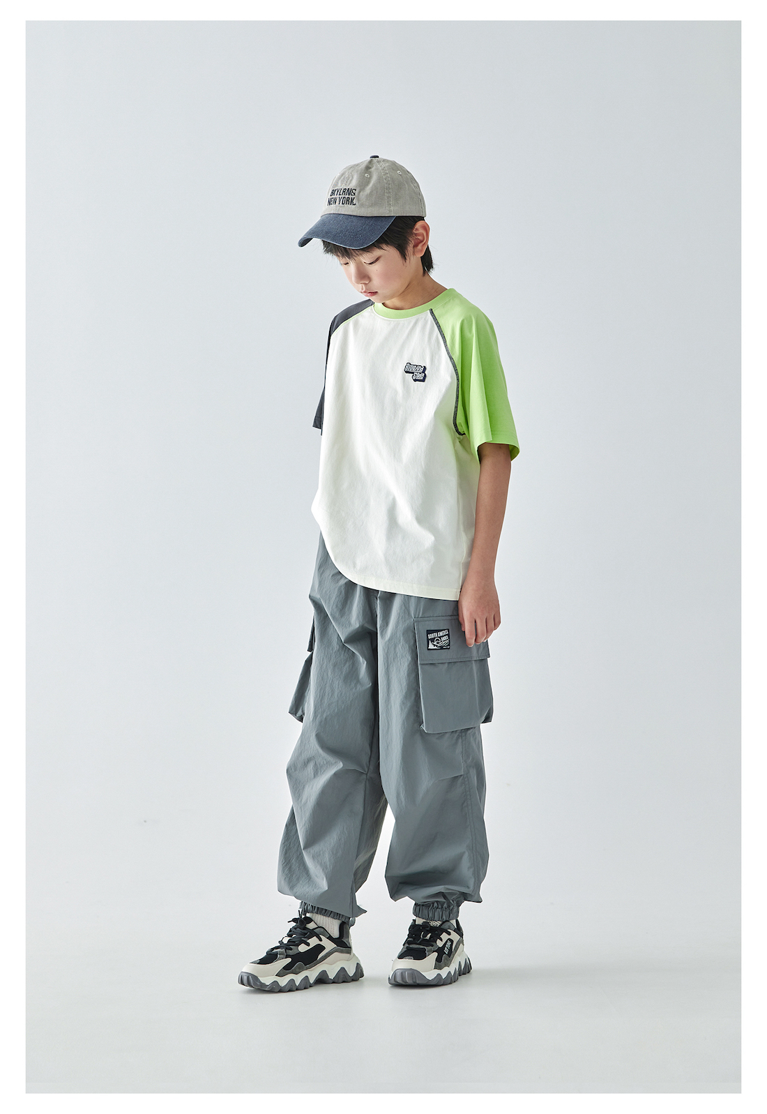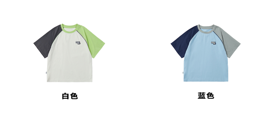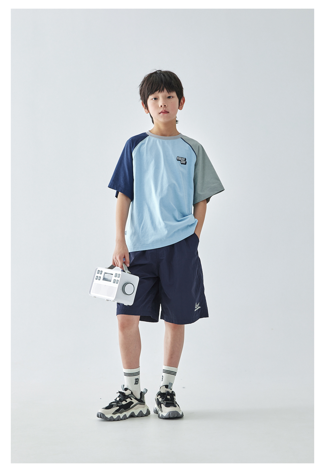 【代发】男童撞色插肩字母短袖T恤 蓝汽水夏款上衣白色/蓝色