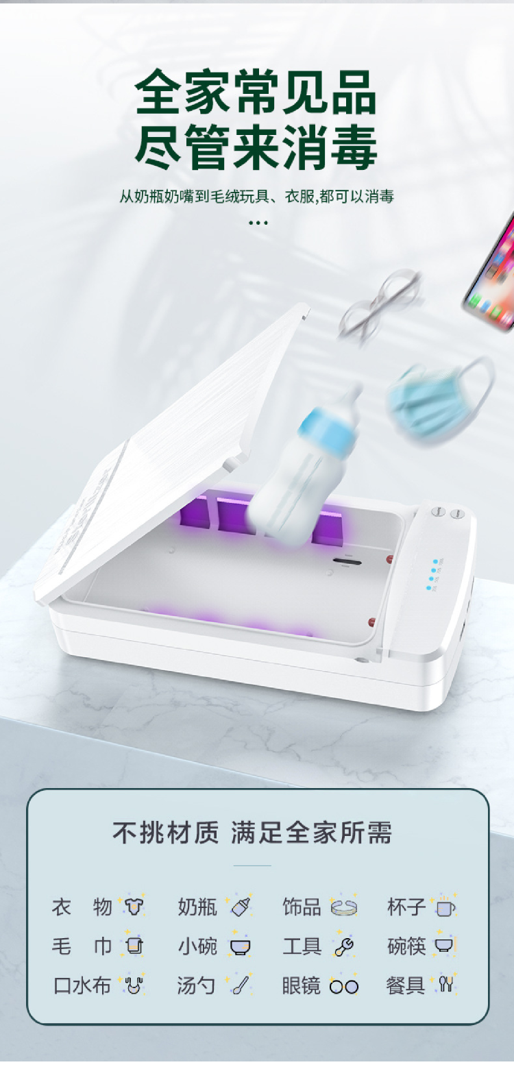 手机消毒器多功能便携移动紫外线消毒杀菌盒UV紫外线消毒盒
