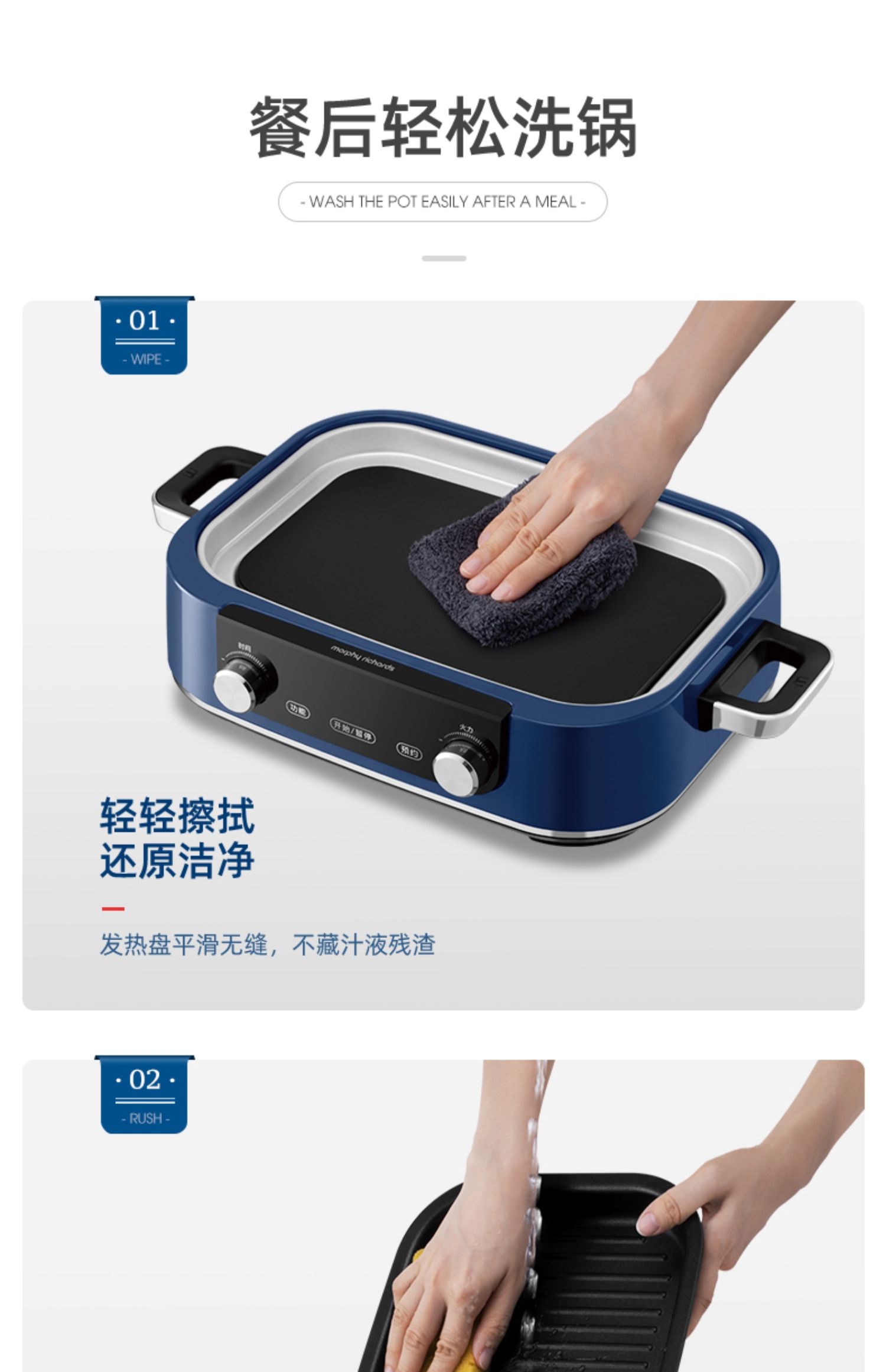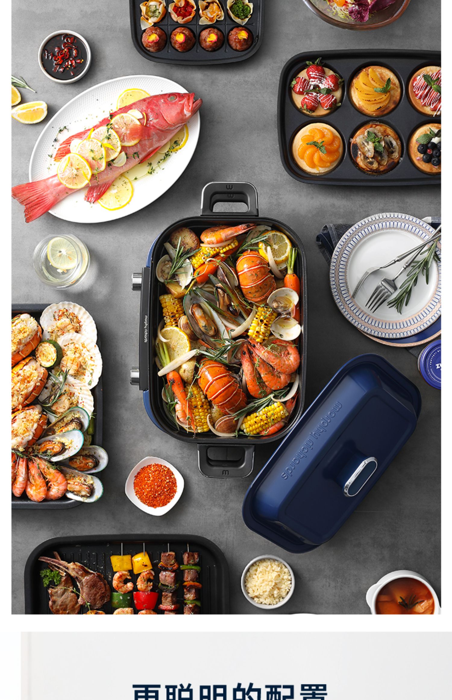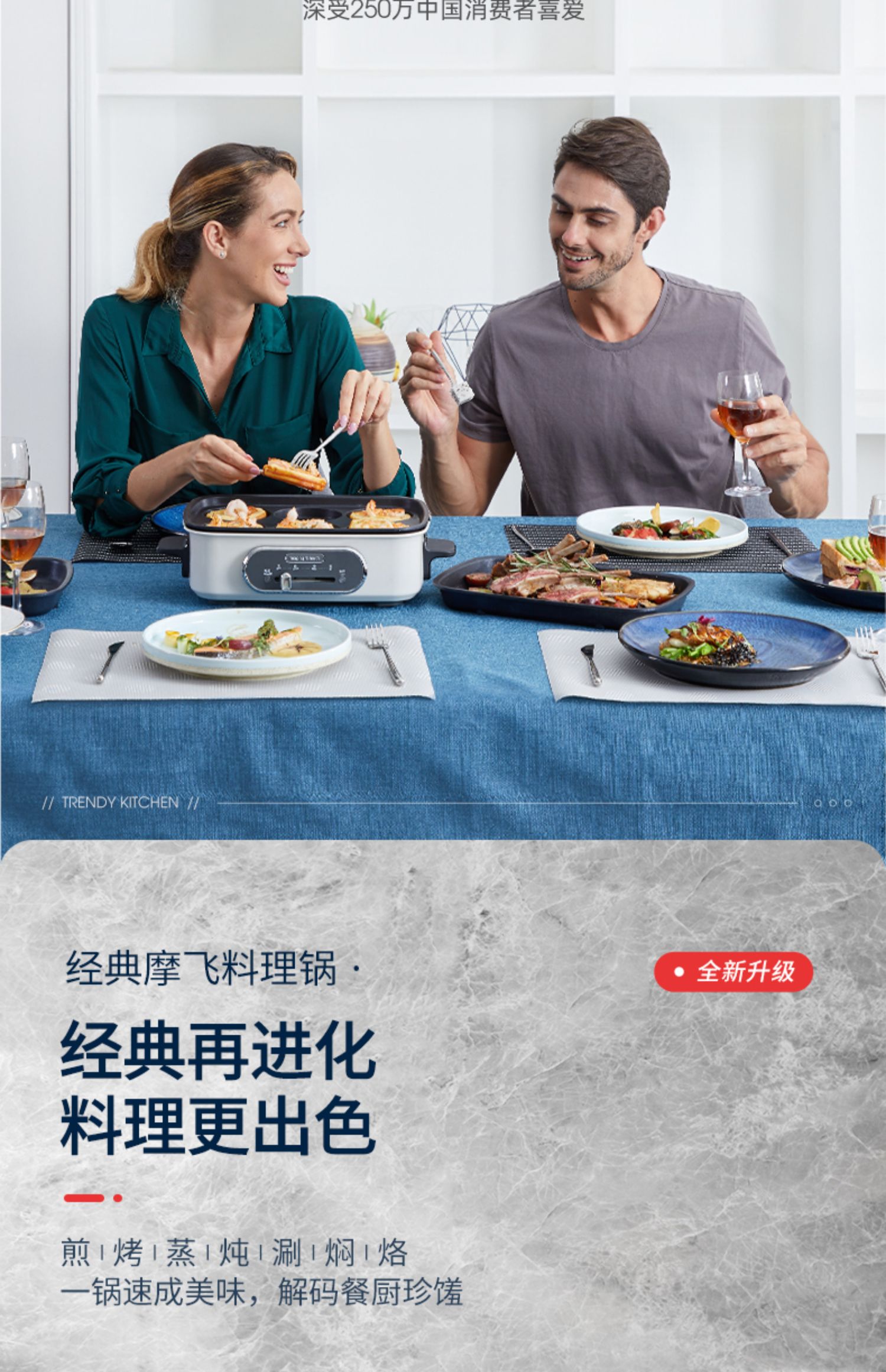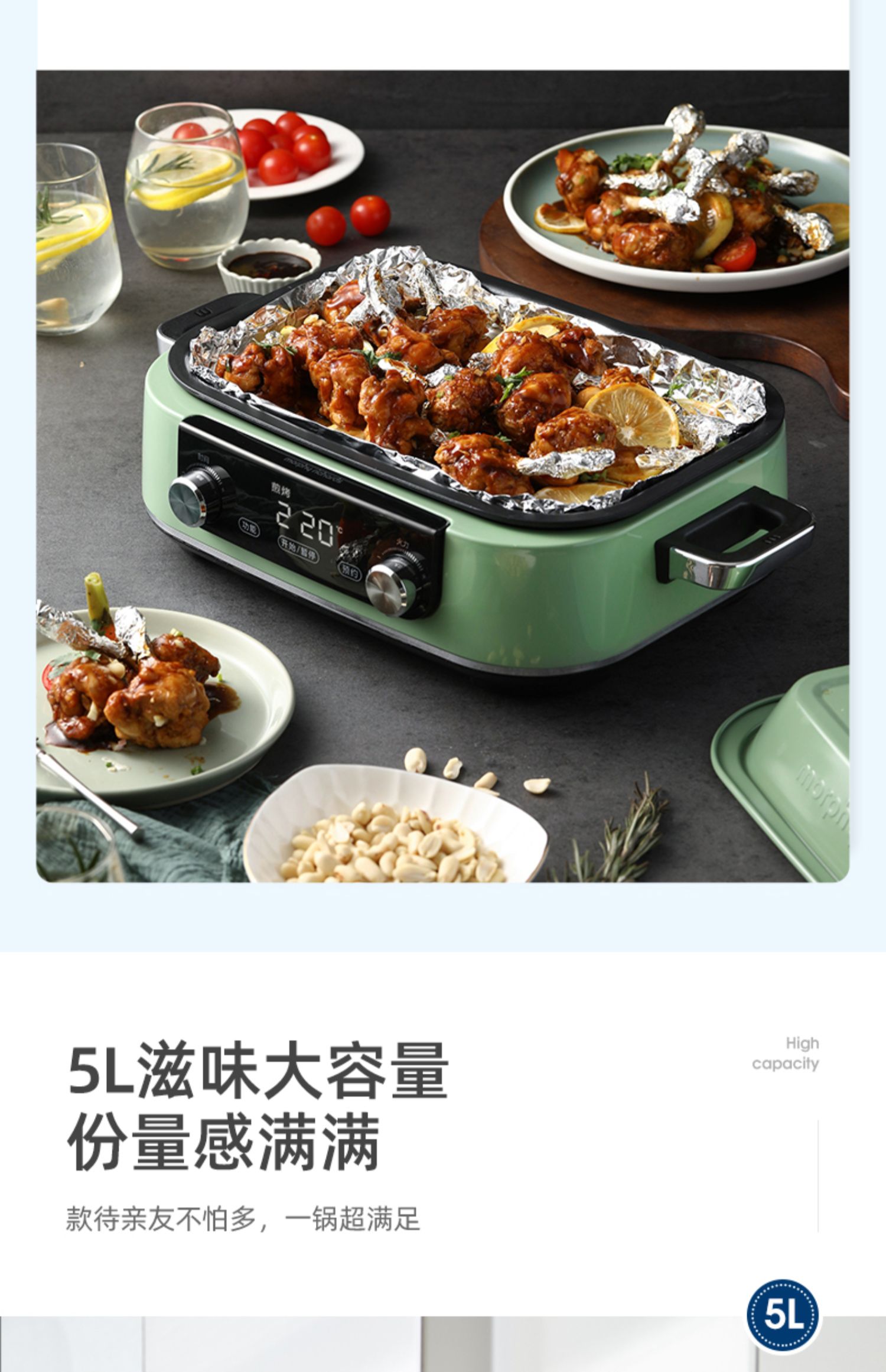 【摩飞二代多功能料理锅MR9099】火锅烤肉涮一体家用蒸煮炒煎电烤锅