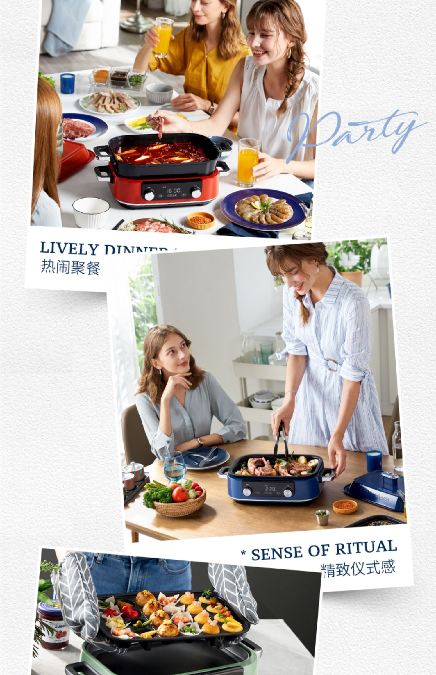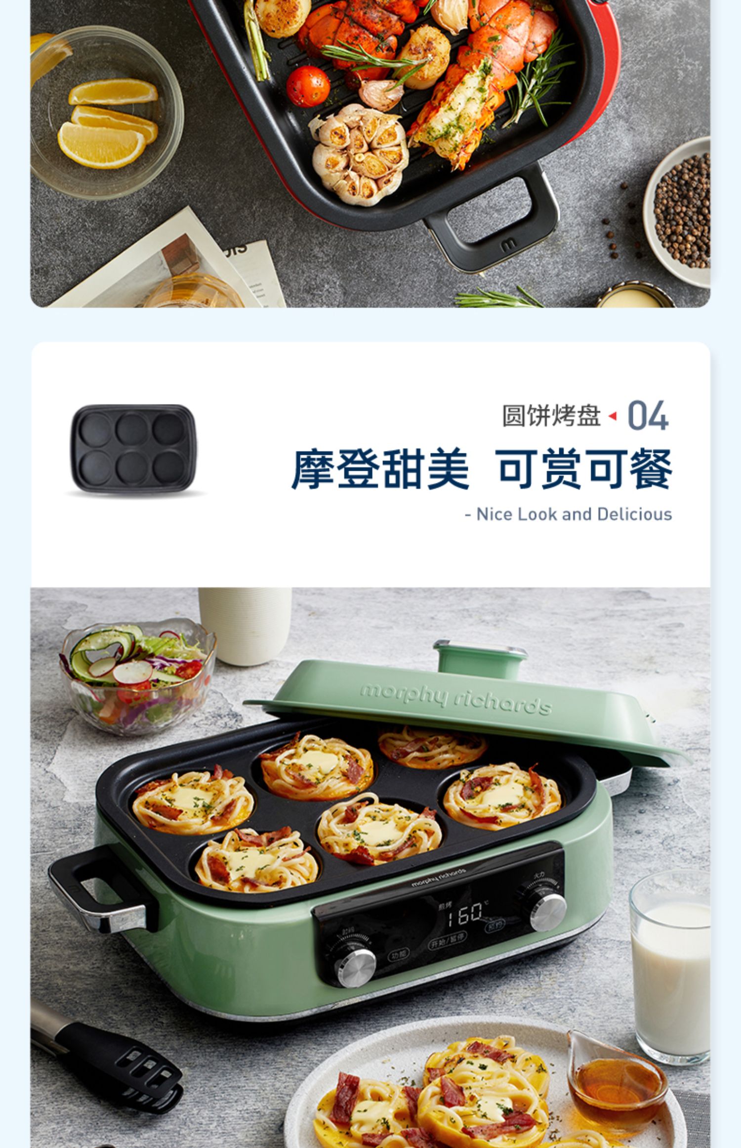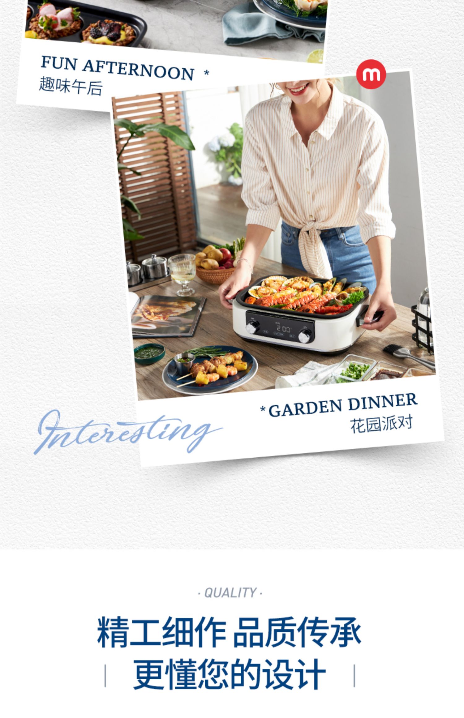 【摩飞二代多功能料理锅MR9099】火锅烤肉涮一体家用蒸煮炒煎电烤锅