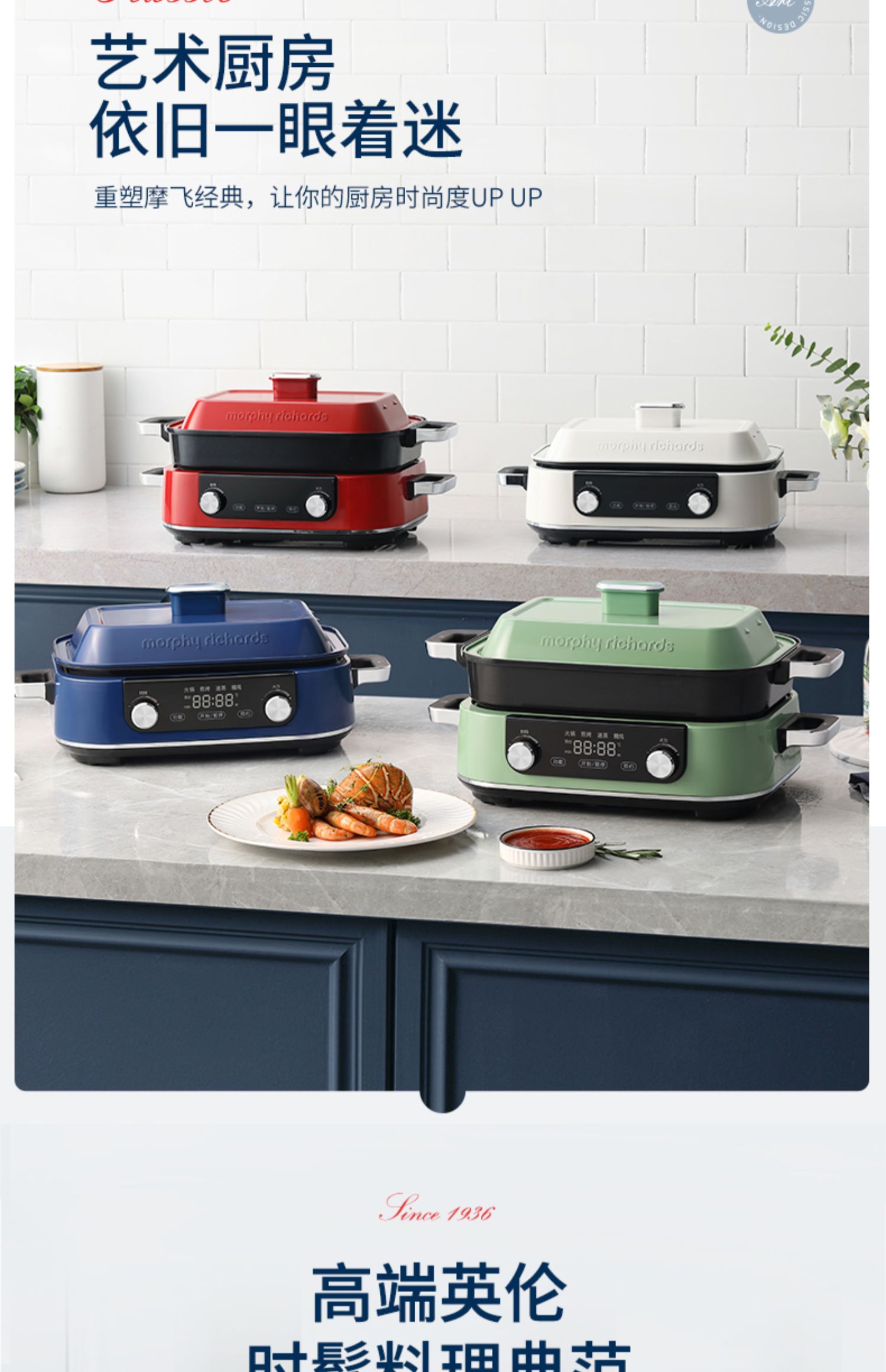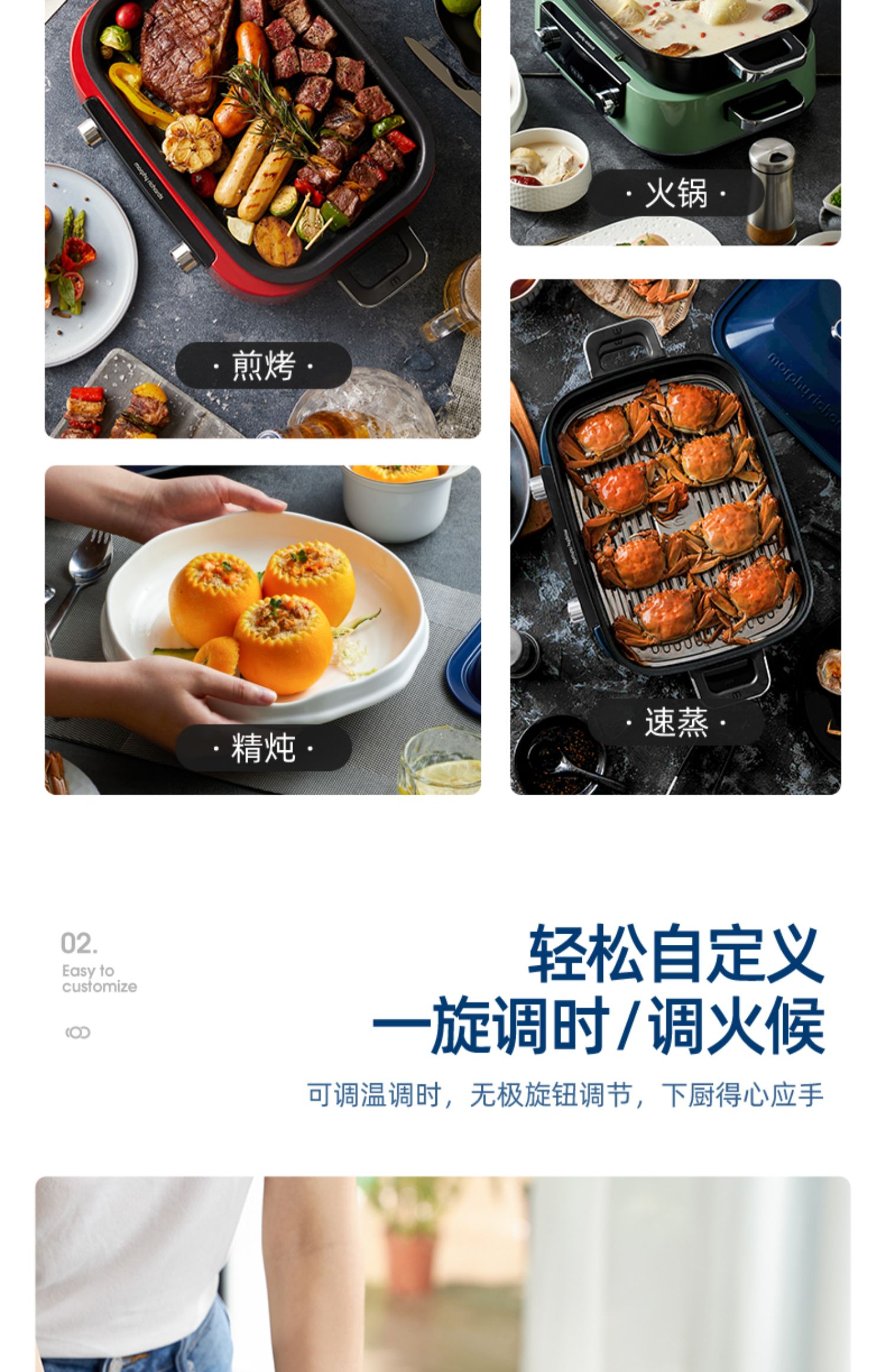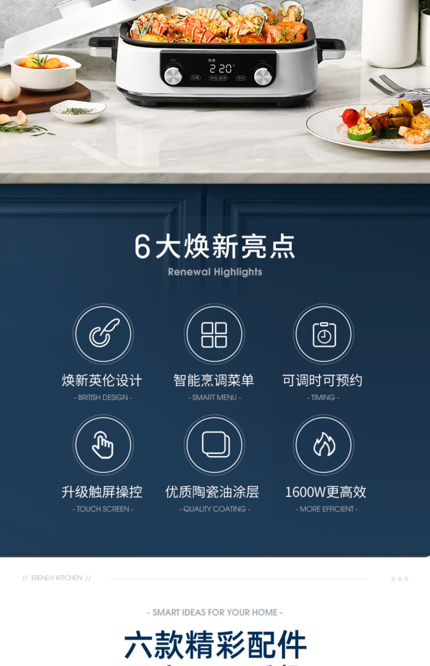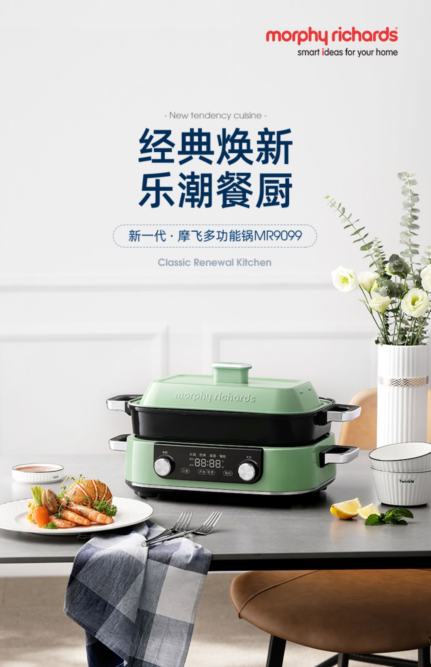 【摩飞二代多功能料理锅MR9099】火锅烤肉涮一体家用蒸煮炒煎电烤锅