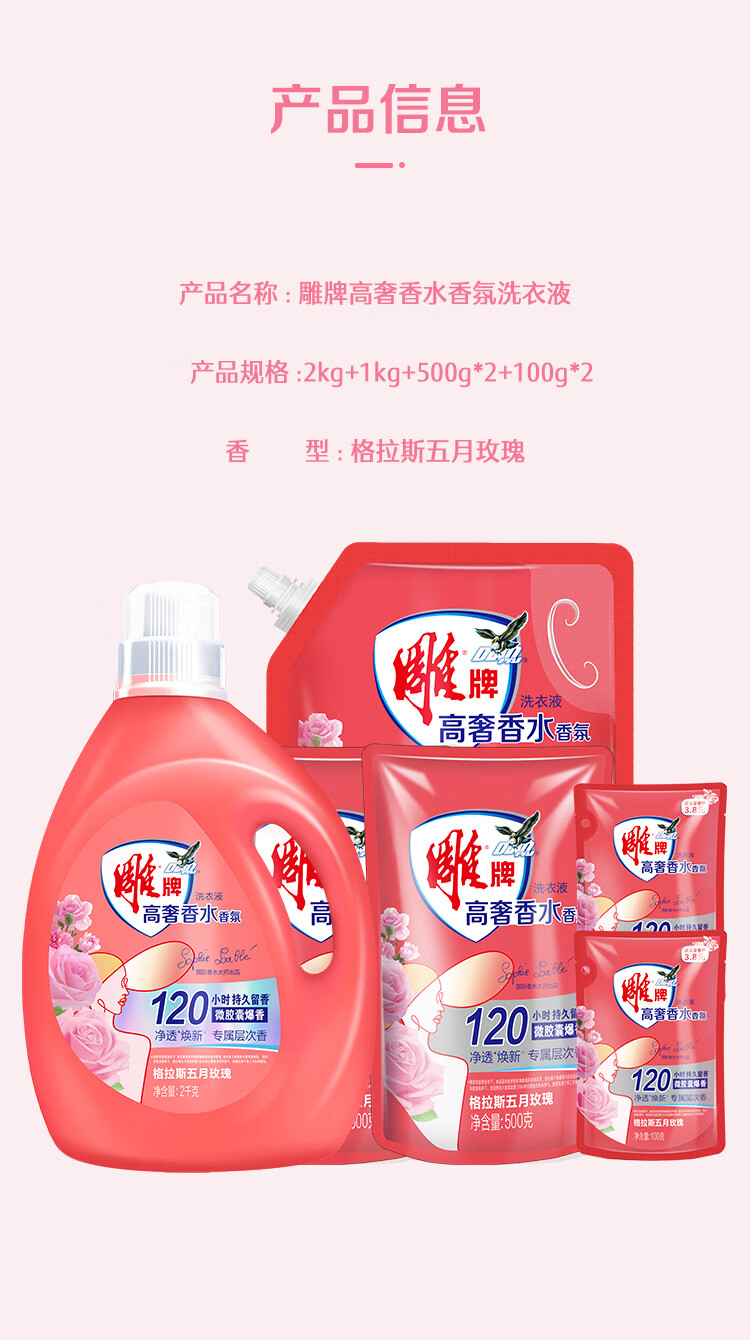 雕牌高奢香水香氛洗衣液(DS) 2kg+1kg+500g*2+100g*2