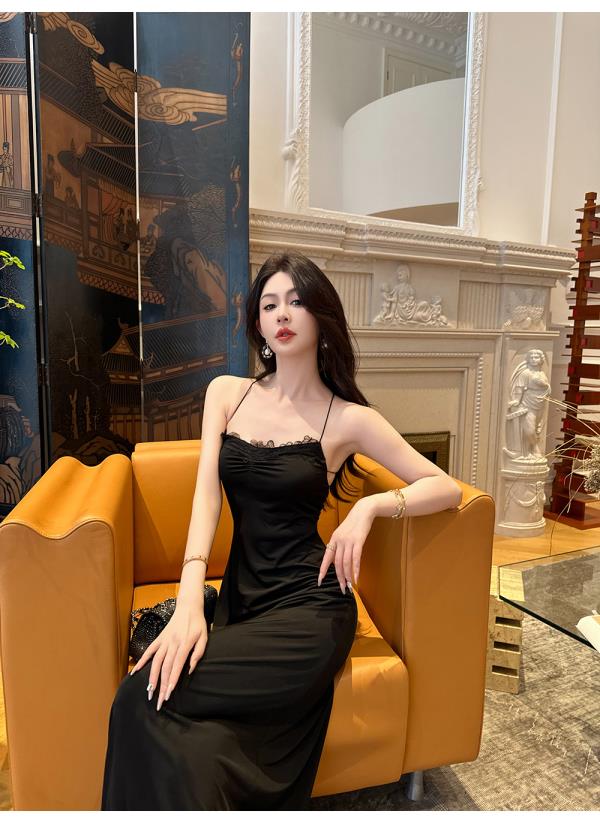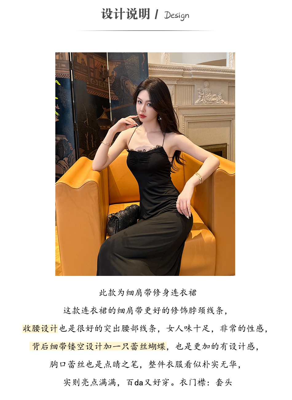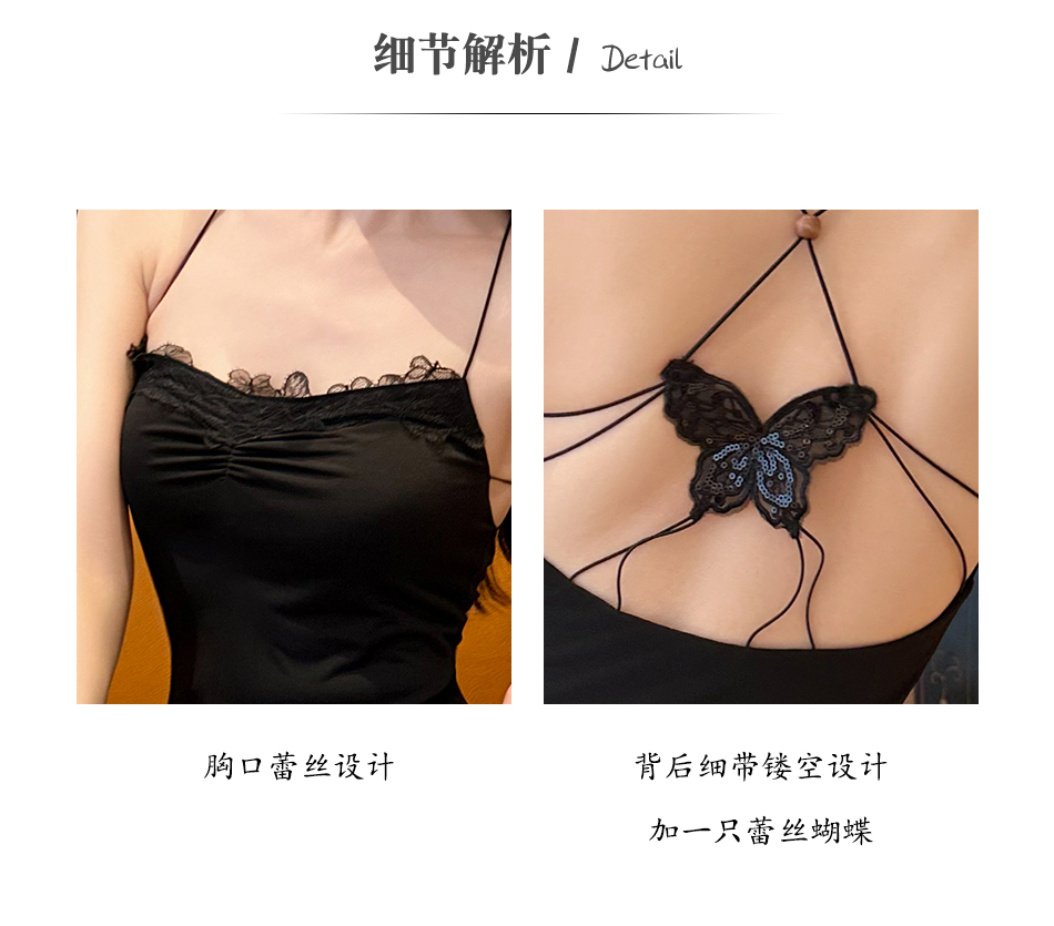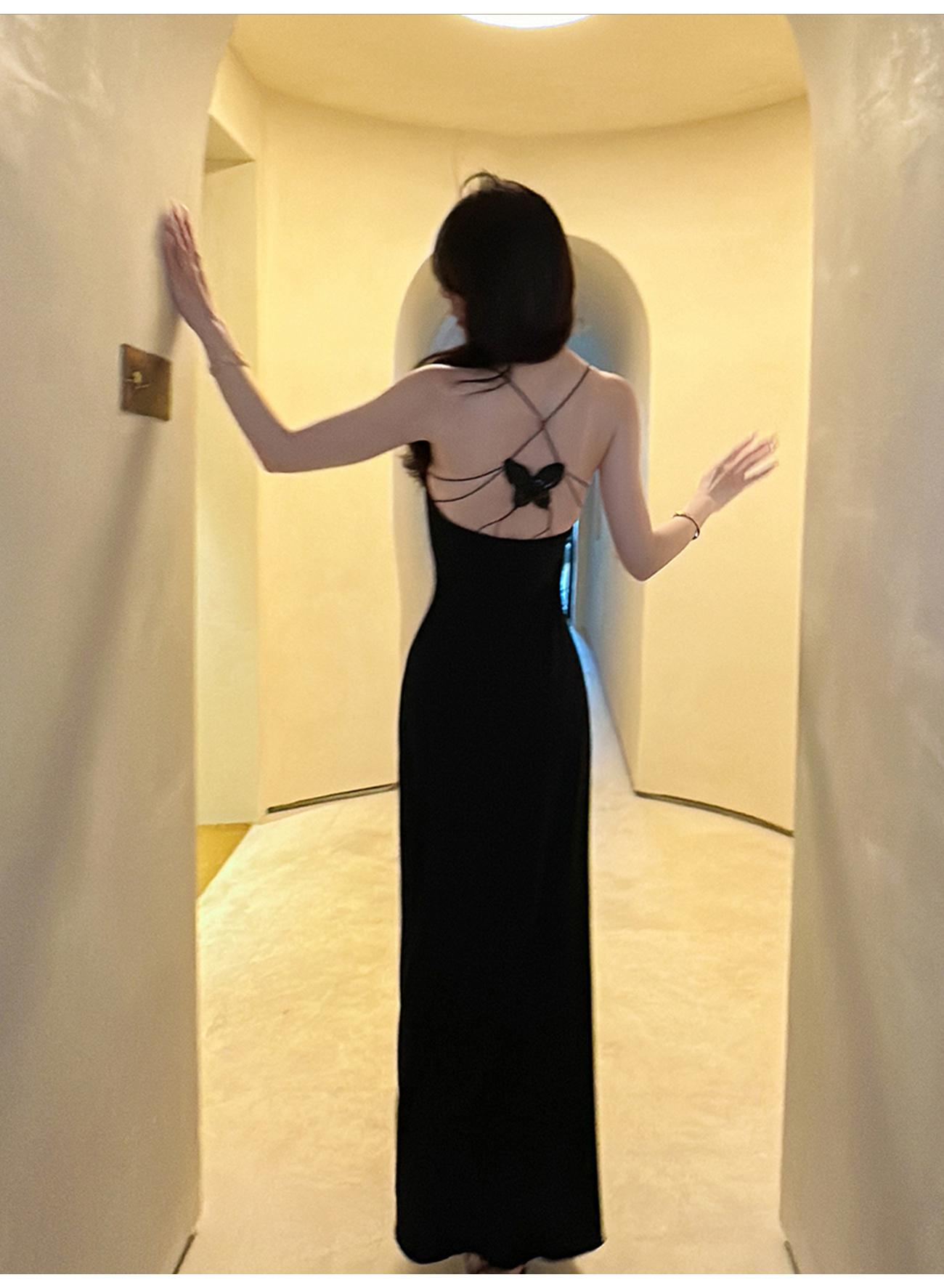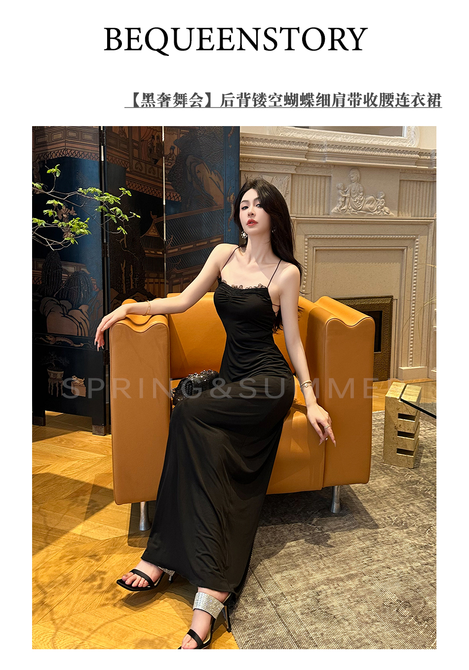 【大货捡漏,不退不换】 【黑奢舞会】轻奢女人味后背镂空蝴蝶细肩带收腰连衣裙