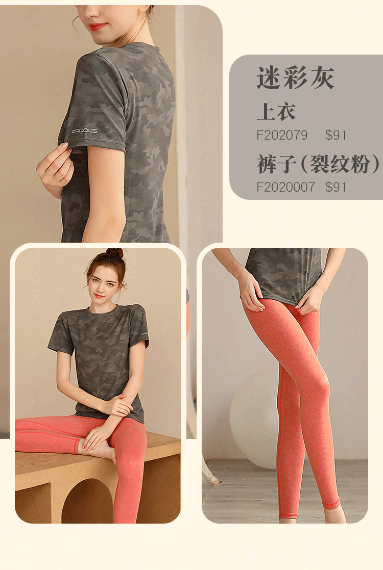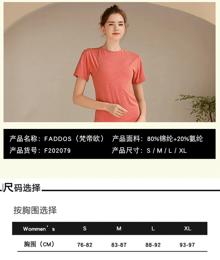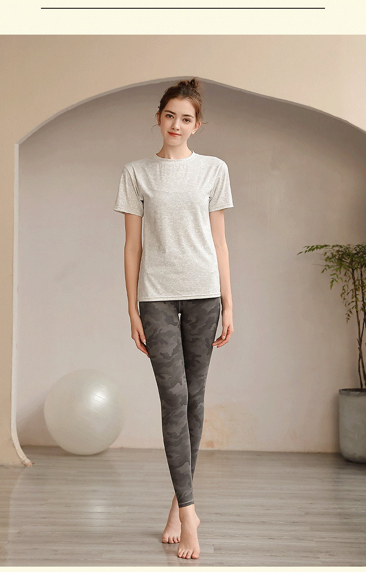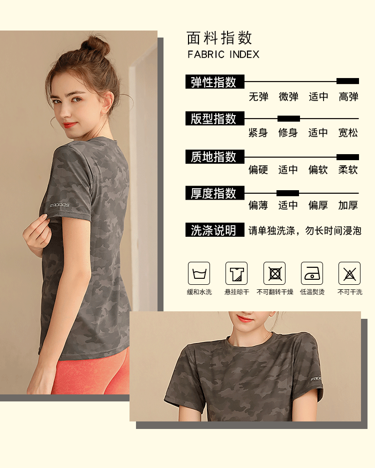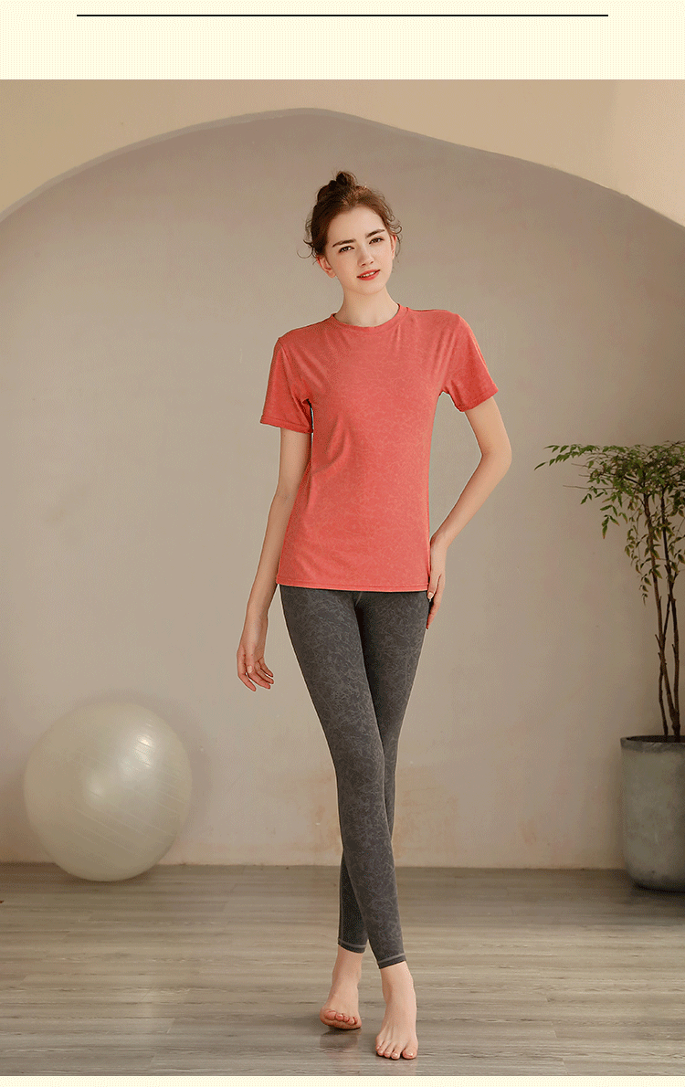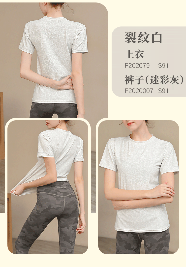 F202079梵蒂欧瑜伽T恤双磨面料印花工艺(无胸垫)