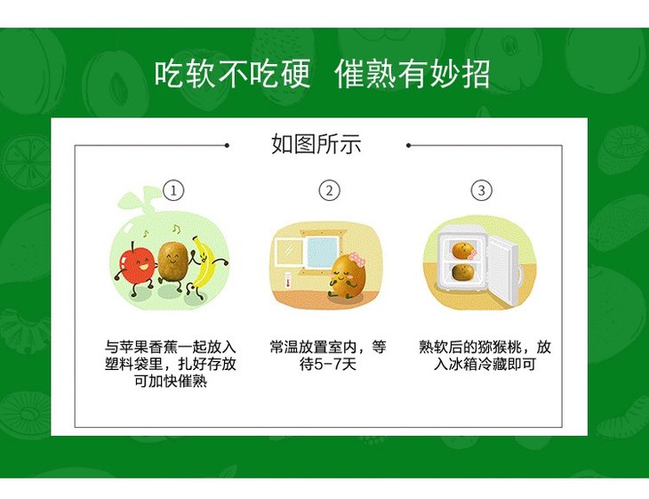 猕猴桃到货需常温放软后食用,果子软了才可以冷藏保存哦
