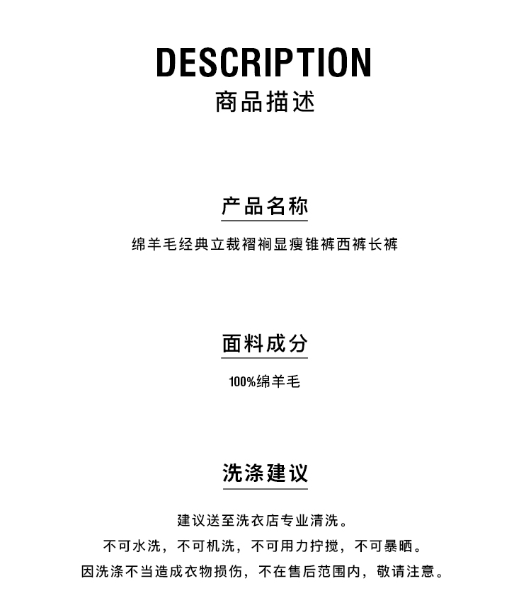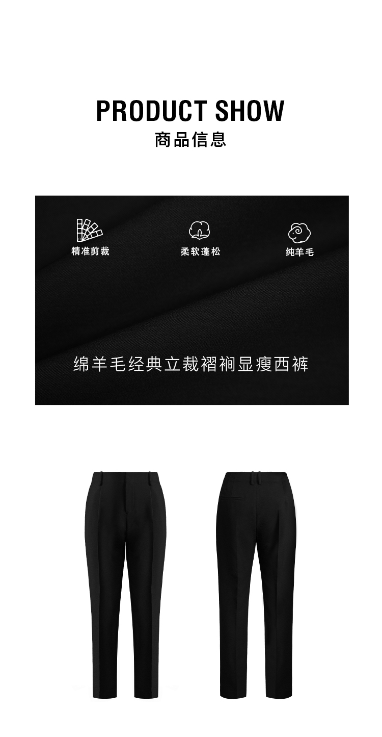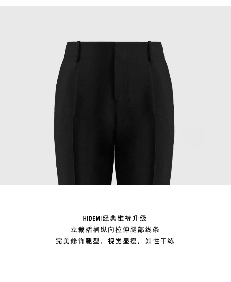 HIDEMI 绵羊毛经典立裁褶裥显瘦锥裤西裤长裤
