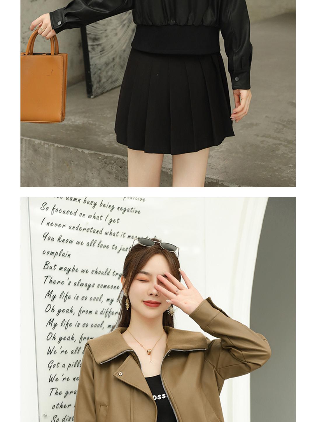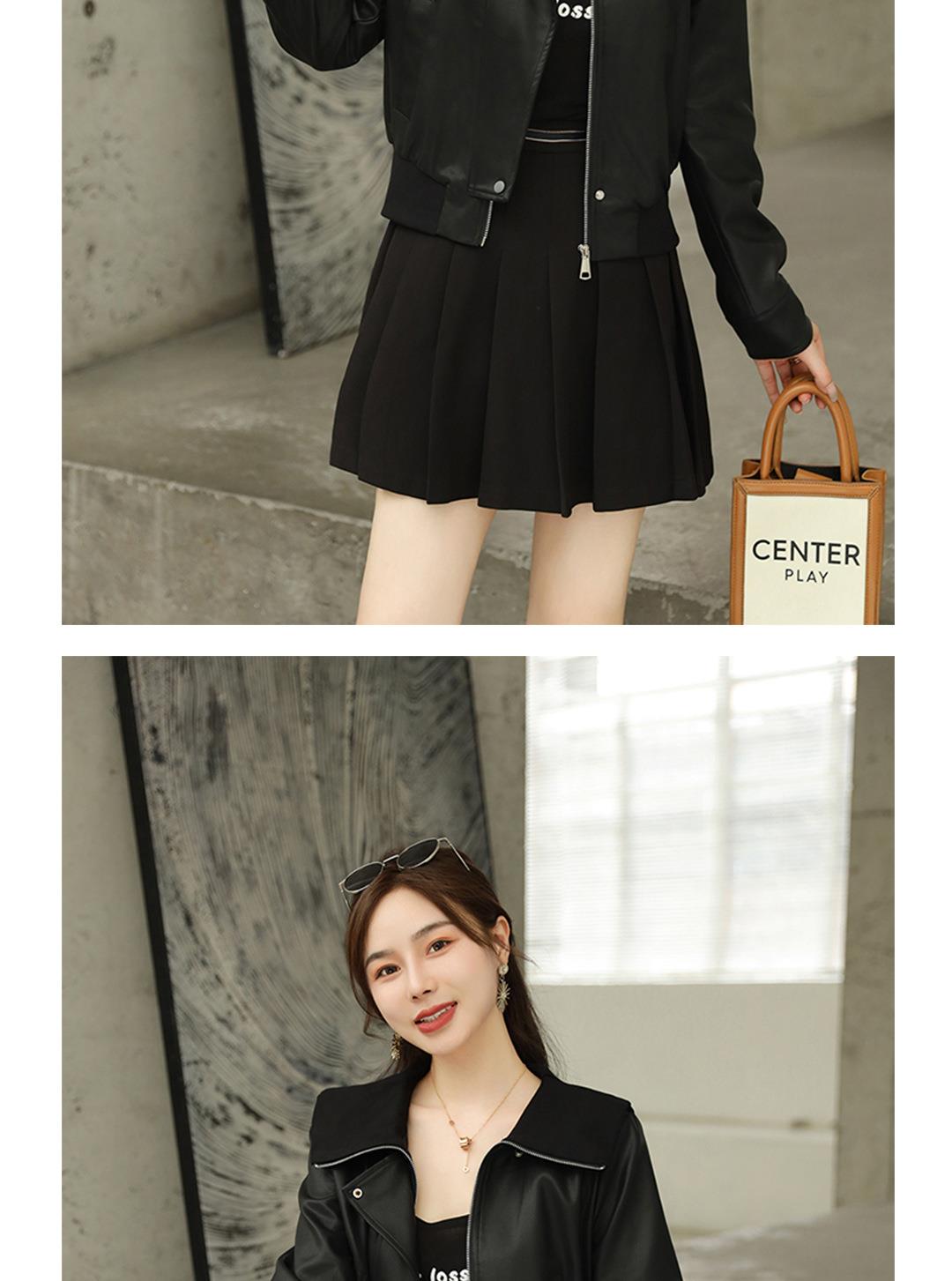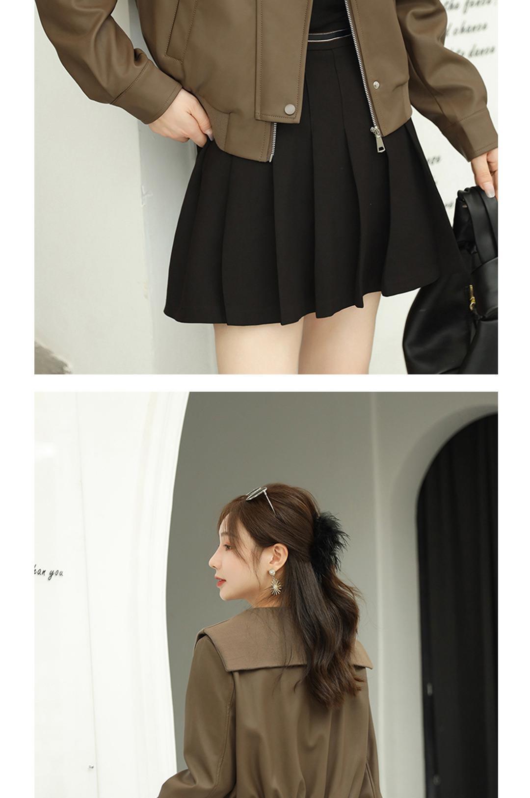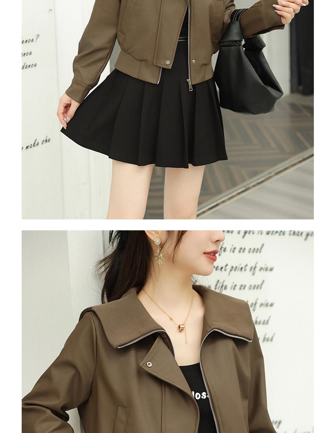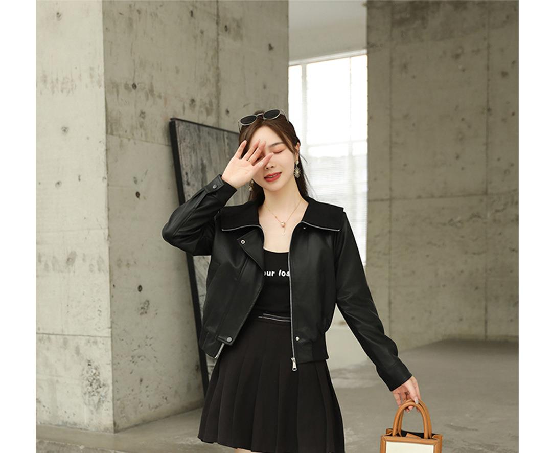 2023秋季新款短款皮衣外套女韩版螺纹领宽松水洗PU皮夹克