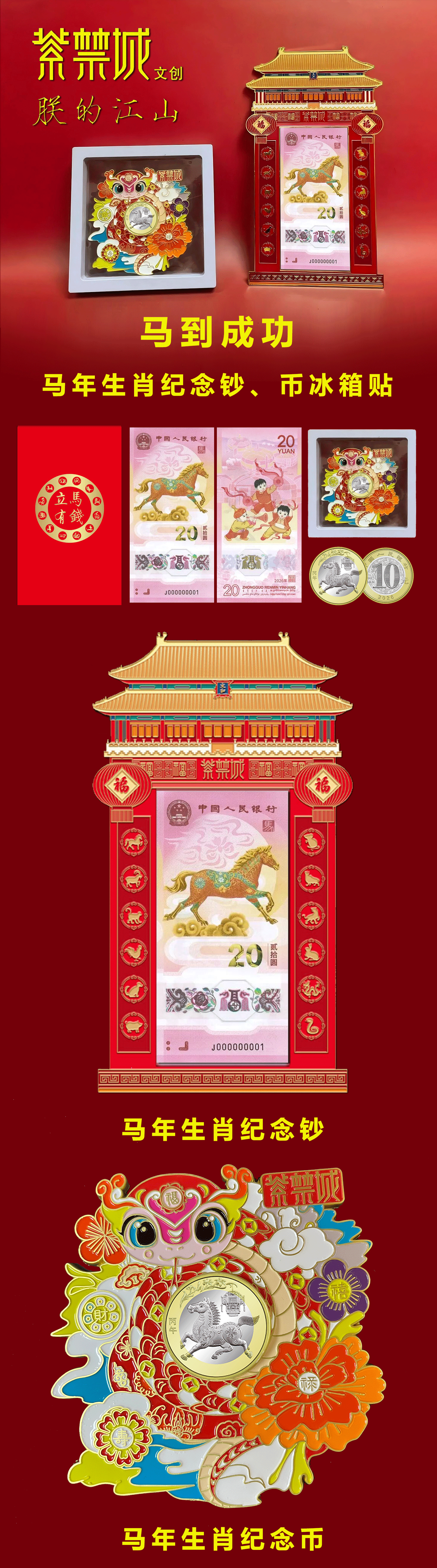 热卖中!!【春节不打烊】【紫禁城文创出品】2026马到成功马钞马币冰箱贴