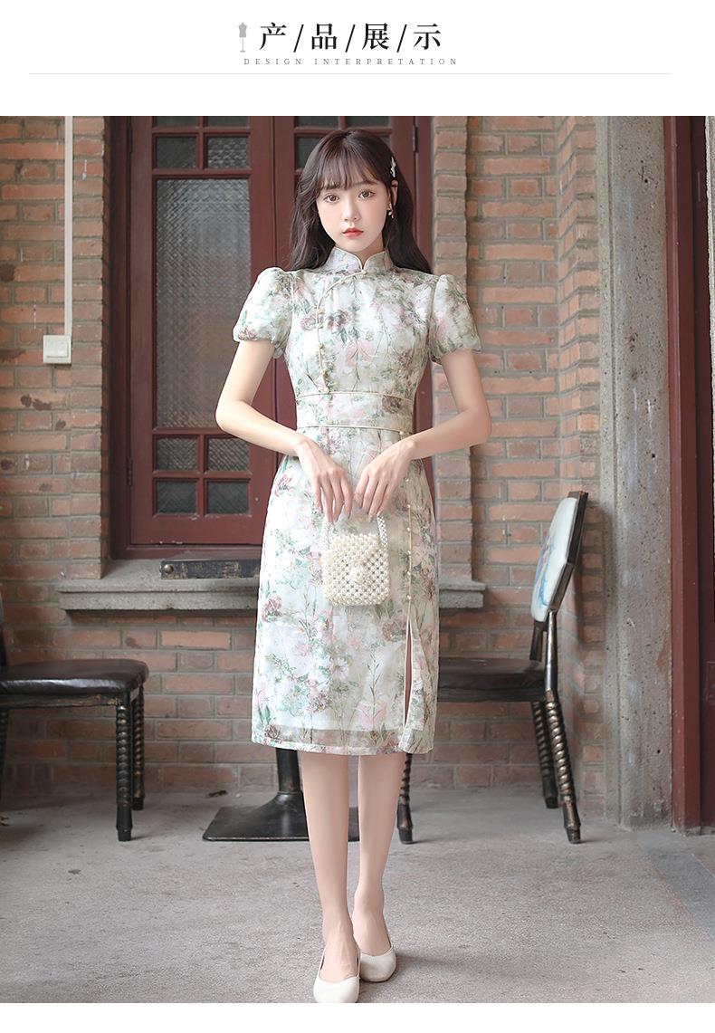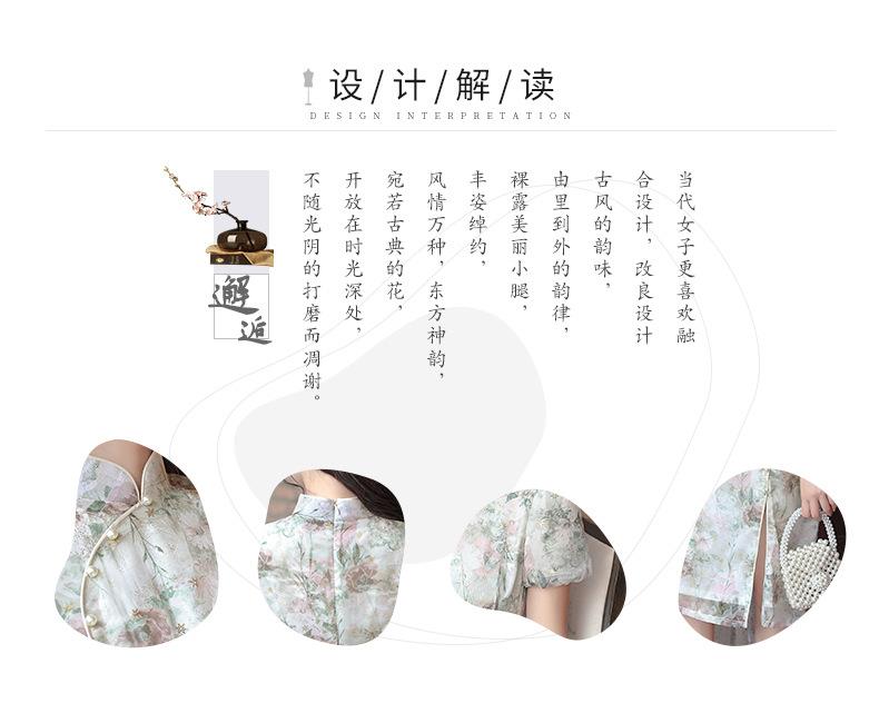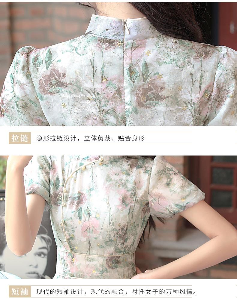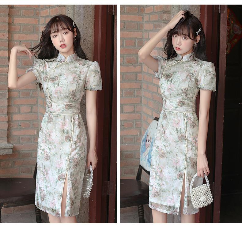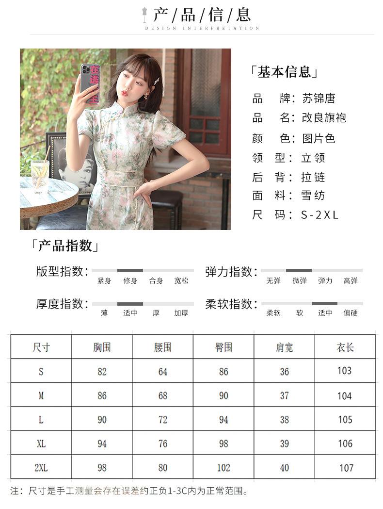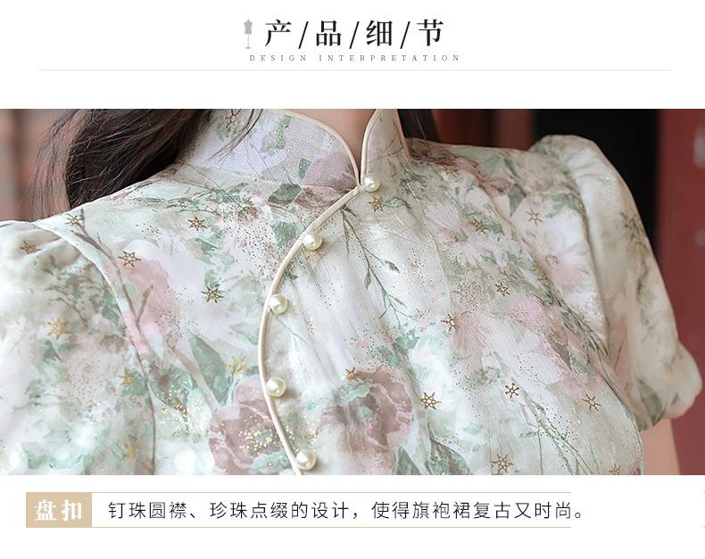 夏季新款雪纺旗袍少女款显瘦旗袍连衣裙改良立领修身旗袍裙