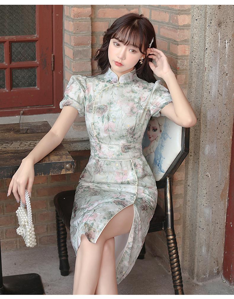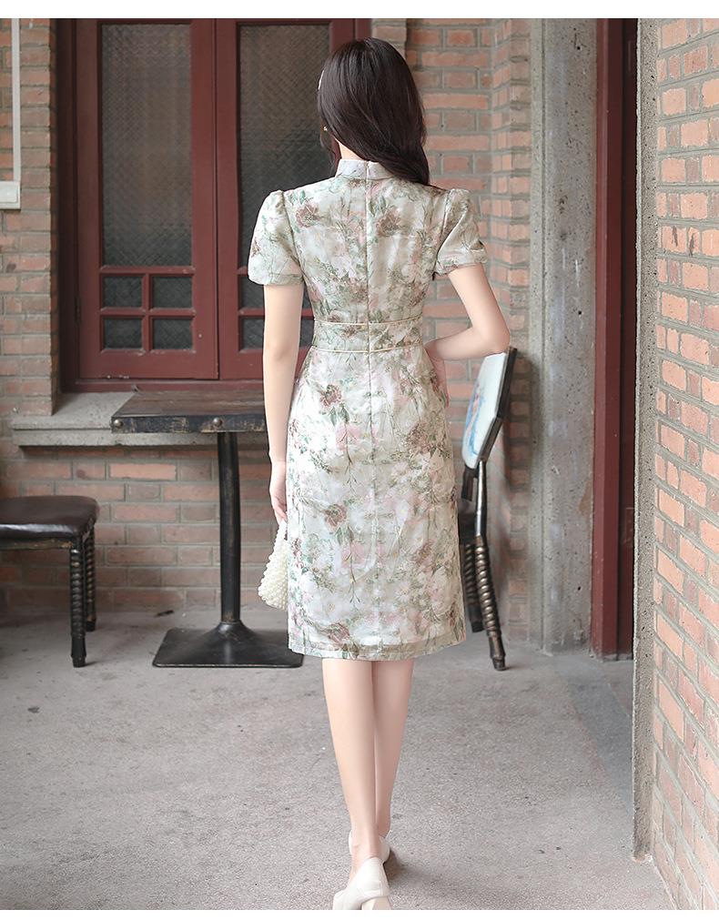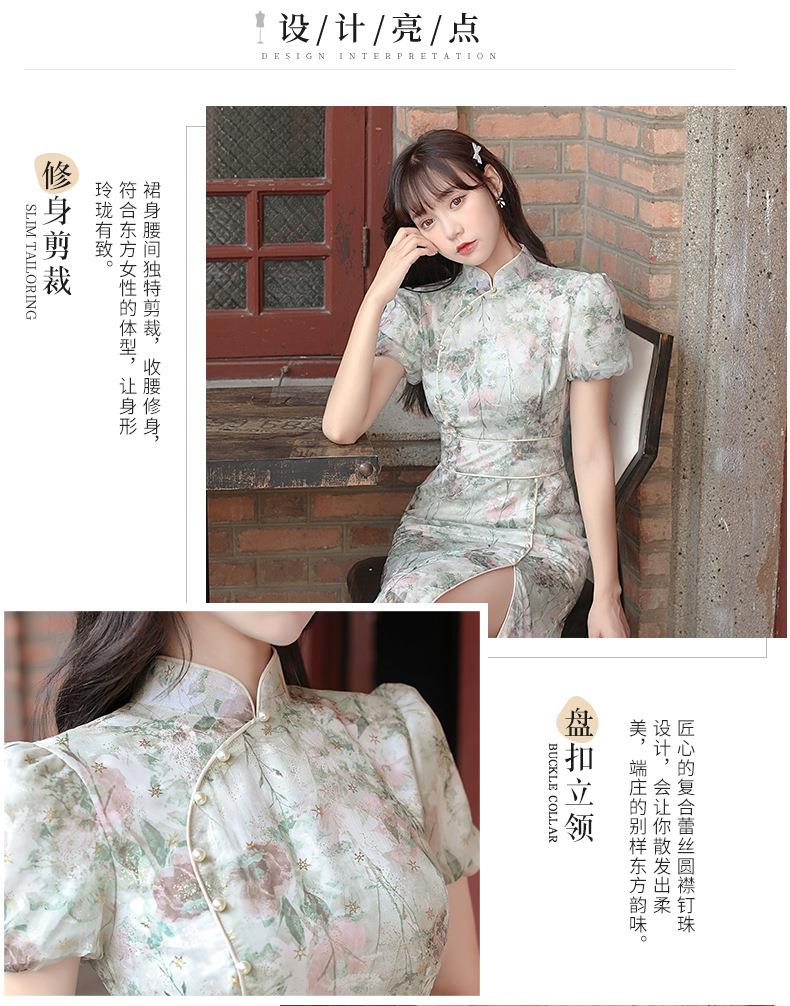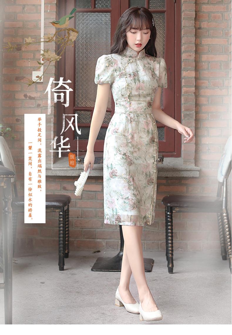 夏季新款雪纺旗袍少女款显瘦旗袍连衣裙改良立领修身旗袍裙