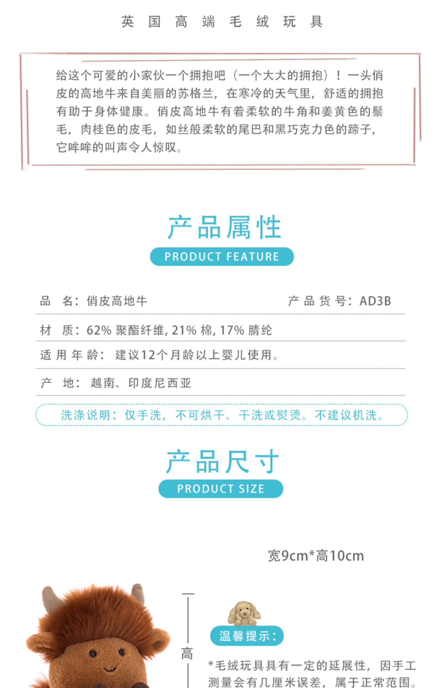 Jellycat 俏皮高地牛 10cm
