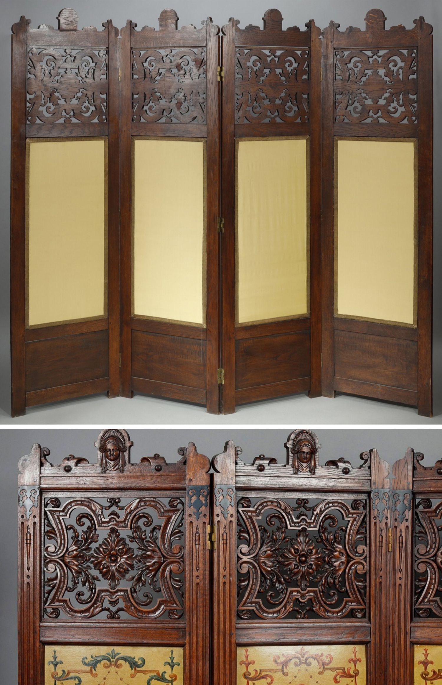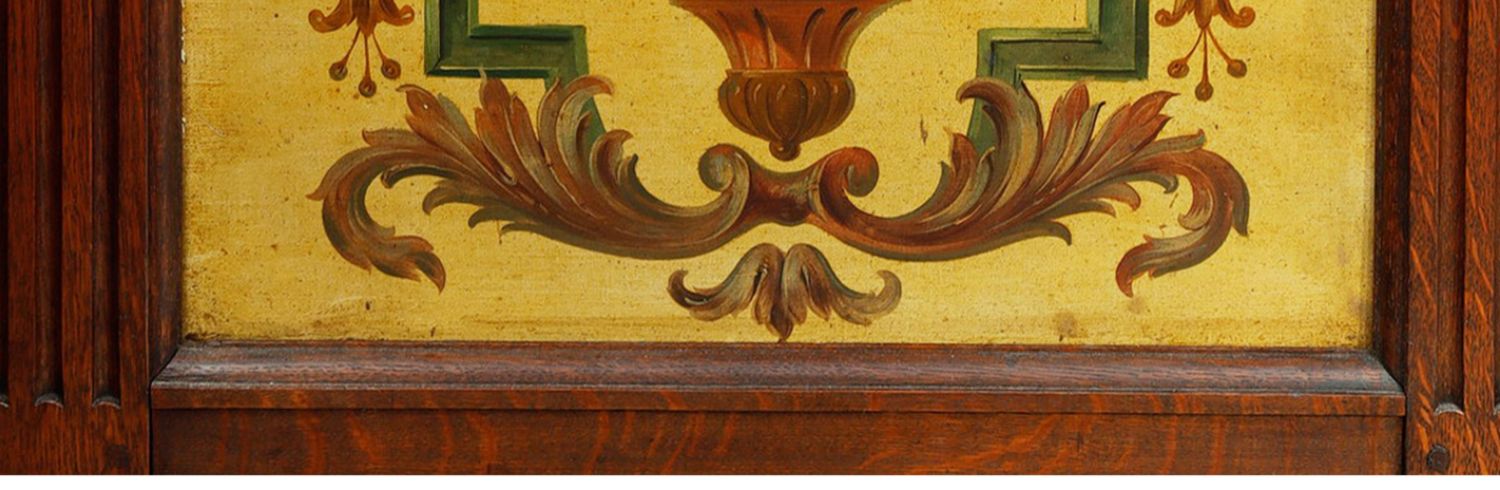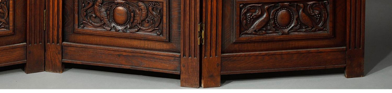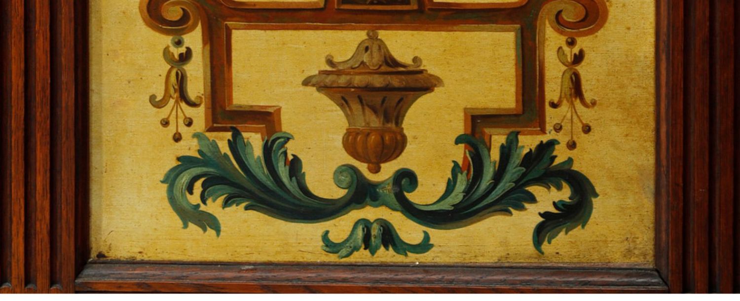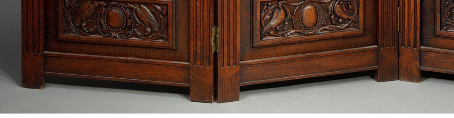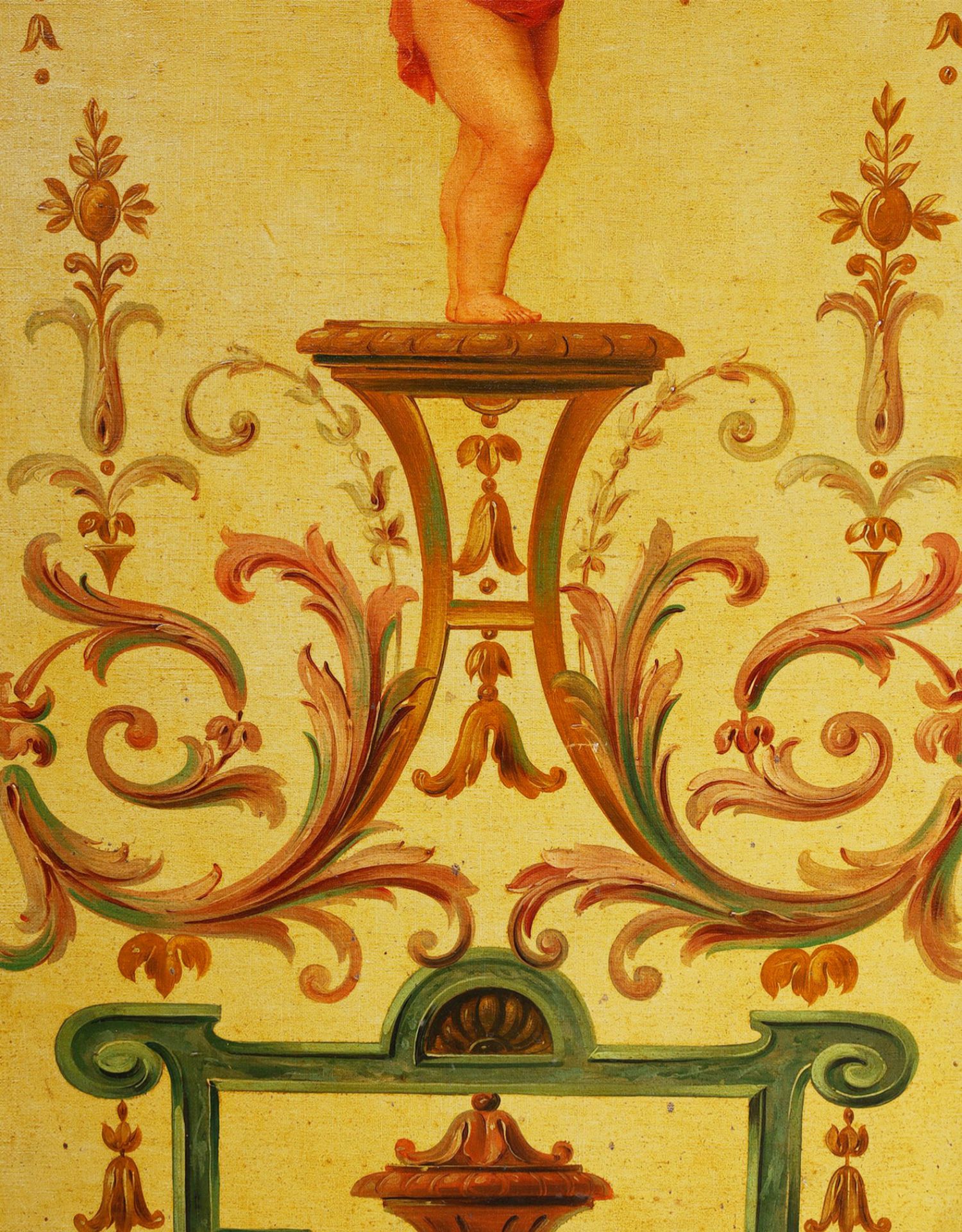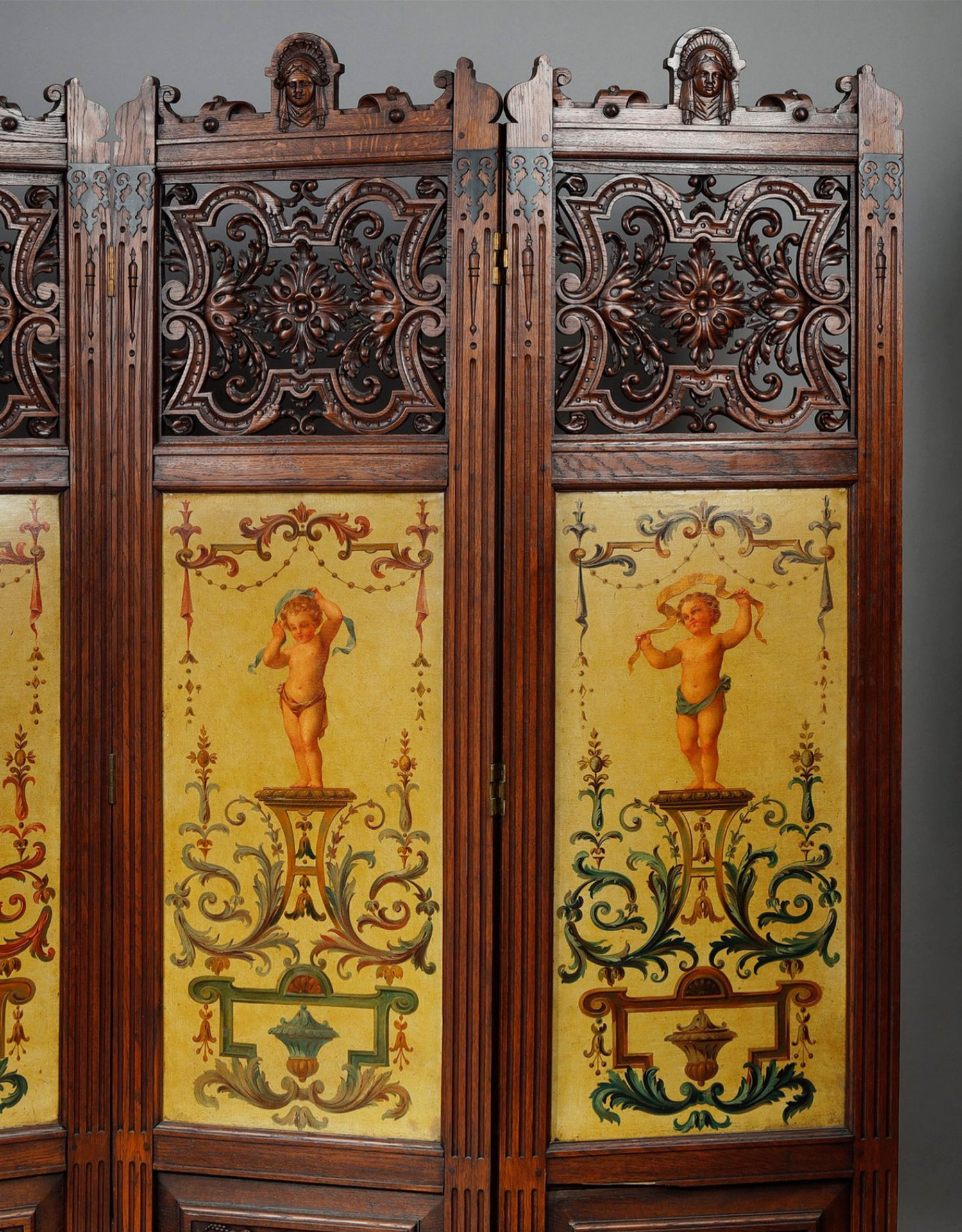 独角鹿西洋古董法国木质雕花边框小天使主题布面手绘四页插屏屏风