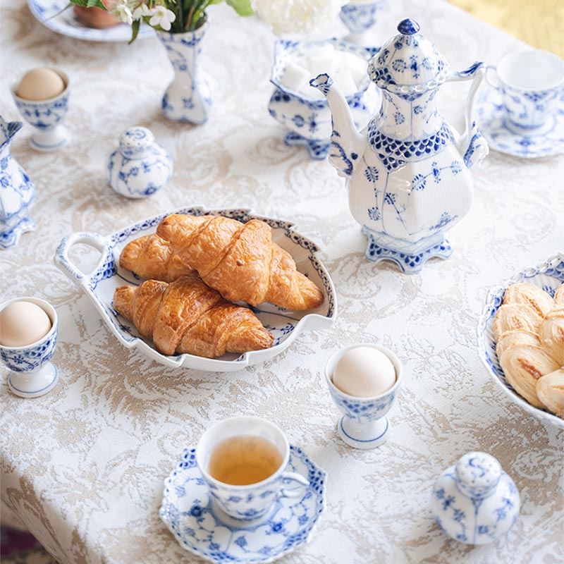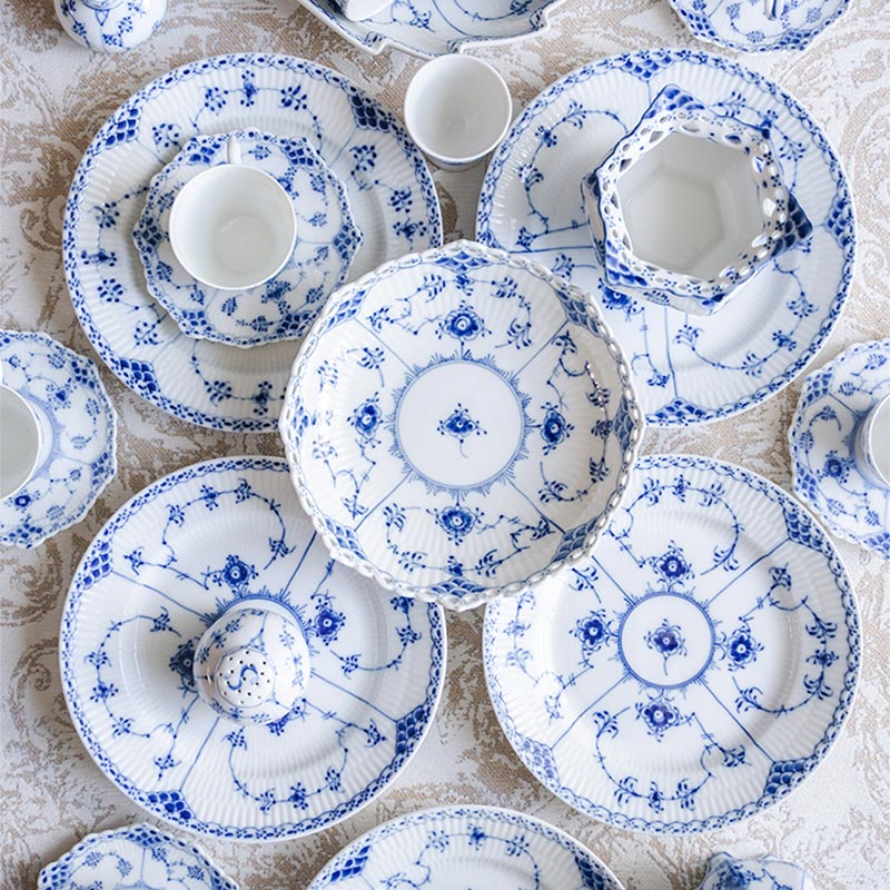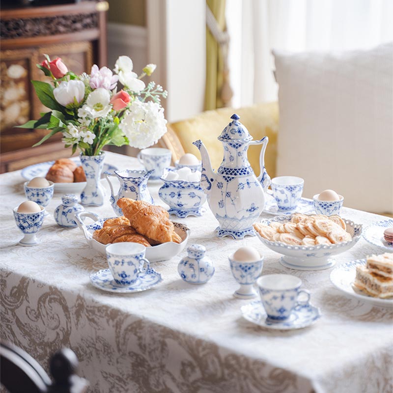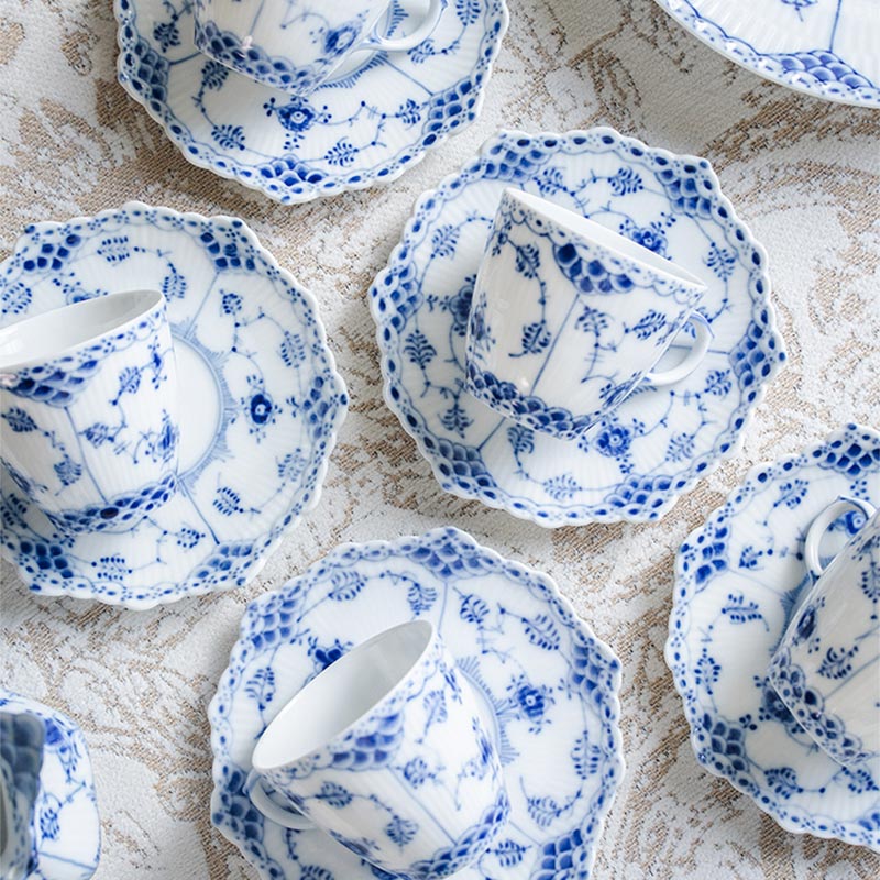 20世纪丹麦皇家哥本哈根瓷窑出品“蕾丝唐草”系列手绘植物主题茶具餐盘套件