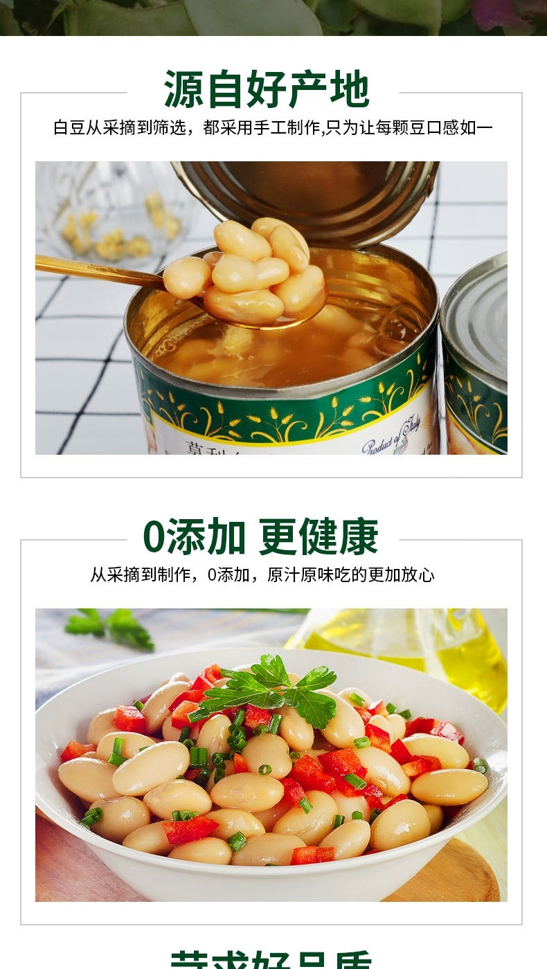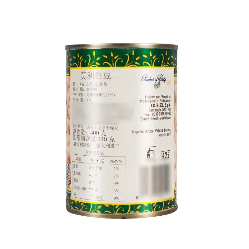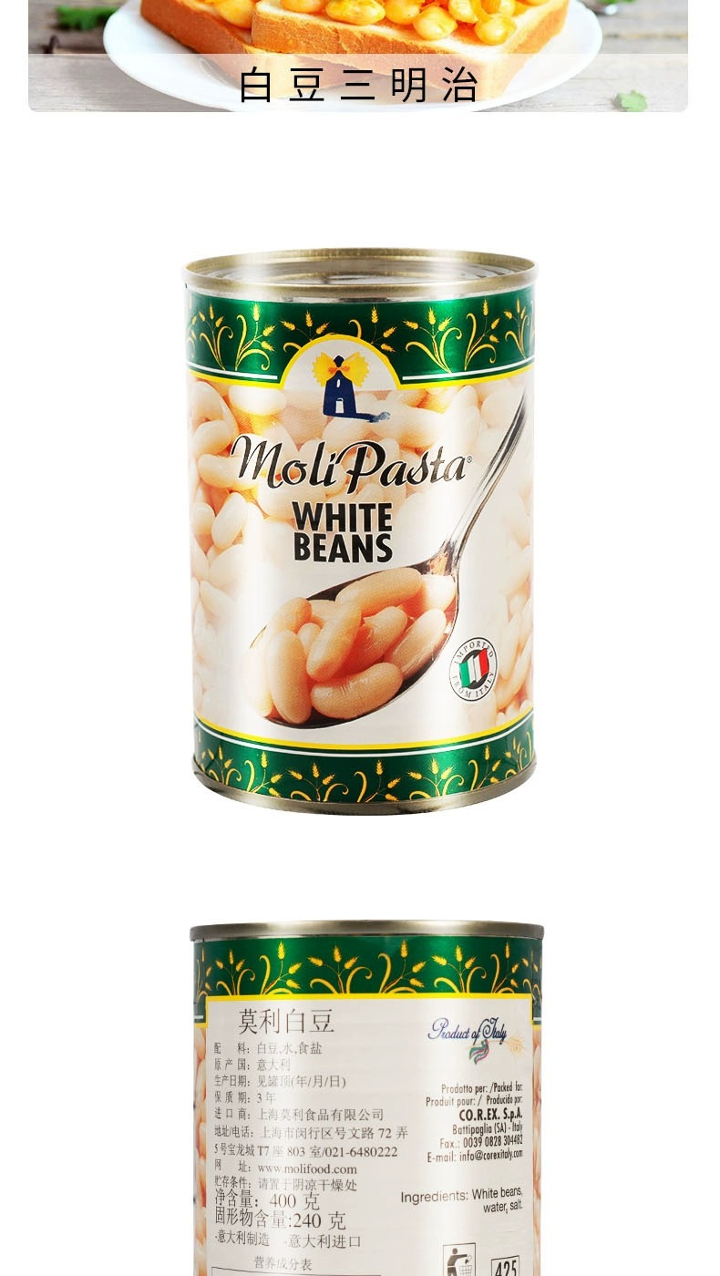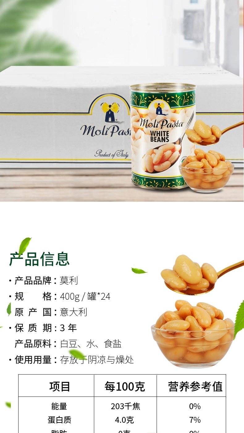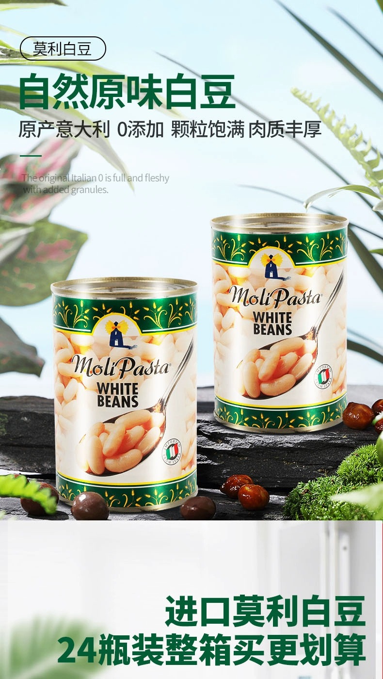 【中欧班列精选5罐】 意大利莫利白豆罐头 原装进口莫利早餐即食扁豆熟芸豆沙拉西餐白豆罐头 400g/5罐
