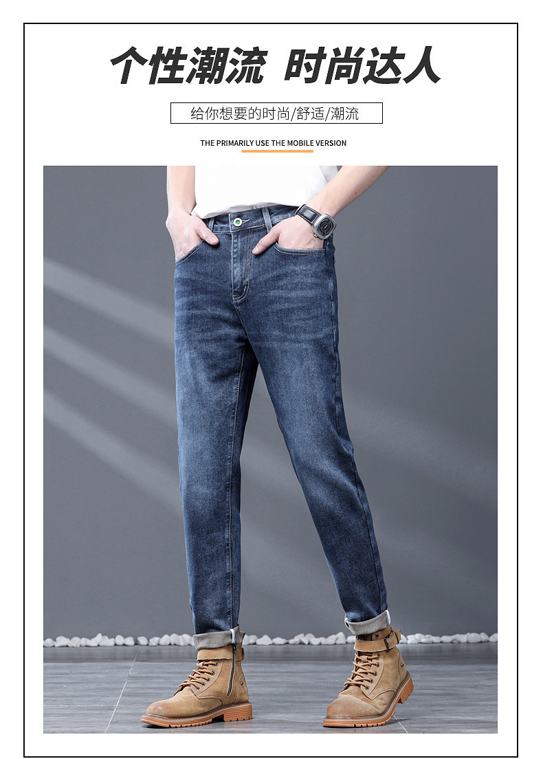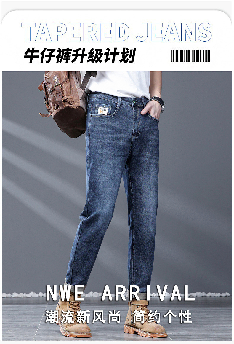圣得西男士牛仔裤2025年春季新款青年休闲修身小脚弹力长裤男款2512915061